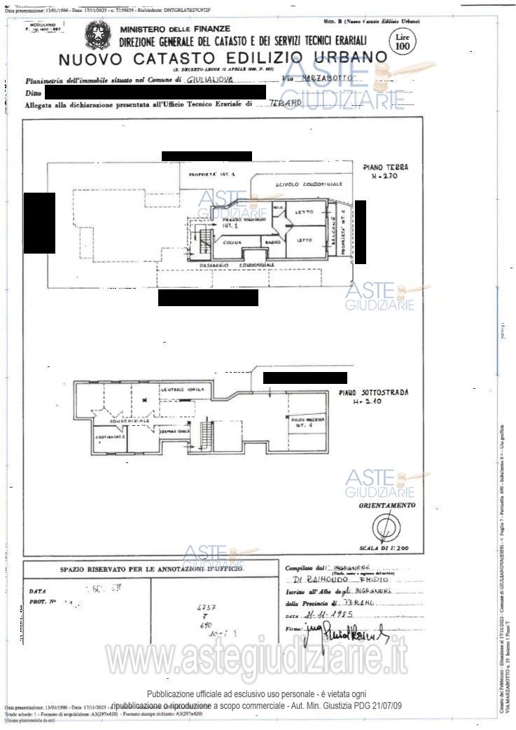 Vendita in attesa dell'emissione del nuovo bando d'asta. LOTTO UNICO: Diritti pari alla piena proprietà su appartamento sito nel Comune di Giulianova, alla Via Marzabotto n. 35. L’appartamento, posto al piano terra, ha una superficie di mq. 85,00 circa, ed è costituito da ingresso—pranzo-soggiorno, cucina, disimpegno, due camere, due bagni, balcone della superficie di Mq. 5,00 circa, cantina e posto macchina, posti al piano sottostrada e precisamente: cantina della superficie di Mq. 11,50 circa e posto macchina della superficie di Mq. 9,60 circa. Ultimo prezzo base € 46.000,00 (offerta minima € 34.500,00). Curatore Avv. Francesca Pizii - Email "studiolegaleavvfrancescapizii@gmail.com"; Tel. 0858424171. Rif. Tribunale di Teramo - Fallimentare (nuovo rito) n. 32/2022