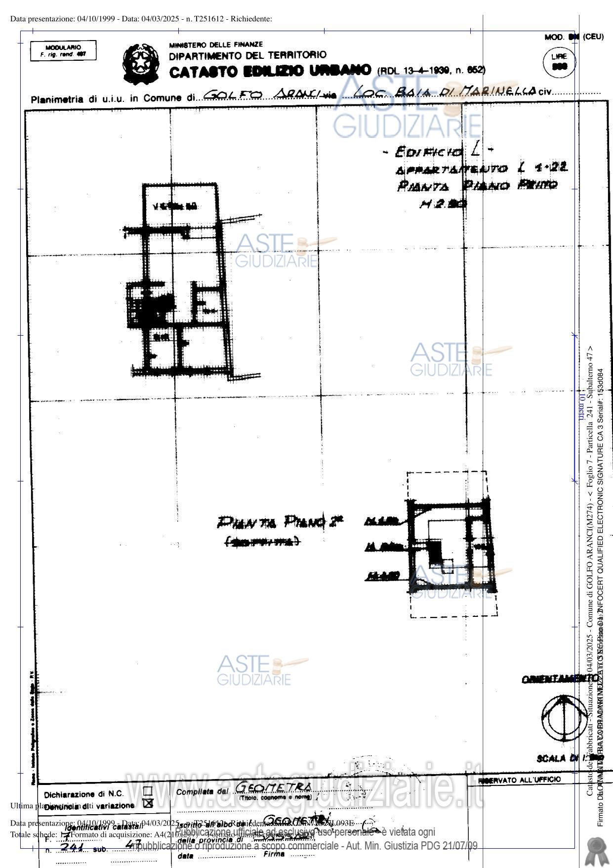 Vendita all'asta Senza incanto, con gara telematica asincrona - LOTTO UNICO: Piena proprietà dell’appartamento sito in Comune di Golfo Aranci (SS), Località Baia di Marinella snc, complesso turistico residenziale “Pedra Concada” Fabbricato “L” distinto con la sigla “L.1.22”, posto su due livelli, piano primo e secondo, distinto al catasto fabbricati al Foglio 7, particella 241, sub. 47, cat. A/2, cl. 4, consistenza 4 vani, superficie totale 75 mq, totale escluse aree scoperte 71 mq, rendita catastale euro 557,77. Prezzo base € 465.000,00 (offerta minima € 348.750,00). Data inizio operazioni di vendita: 24/06/2026 ore 16:00. Giudice: Antonia Palombella.