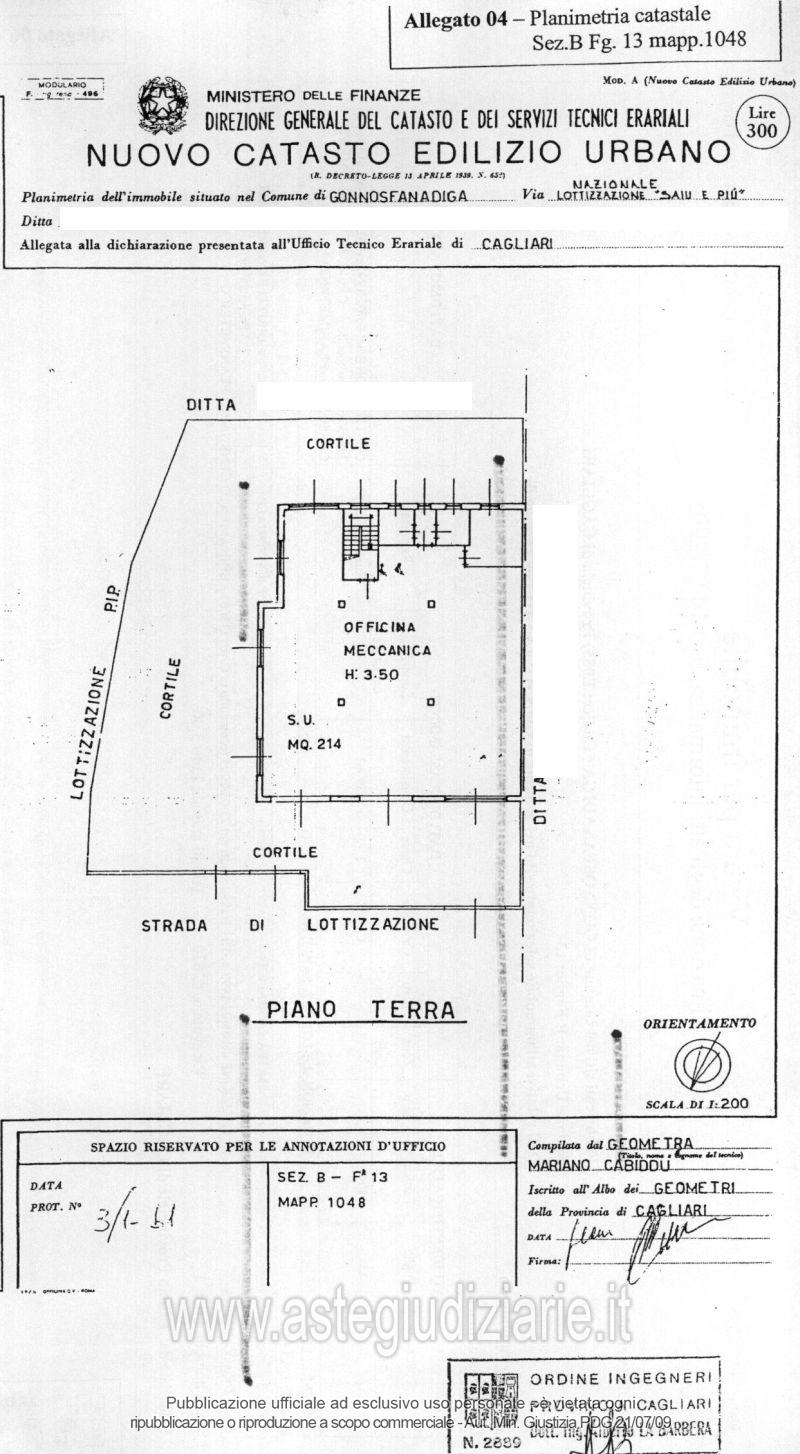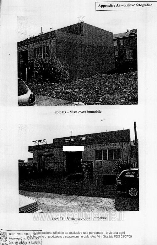 Vendita all'asta Senza incanto, con gara telematica asincrona - LOTTO UNICO: Piena proprietà del fabbricato disposto su tre livelli, sito in località “Rienazzu”, composto di locale artigianale (attualmente adibito ad appartamento) di mq 237 circa, al piano seminterrato; locale artigianale adibito ad officina meccanica di mq 214 circa con annesso giardino al piano terra; appartamento ad uso civile abitazione al piano primo. Prezzo base € 29.440,00 (offerta minima € 22.080,00). Data inizio operazioni di vendita: 16/12/2025 ore 09:00. Giudice Silvia Cocco. Professionista delegato alla vendita Not. Massimiliano Vadilonga - Email "ufficiouniconotai@pec.it"; Tel. 07060222574. Custode Giudiziario Ivg Cagliari - Email "ivg.visiteimmobili@tiscali.it"; Tel. 0702299036. Rif. Tribunale di Cagliari - Esecuzione immobiliari n. 546/2002