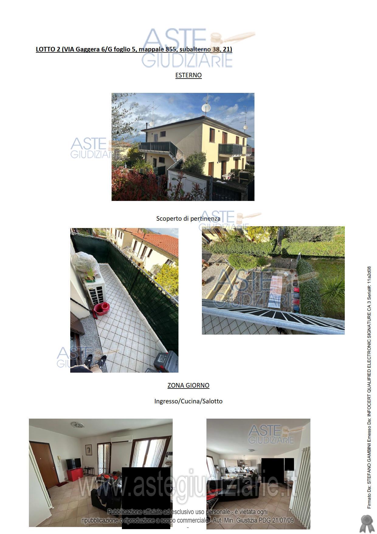 Vendita all'asta Senza incanto, con gara telematica sincrona mista - LOTTO 2: 100/100 intera proprietà di appartamento con box singolo e parti comuni, sito in Gradara (PU), Loc. Fanano, Via Gaggera n. 6/E, distinto al Catasto Fabbricati di detto Comune al Foglio 5, mappale 855 sub. 38, Cat. A/3, classe U, consistenza 3,5 vani, R.C. € 280,18, e sub 21, Cat. C/6, classe U, consistenza 33 mq, sup. catastale mq 38, R.C. € 143,16. Prezzo base € 105.988,00 (offerta minima € 79.491,00). Data vendita 29/01/2026 ore 15:40. Giudice Lorenzo Pini. Professionista delegato alla vendita Avv. Alberto Malavolta - Email "info@studiolegalemalavolta.it". Custode Giudiziario Francesca Brunieri - Email "infovisite@ivgmarche.it"; Tel. 073160914. Rif. Tribunale di Pesaro - Espropriazione immobiliare (cartabia) n. 194/2024