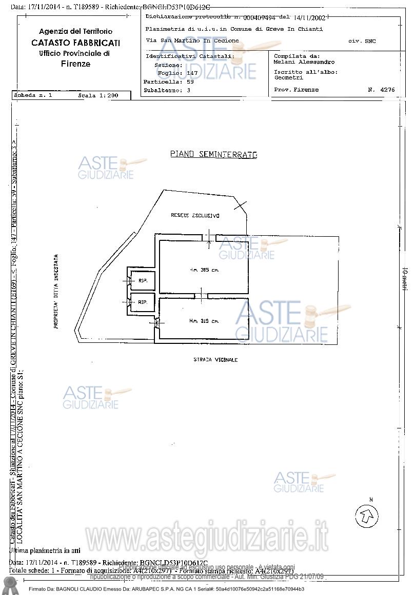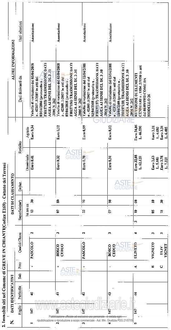 Vendita all'asta Senza incanto, con gara telematica sincrona - LOTTO 1: Piena proprietà di fabbricato indipendente con destinazione d’uso rurale ubicato in Comune di Greve in Chianti (FI), Fraz. San Martino, Via San Martino in Cecione n. 16, distribuito su due piani fu. Prezzo base € 500.000,00 (offerta minima € 375.000,00). Data vendita 28/05/2026 ore 11:00. Giudice Francesca Romana Bisegna. Professionista delegato alla vendita Dott. Alessandro Torcini - Email "torcini@dottoricommercialisti.it". Custode Giudiziario Istituto Vendite Giudiziarie Di Firenze - Email "prenota.fi@isveg.it"; Tel. 0552340830. Rif. Tribunale di Firenze - Esecuzione immobiliare post legge 80 n. 460/2013
