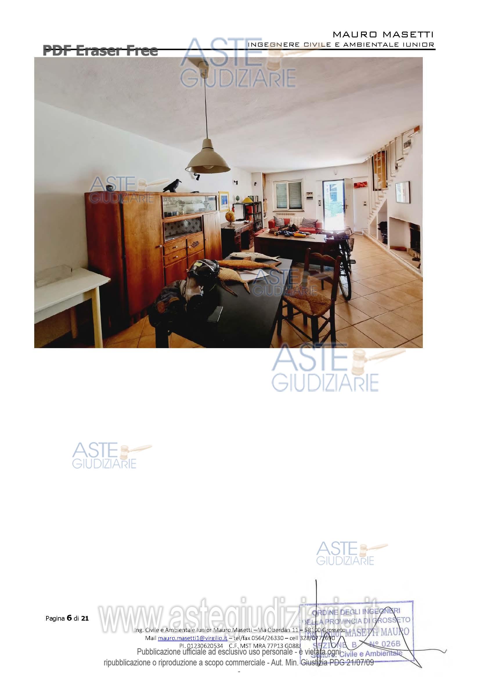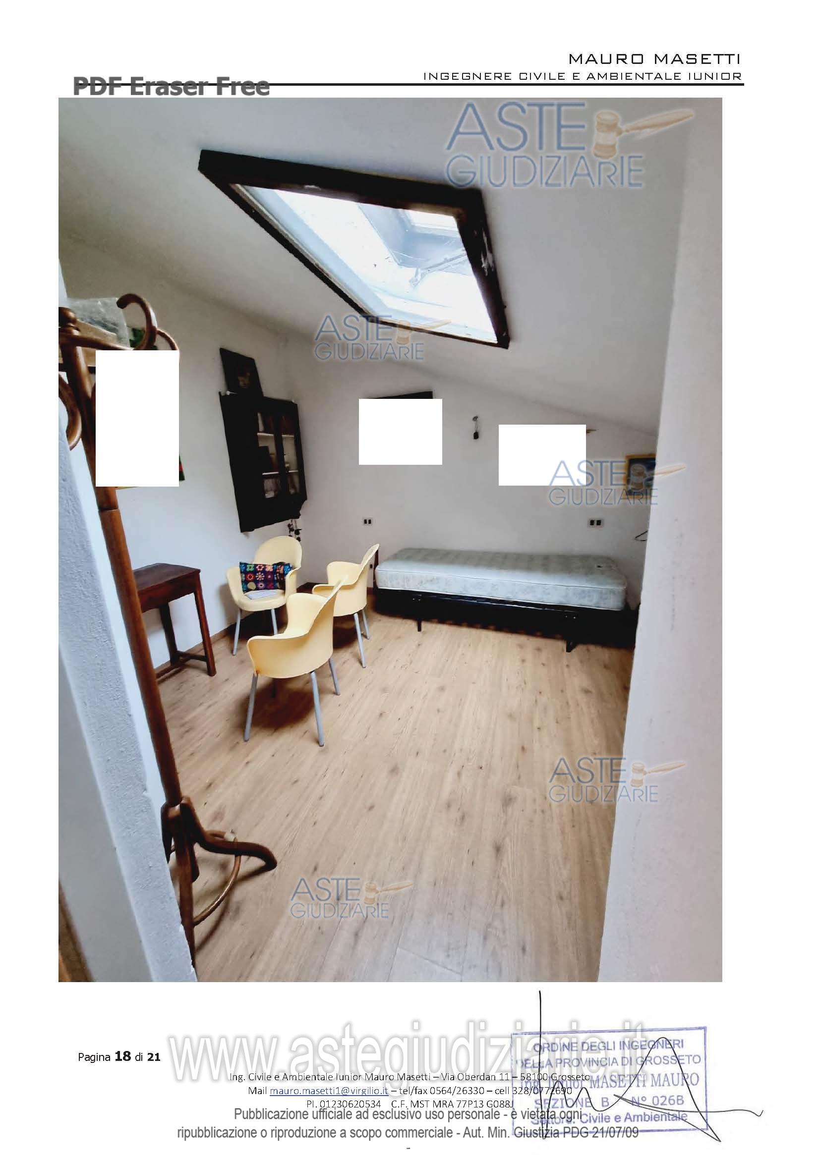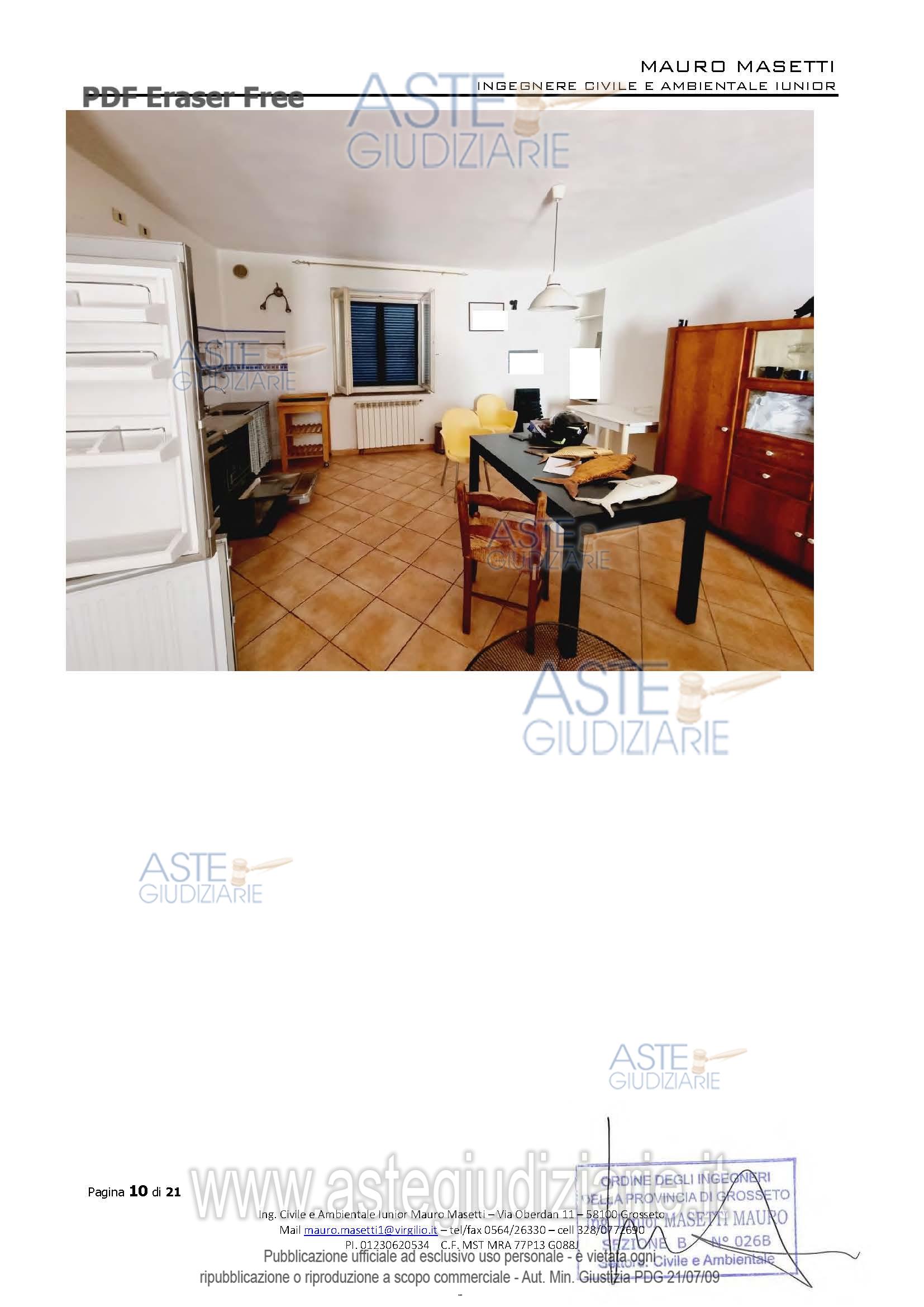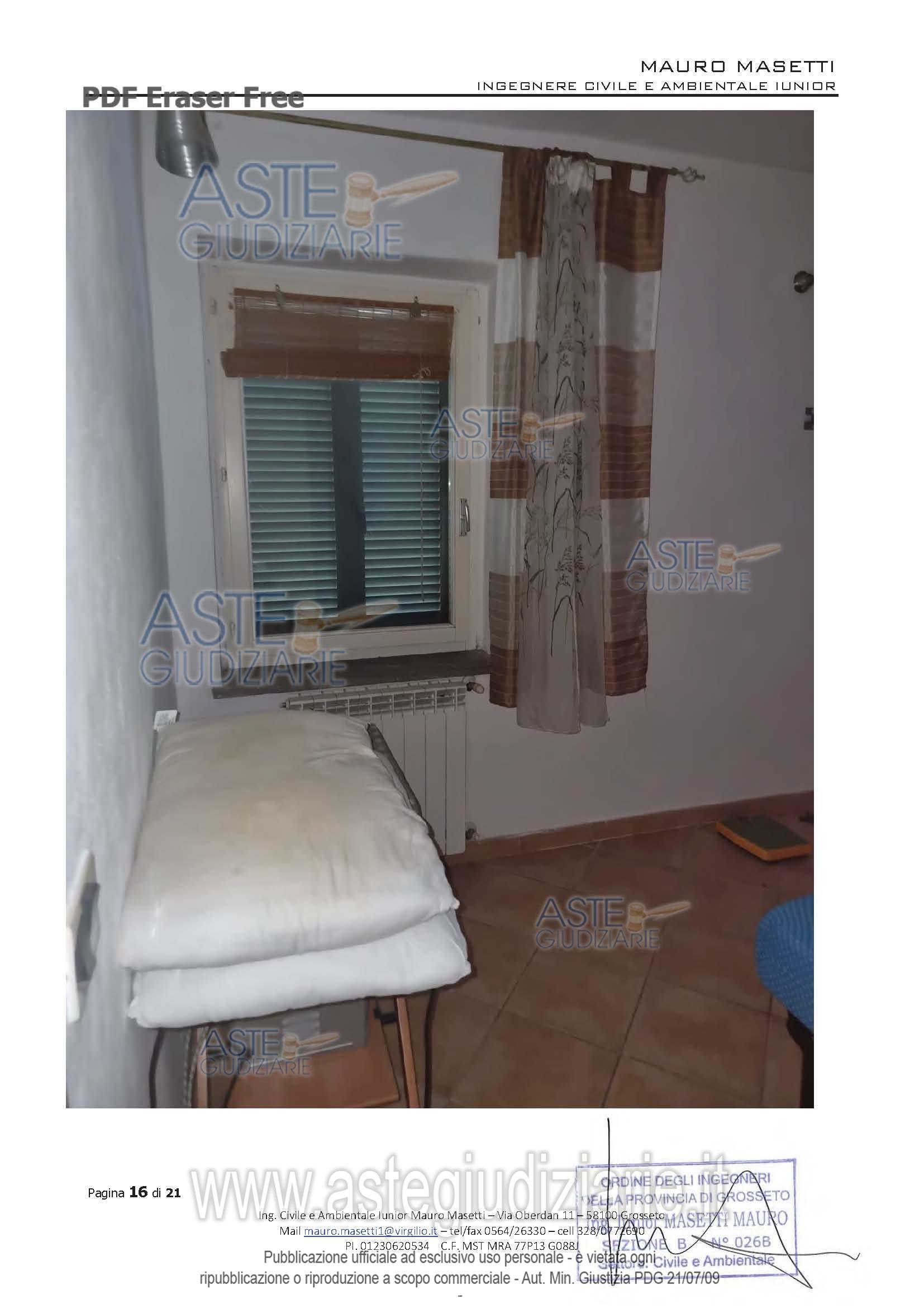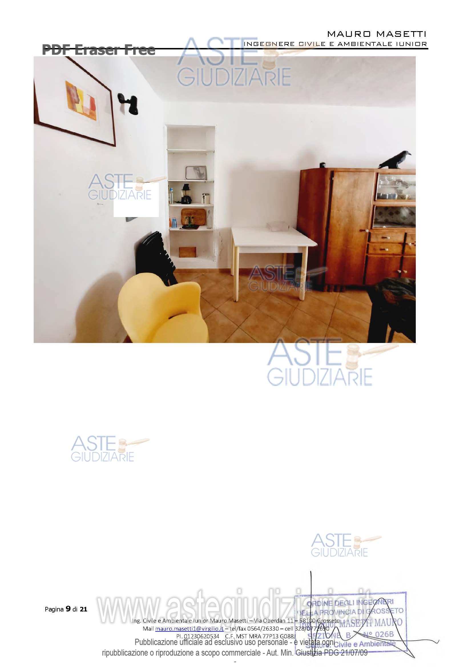 Vendita all'asta Senza incanto, con gara telematica asincrona - LOTTO UNICO: Diritti di Piena proprietà per l’intero di appartamento di civile abitazione edificato in epoca antecedente al 1940, avente accesso dal civico n. 10 della detta Via Aurelia Sud, nella Frazione di Braccagni, Comune di Grosseto , composto da soggiorno con angolo cottura, una camera ed un bagno, al piano terra; e di una soffitta al piano primo (sottotetto).L’altezza interna è di 2,70 metri per il piano terra e la superficie calpestabile mq 64,63. Prezzo base € 81.600,00 (offerta minima € 61.200,00). Data inizio operazioni di vendita: 27/05/2026 ore 11:00. Custode Giudiziario Dott. Giuseppe Ciccone - Email "CICCONEG@TISCALI.IT"; Cell. 3383524709; Tel. 3383524709. Rif. Tribunale di Grosseto - Esecuzione immobiliare post legge 80 n. 131/2022