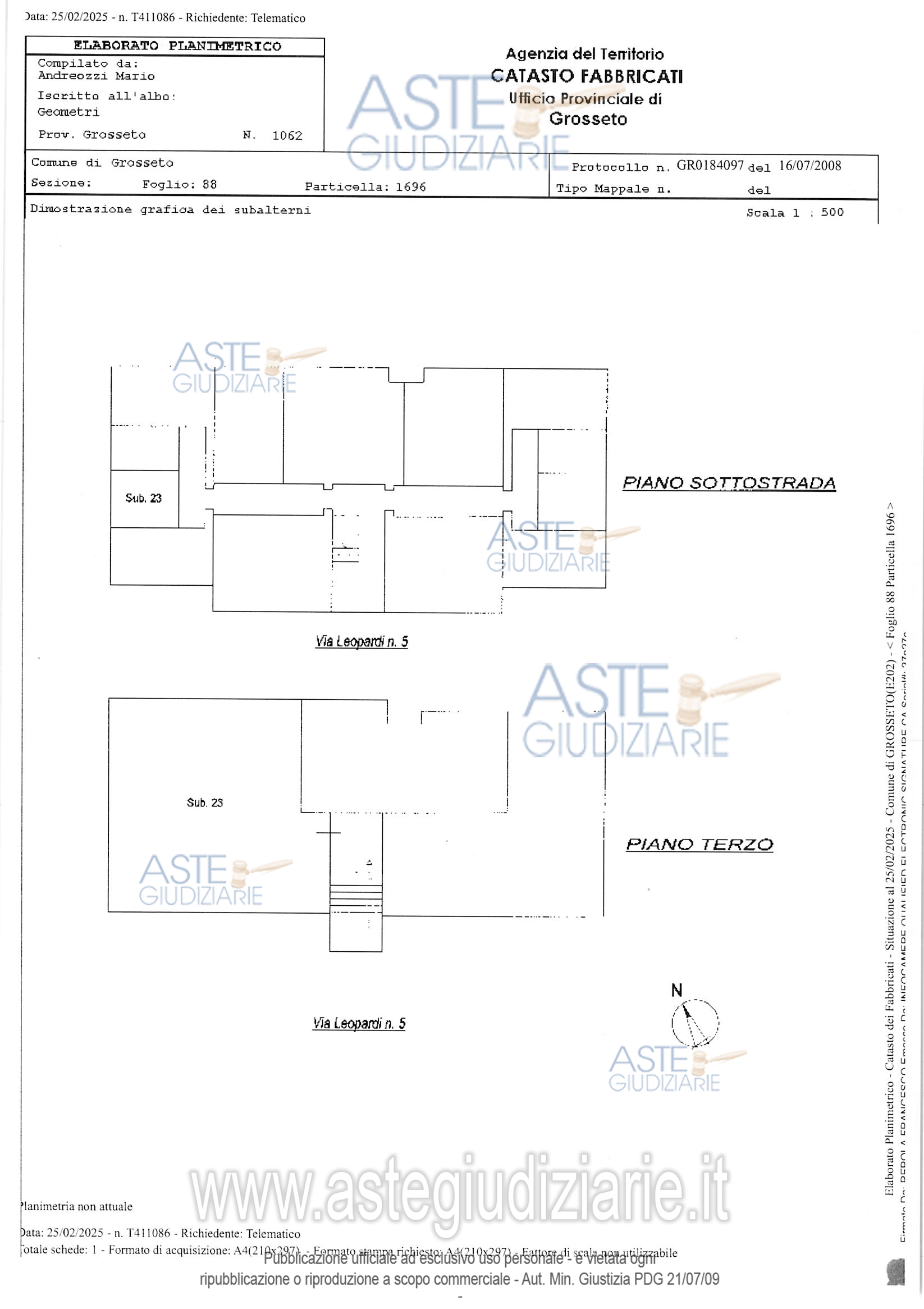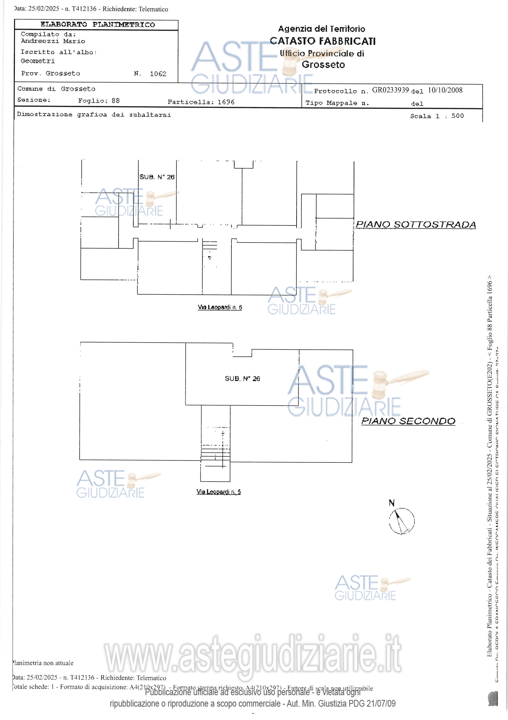 Vendita all'asta Senza incanto, con gara telematica asincrona - LOTTO UNICO: PIENA PROPIETA' DI ABITAZIONE DI TIPO POPOLARE SITA IN VIA LEOPARDI 5 A GROSSETO, AL PIANO RIALZATO E COMPOSTA DA 3 VANI CON UNA SUPERFICIE DI CIRCA 52 MQ OLTRE AD UN BALCONE DI CIRCA 6 MQ E CON SEPARATA CANTINA DI CIRCA 5,5 MQ. Prezzo base € 89.200,00 (offerta minima € 66.900,00). Data inizio operazioni di vendita: 07/04/2026 ore 12:00. Professionista delegato alla vendita Dott. Gionni Guerrieri - Email "gionni.guerrieri@barzagli.it"; Cell. 3382793204; Tel. 0564458307. Custode Giudiziario Srl Istituto Vendite Giudiziarie - Email "ivggrosseto@astagiudiziaria.com"; Cell. 3426598791. Rif. Tribunale di Grosseto - Espropriazione immobiliare (cartabia) n. 61/2024