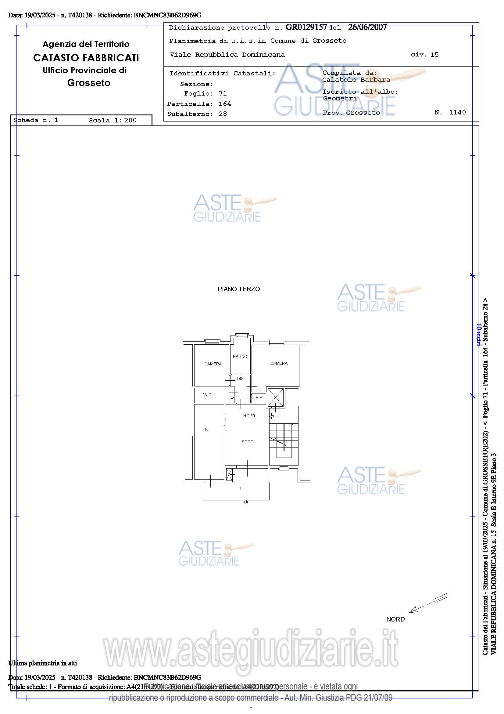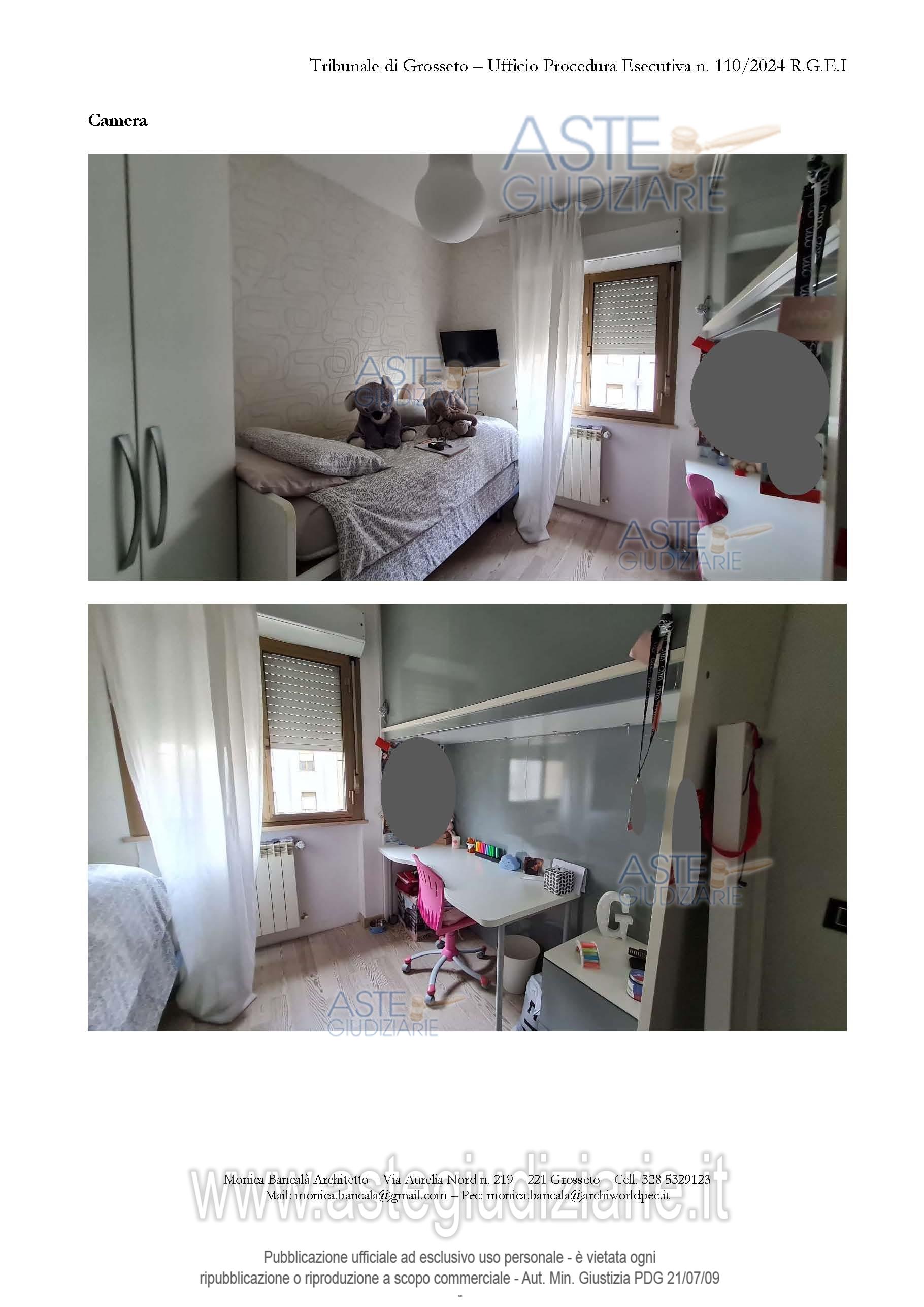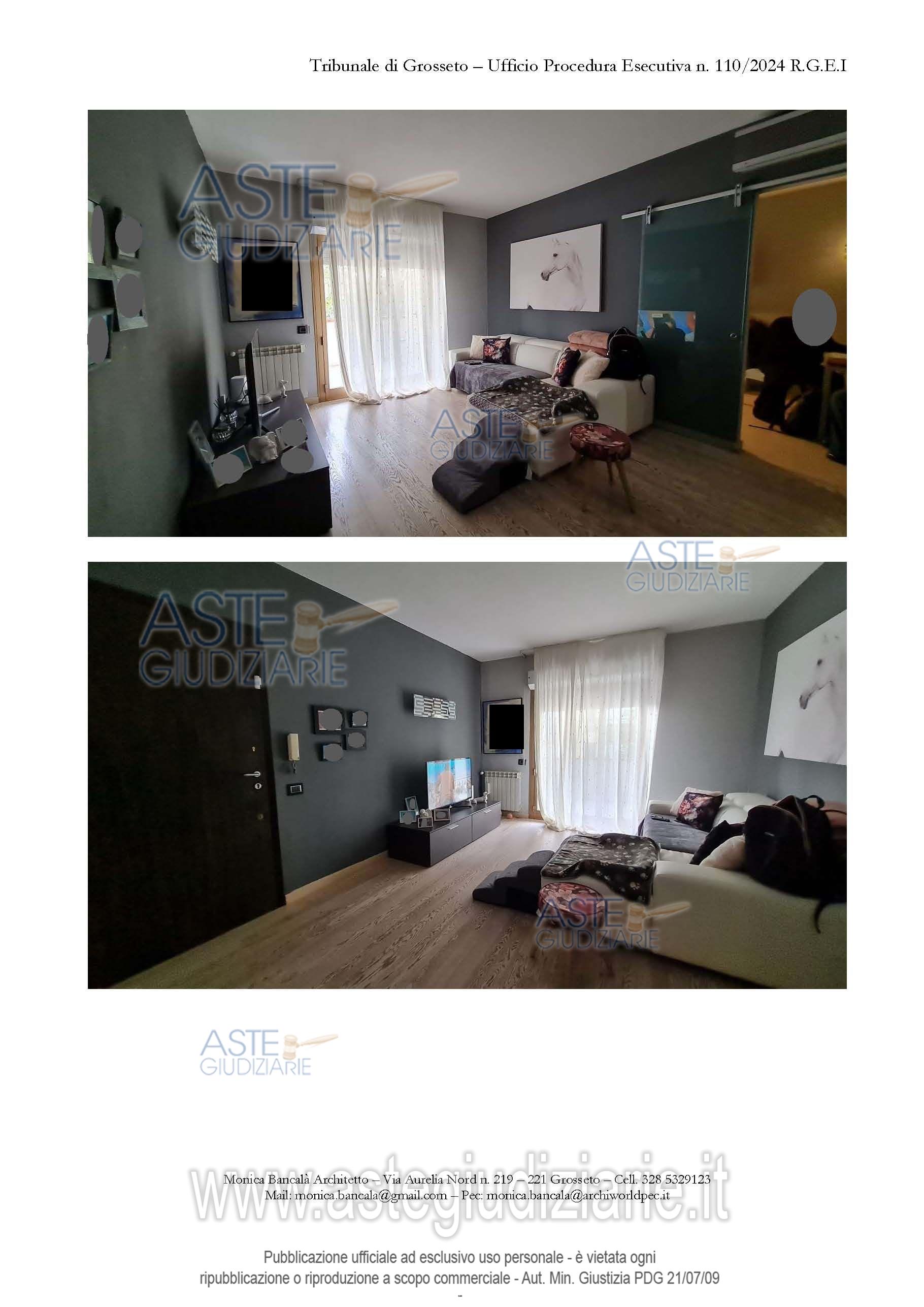 Vendita all'asta Senza incanto, con gara telematica asincrona - LOTTO UNICO: Quota pari a 1/1 del diritto di proprietà su Unità immobiliare ad uso abitativo sita in Comune di Grosseto, in Via Repubblica Dominicana al civico n. 15 (Scala B – Interno 9E), identificato al Catasto Fabbricati del medesimo Comune al Foglio 71 – P.lla 164 – Sub. 28 Rendita: € 497,09 Categoria A/3 – Classe 3 – Consistenza 5,5 vani - Totale mq 84 – Totale escluse aree scoperte mq 80 oltre a unità immobiliare ad uso autorimessa piano seminterrato, Categoria C/6 – Classe 6 – Consistenza mq 12 – Totale mq 13. Prezzo base € 173.000,00 (offerta minima € 129.750,00). Data inizio operazioni di vendita: 14/04/2026 ore 09:00. Giudice Dott. Cristina Nicolò. Professionista delegato alla vendita Avv. Elisabetta Calabria - Email "calbetta@gmail.com"; Cell. 3382171920; Tel. 0564332146. Custode Giudiziario Ivg Grosseto - Email "ivggrosseto@astagiudiziaria.com"; Cell. 3426598791. Rif. Tribunale di Grosseto - Esecuzione immobiliare post legge 80 n. 110/2024