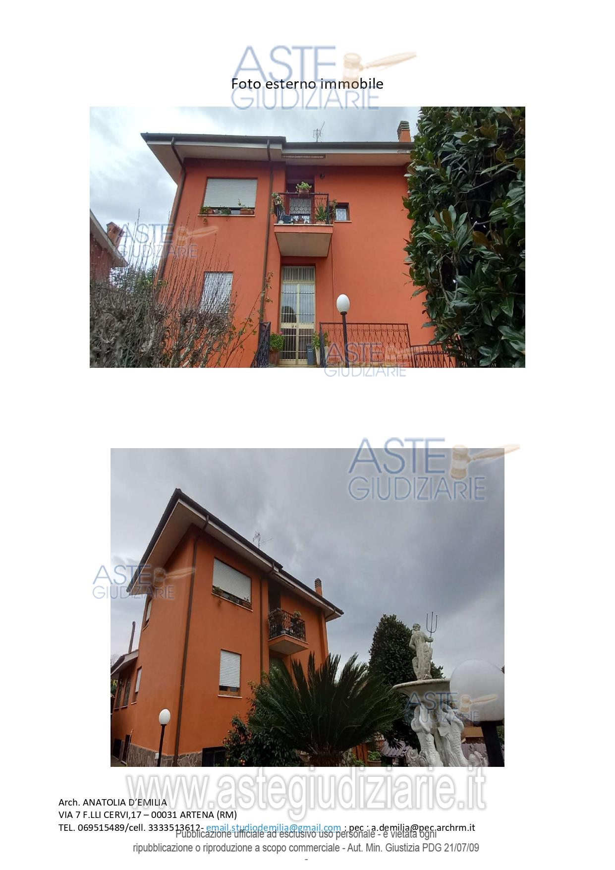 Vendita all'asta Senza incanto, con gara telematica asincrona - LOTTO 2: Appartamento interno 2, piano P1/2 L'immobile è ubicato in un comprensorio residenziale periferico al centro urbano, caratterizzato da villini sparsi, ampi spazi di verde. Unità immobiliare è parte di un edificio bifamiliare a torre con corte pertinenziale adibita parte a giardino e parte pavimentata e carrabile. Prezzo base € 254.400,00 (offerta minima € 190.800,00). Data inizio operazioni di vendita: 30/04/2026 ore 10:00. Giudice Enrico Colognesi. Professionista delegato alla vendita Avv. Lorenzo Cervellera. Custode Giudiziario Avv. Lorenzo Cervellera - Email "avv.lorenzocervellera@gmail.com"; Cell. 3337598732. Rif. Tribunale di Velletri - Esecuzione immobiliare post legge 80 n. 273/2022