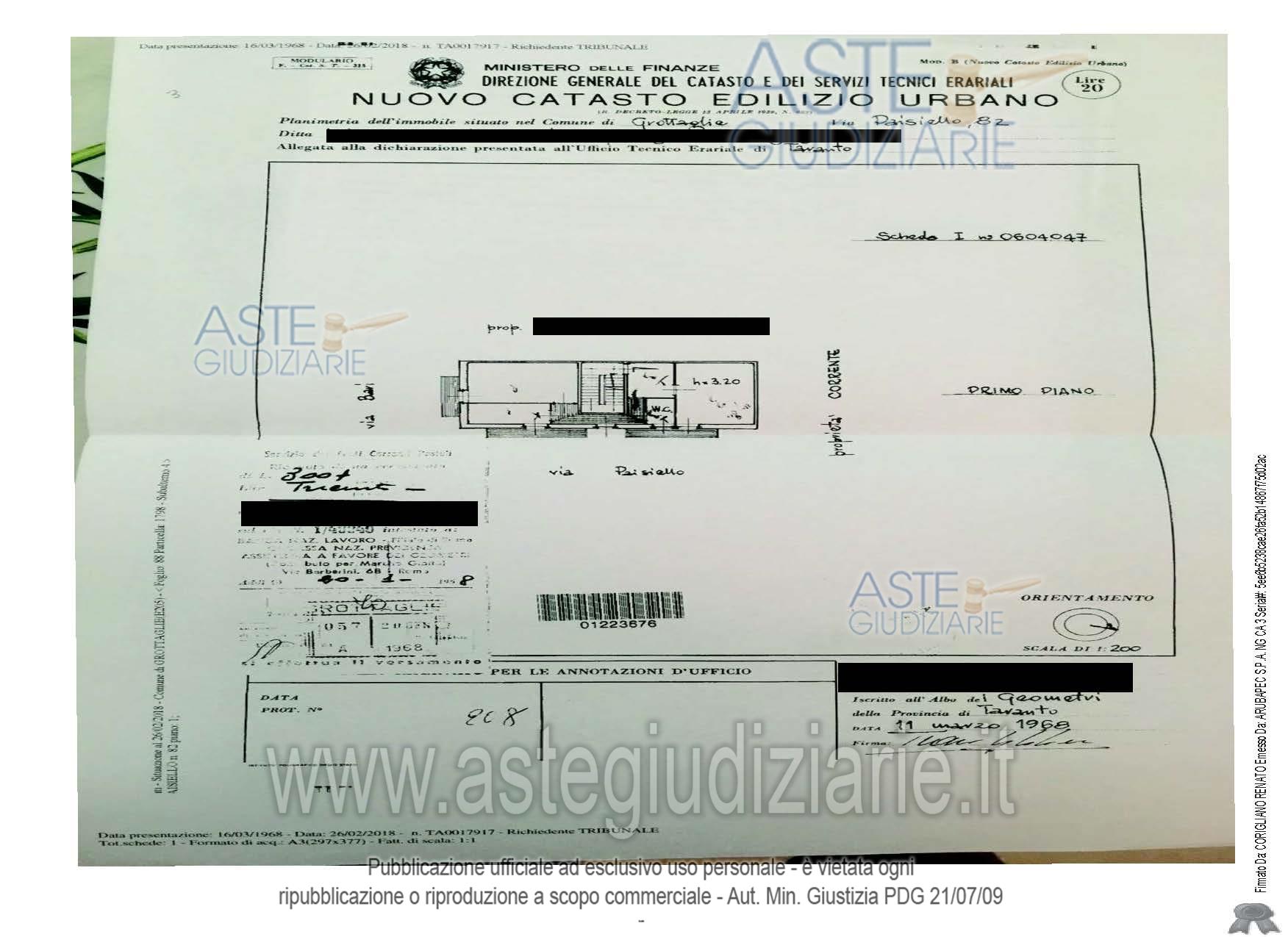 Vendita all'asta Senza incanto, con gara telematica asincrona - LOTTO UNICO: Appartamento al piano primo senza ascensore. Prezzo base € 34.172,00 (offerta minima € 25.629,00). Data inizio operazioni di vendita: 31/03/2026 ore 16:00. Giudice Andrea Paiano. Professionista delegato alla vendita Avv. Domenica Stigliano. Custode Giudiziario Avv. Domenica Stigliano - Email "avv.dstigliano@gmail.com"; Tel. 099-373040. Rif. Tribunale di Taranto - Esecuzione immobiliare post legge 80 n. 14/2017