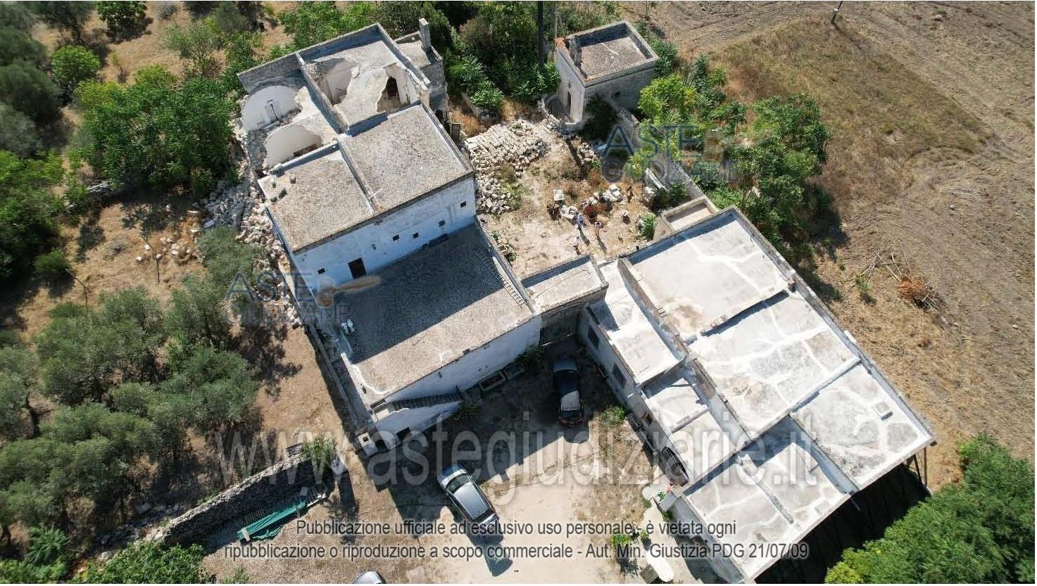 Vendita all'asta Senza incanto, con gara telematica asincrona - LOTTO UNICO: Piena proprietà di un compendio immobiliare che costituisce una porzione del più ampio complesso masserizio storico del 1500 denominato “Masseria Montedoro” sito in agro di Grottaglie (TA) alla C.da delle Monache n. 532, composto da un’abitazione al piano terra, un piccolo deposito ed un fabbricato su due piani crollato parzialmente, dotati di area esterna pertinenziale (corte) per mezzo della quale si accede anche ad altre unità immobiliari di altra proprietà e non oggetto del presente pignoramento. Prezzo base € 98.087,00 (offerta minima € 73.566,00). Data inizio operazioni di vendita: 13/01/2026 ore 16:00. Giudice Andrea Paiano. Professionista delegato alla vendita Avv. Alessandro D'ambrosio. Custode Giudiziario Ivg Taranto - Email "ivgta.visiteimmobili@gmail.com". Rif. Tribunale di Taranto - Espropriazione immobiliare (cartabia) n. 92/2024