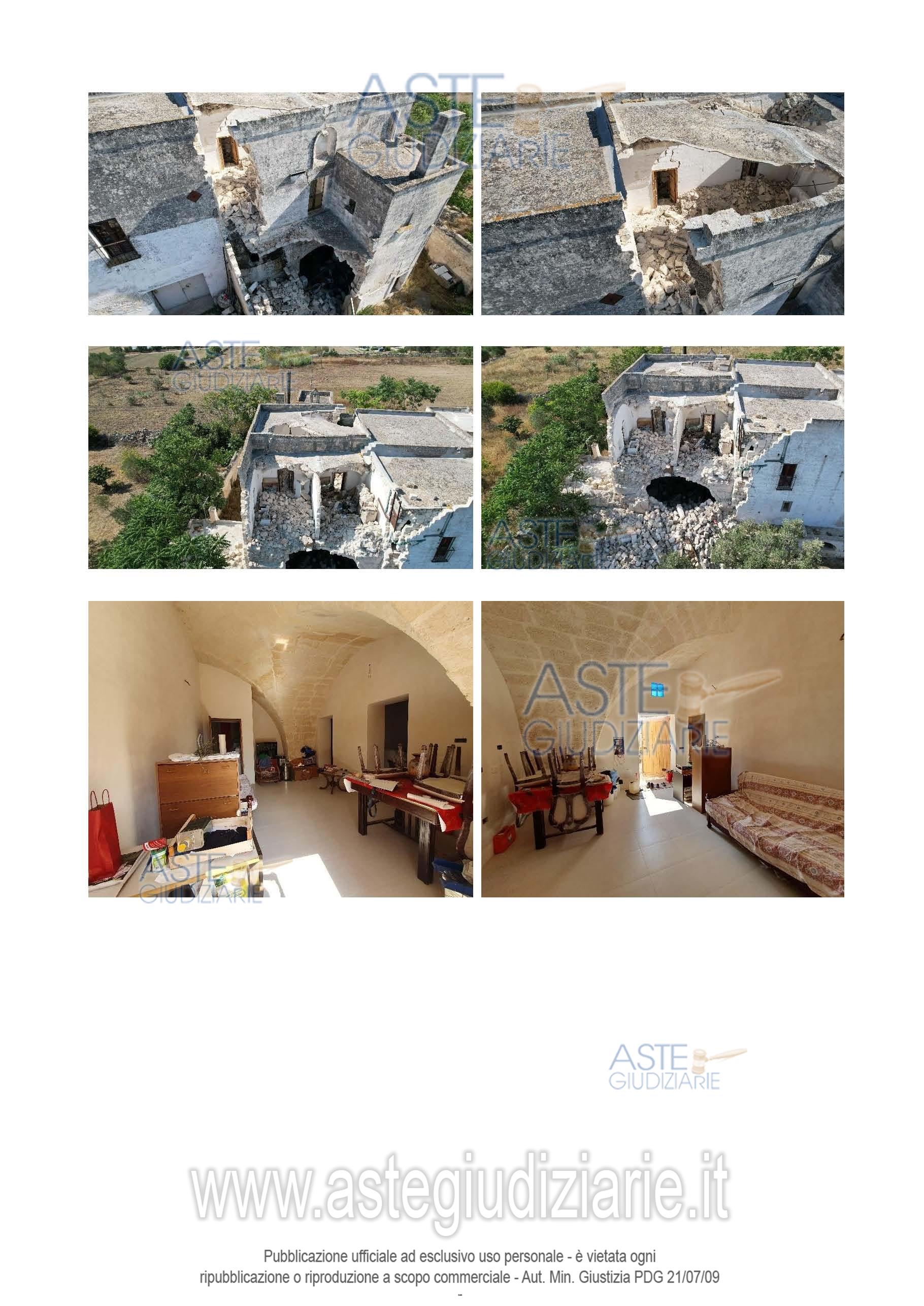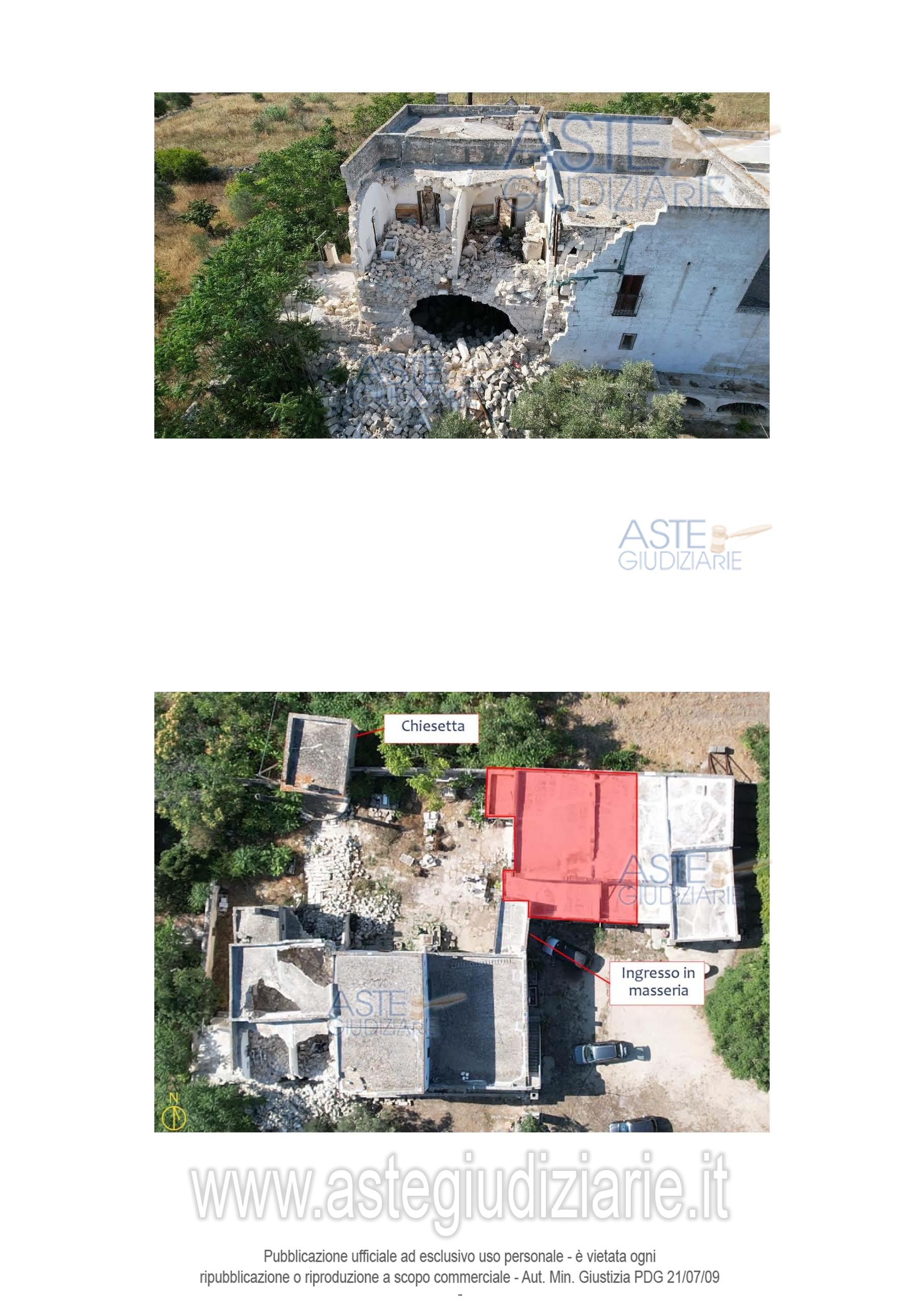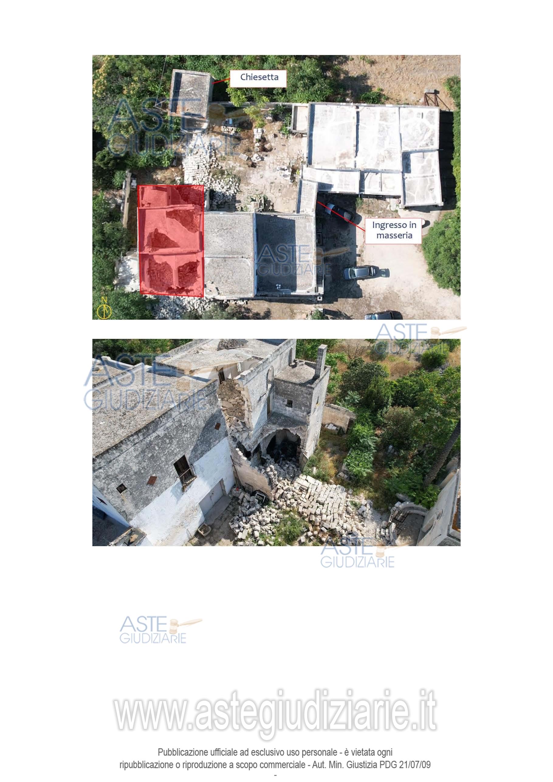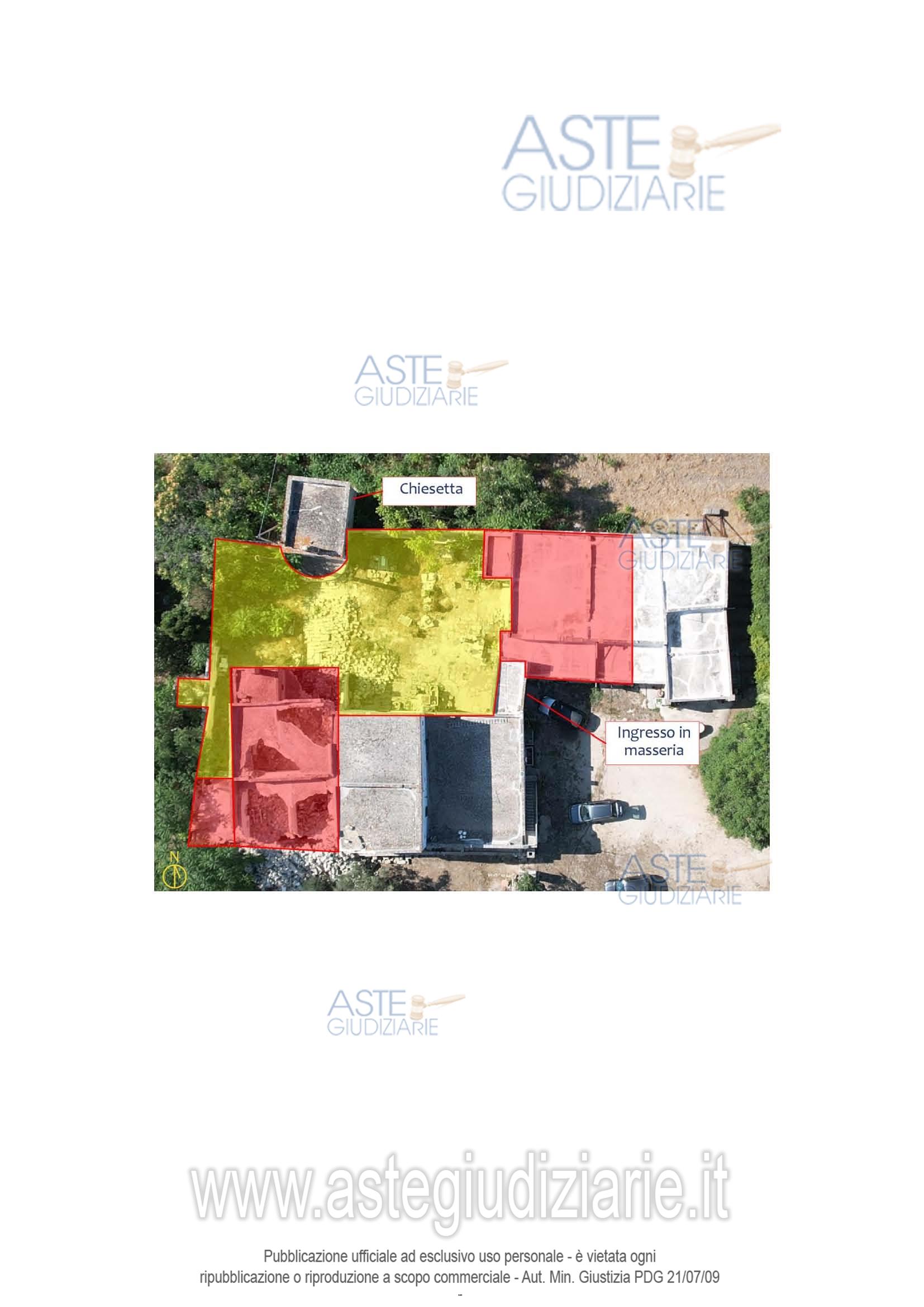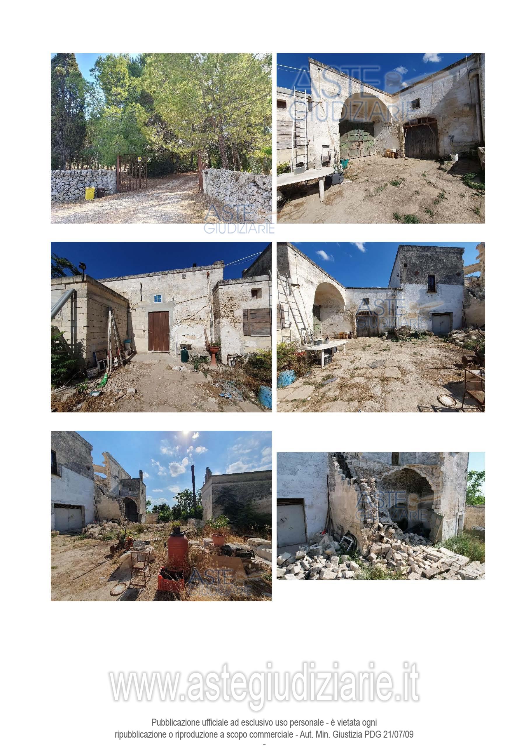 Vendita all'asta Senza incanto, con gara telematica asincrona - LOTTO UNICO: Piena proprietà di un compendio immobiliare che costituisce una porzione del più ampio complesso masserizio storico del 1500 denominato “Masseria Montedoro” sito in agro di Grottaglie (TA) alla C.da delle Monache n. 532, composto da un’abitazione al piano terra, un piccolo deposito ed un fabbricato su due piani crollato parzialmente, dotati di area esterna pertinenziale (corte) per mezzo della quale si accede anche ad altre unità immobiliari di altra proprietà e non oggetto del presente pignoramento. Prezzo base € 73.566,00 (offerta minima € 55.175,00). Data inizio operazioni di vendita: 31/03/2026 ore 16:00. Giudice Andrea Paiano. Professionista delegato alla vendita Avv. Alessandro D'ambrosio. Custode Giudiziario Ivg Taranto - Email "ivgta.visiteimmobili@gmail.com". Rif. Tribunale di Taranto - Espropriazione immobiliare (cartabia) n. 92/2024