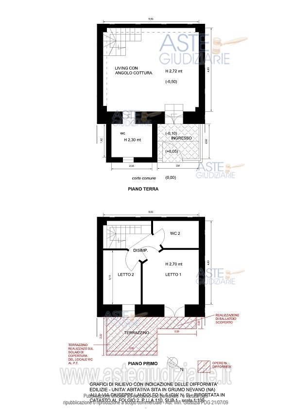 Vendita all'asta Senza incanto, con gara telematica asincrona - LOTTO UNICO: Piena ed intera proprietà di unità abitativa di tipo popolare sita in Grumo Nevano (NA) alla Via Giuseppe Landolfo n. 5 (già n. 9). In particolare, l’immobile è dislocato tra piano terra e primo ed è composto al piano terra da zona living con angolo cottura e locale wc (con un’altezza interna pari a 2,30 mt) oltre ad ingresso scoperto pavimentato e al piano primo da disimpegno, due camere da letto, un locale wc, oltre ad un terrazzino. Prezzo base € 47.000,00 (offerta minima € 35.250,00). Data inizio operazioni di vendita: 17/12/2025 ore 16:00. Professionista delegato alla vendita Avv. Giorgia Viola - Email "avv.giorgiaviola@libero.it"; Tel. 08118858628. Custode Giudiziario Avv. Giorgia Viola - Email "avv.giorgiaviola@libero.it"; Tel. 08118858628. Rif. Tribunale di Napoli Nord - Espropriazione immobiliare (cartabia) n. 349/2024