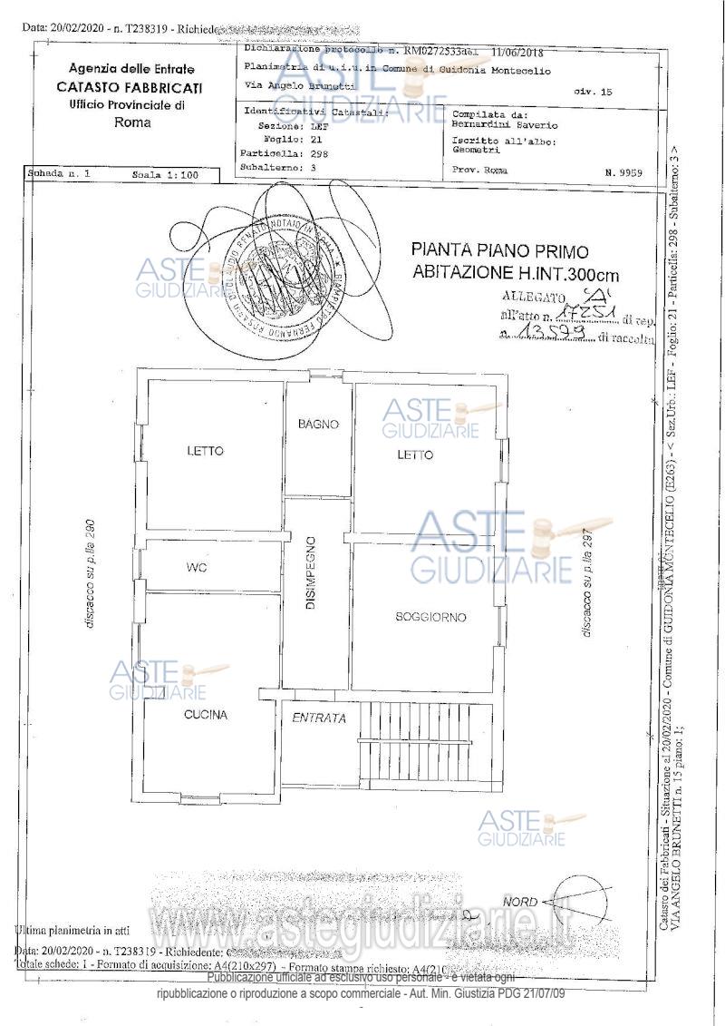 Vendita all'asta Senza incanto, con gara telematica asincrona - LOTTO 01: Diritto di piena proprietà per l'intero su abitazione di tipo popolare sita in Guidonia Montecelio (RM) - Via Angelo Brunetti n.15, piano 1°, composto da: corridoio, cucina abitabile con camino, salone-soggiorno, due camere, due bagni di cui uno trasformato in camerino. Prezzo base € 106.312,50 (offerta minima € 79.734,38). Data inizio operazioni di vendita: 20/01/2026 ore 15:00. Giudice Francesco Lupia. Professionista delegato alla vendita Avv. Federica De Angelis - Email "avv.federicadeangelis@gmail.com"; Cell. 3403802791. Custode Giudiziario Ivg Di Roma Srl - Email "pvp@visiteivgroma.it"; Tel. 0689569801. Rif. Tribunale di Tivoli - Espropriazione immobiliare (cartabia) n. 396/2023