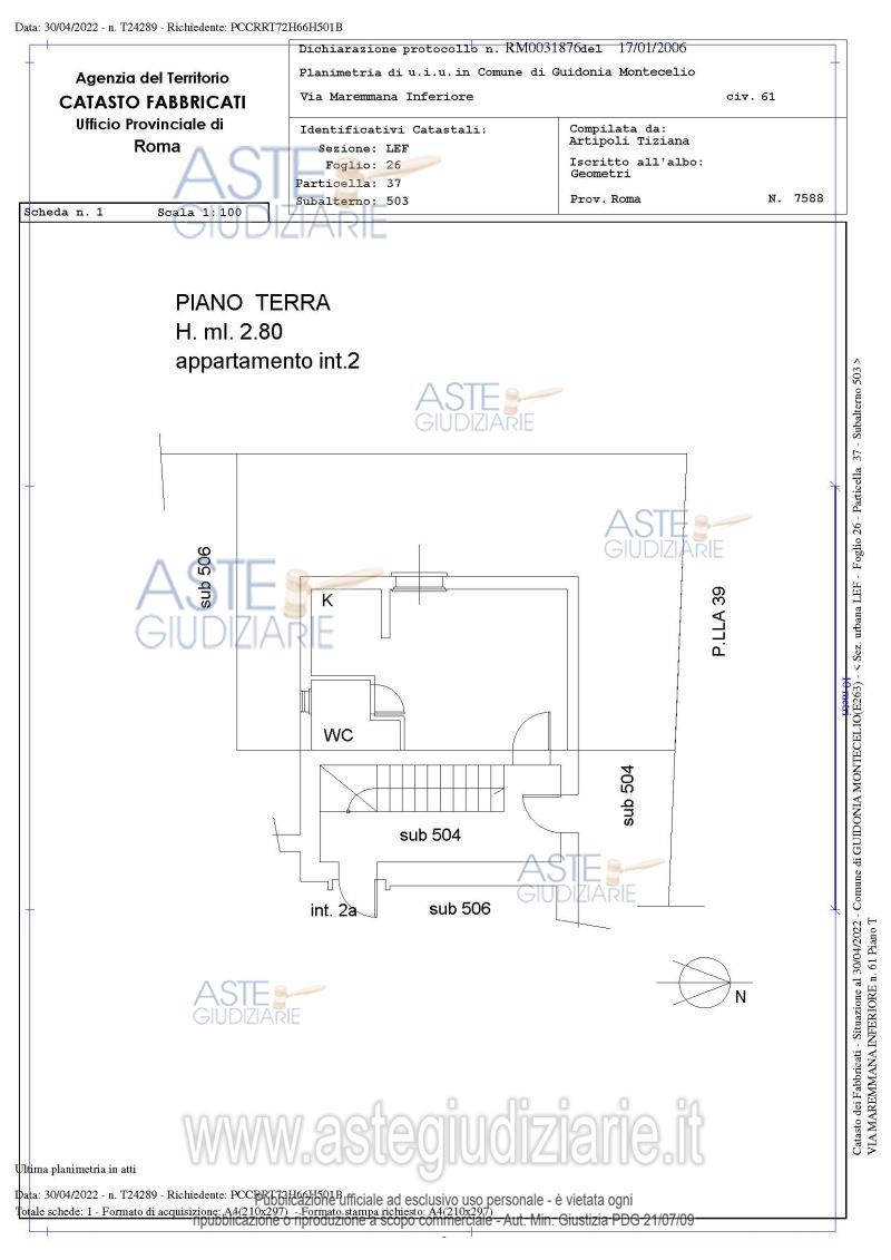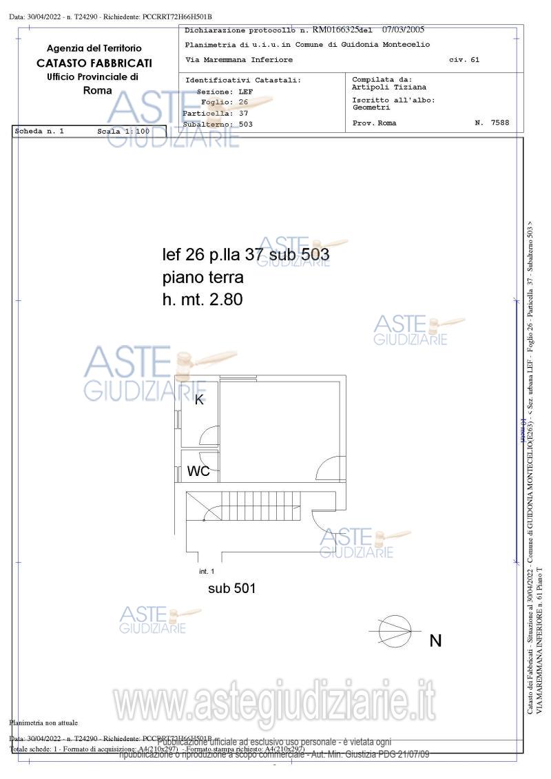 Vendita all'asta Senza incanto, con gara telematica asincrona - LOTTO UNICO: 1/1 proprietà di: Locale deposito con annesso servizio igienico, allo stato trasformato e accatastato come appartamento, il tutto con area di pertinenza esclusiva, sito in Guidonia Montecelio (RM), località Villanova di Guidonia, alla Via Maremmana Inferiore n. 61, piano T, interno 2. Distinto in NCEU, Sez. LEF, Foglio 26, particella 37, sub 503, zona cens. 1, categoria A3, classe 1, consistenza 1,5 vani, superficie 30 mq, rendita catastale 123,95 €. Prezzo base € 30.400,00 (offerta minima € 22.800,00). Data inizio operazioni di vendita: 05/11/2025 ore 14:00. Professionista delegato alla vendita Avv. Cristian Cerquatti - Email "cristian.cerquatti@gmail.com"; Cell. 3336095034; Tel. 0774334821. Custode Giudiziario Ivg Di Roma Srl - Email "pvp@visiteivgroma.it"; Cell. 0689569801. Rif. Tribunale di Tivoli - Esecuzione immobiliare post legge 80 n. 320/2017