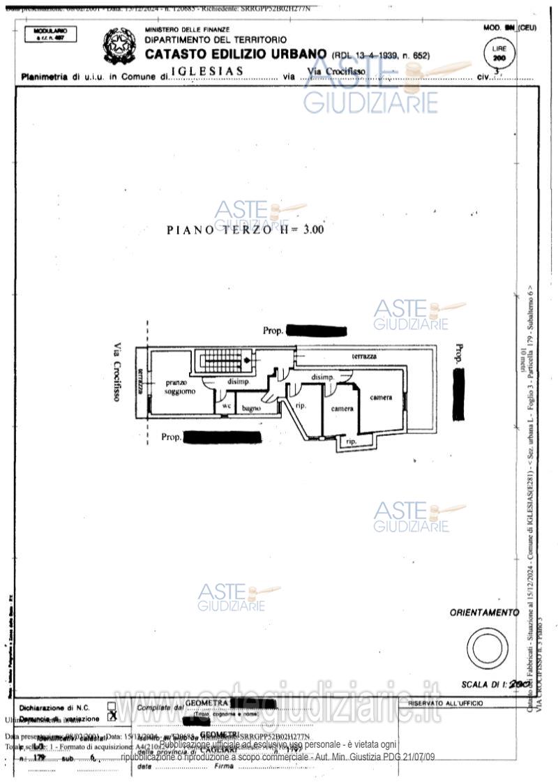 Vendita all'asta Senza incanto, con gara telematica asincrona - LOTTO UNICO: Quota pari all'intero (1/1) del diritto di piena proprietà dell'immobile costituito dall'appartamento ad uso civile abitazione al terzo piano del fabbricato di via Crocifisso 3 in Iglesias, composto da ingresso, due disimpegni, soggiorno- angolo cottura, due bagni, due ripostigli, due camere, un balcone e una terrazza a livello. Prezzo base € 50.900,00 (offerta minima € 38.175,00). Data inizio operazioni di vendita: 04/11/2025 ore 15:00. Giudice Silvia Cocco. Professionista delegato alla vendita Avv. Patrizia Francesca Orsini - Email "patriziaforsini@gmail.com"; Tel. 3338668405. Custode Giudiziario Ivg Cagliari - Email "ivg.visiteimmobili@tiscali.it"; Tel. 0702299036. Rif. Tribunale di Cagliari - Contenzioso civile n. 7510/2023