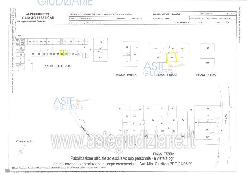 Vendita all'asta Senza incanto, con gara telematica sincrona mista - LOTTO 1: unità immobiliare posta al piano primo e composta da: ingresso/disimpegno, soggiorno pranzo con angolo cottura, bagno, camera e terrazzo; autorimessa pertinenziale in piano interrato. Maggiori info. Prezzo base € 91.000,00 (offerta minima € 68.250,00). Data vendita 21/01/2026 ore 09:30. Giudice Flaminia Dangelo. Professionista delegato alla vendita Not. Andrea Giannini - Email "agiannini@notariato.it". Custode Giudiziario Givg Srl - Email "immobiliari.va@givg.it"; Tel. 0332335510. Rif. Tribunale di Varese - Espropriazione immobiliare (cartabia) n. 58/2024