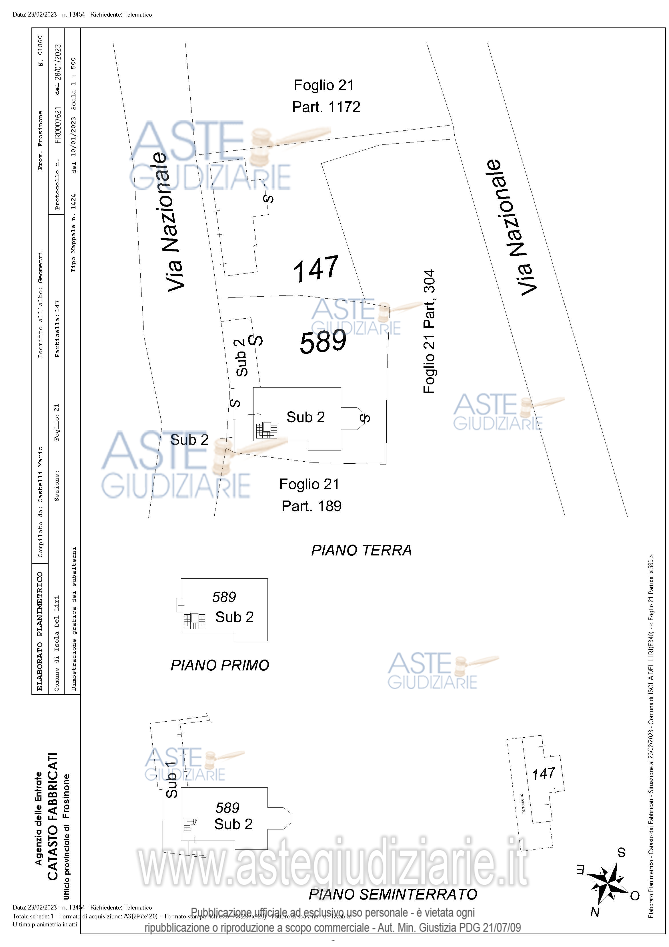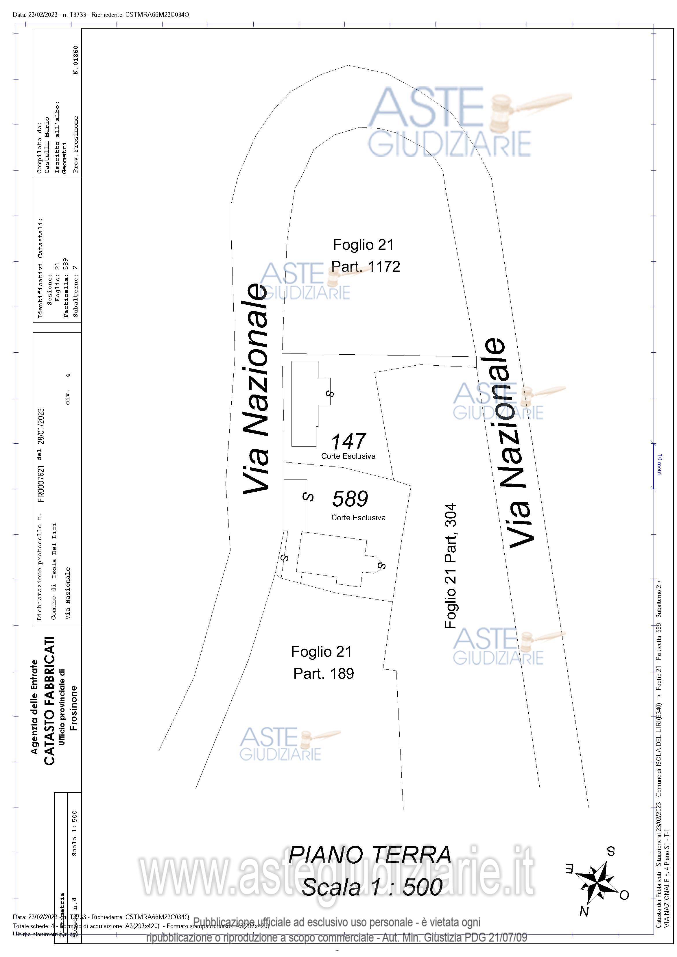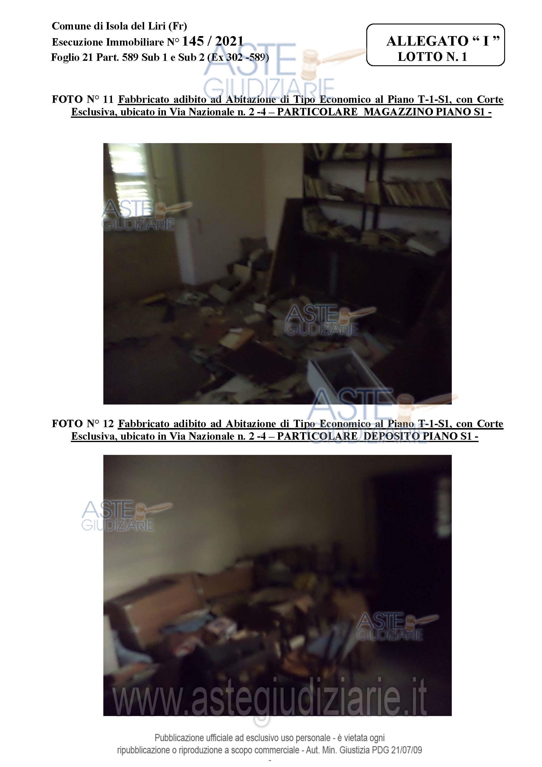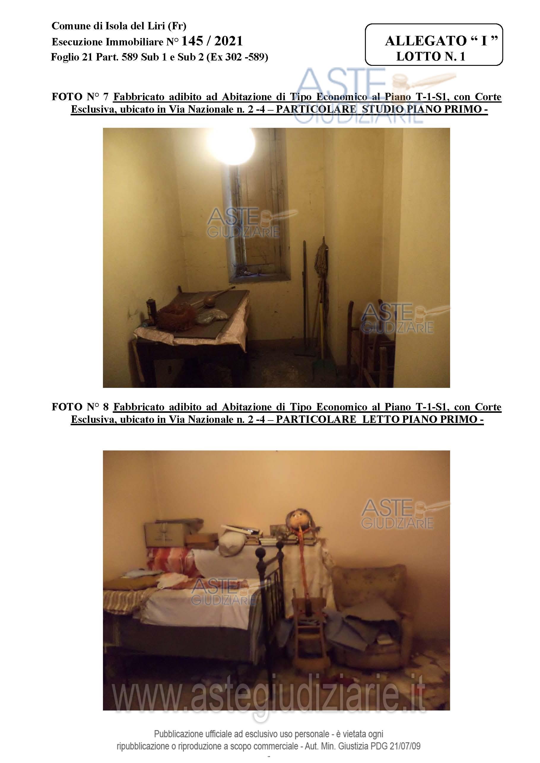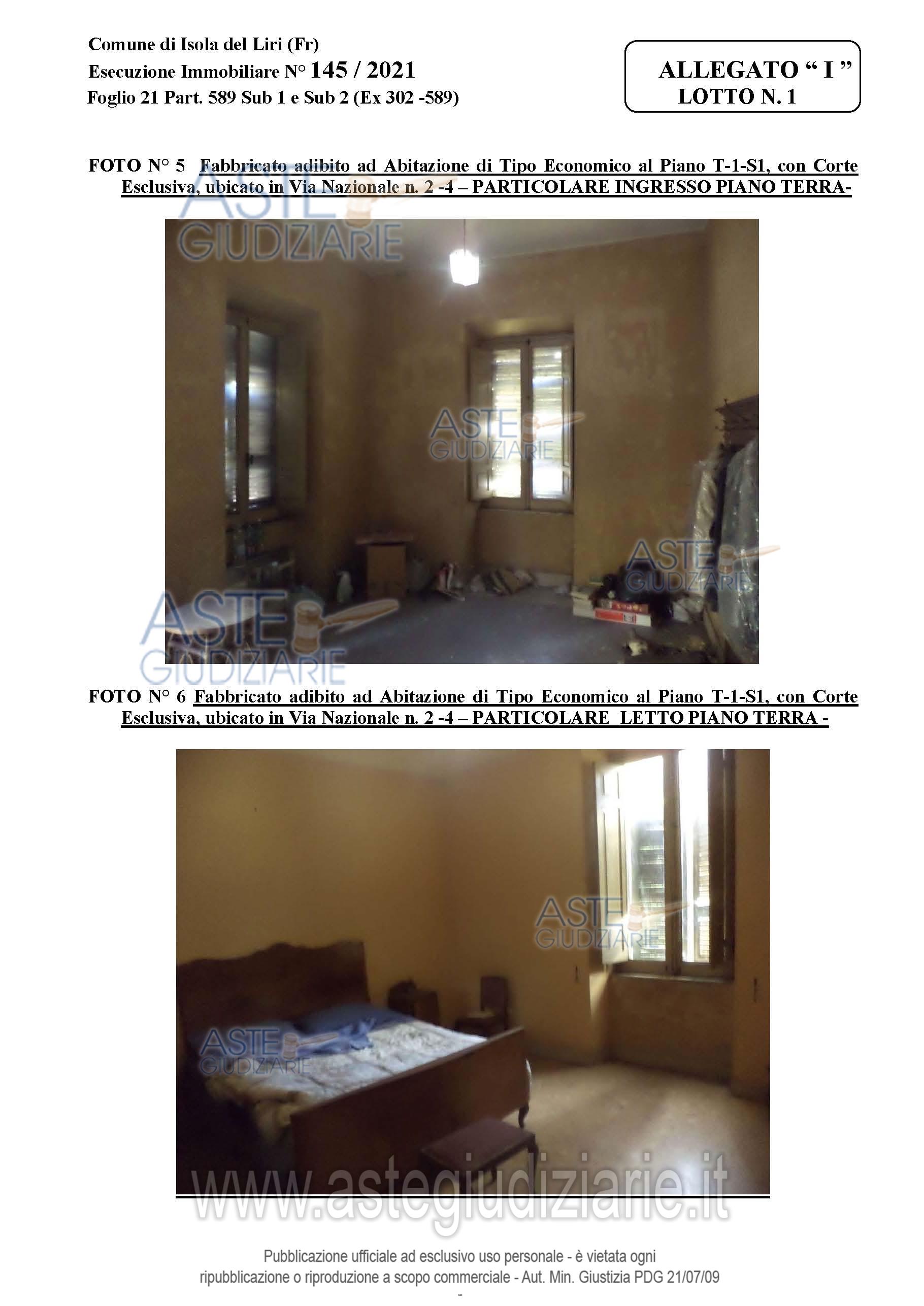 Vendita all'asta Senza incanto, con gara telematica asincrona - LOTTO 1: Bene 1 : Porzione di fabbricato, adibito ad Autorimessa e locali di deposito ubicato nel Comune di Isola del Liri (Fr) in Via Nazionale n. 2, Distinto al NCEU al Foglio 21 Part. 589 Sub 1, Categoria C6, con diritto di passaggio carrabile sulla corte esclusiva del Sub 2. Bene 2: Porzione di fabbricato, adibito ad Abitazione di tipo Economico ubicato nel Comune di Isola del Liri (Fr) in Via Nazionale n. 4, Distinto al NCEU al Foglio 21 Part. 589 Sub 2, Categoria A3, con corte esclusiva estesa Mq. 467,00. Prezzo base € 132.000,00 (offerta minima € 99.000,00). Data inizio operazioni di vendita: 17/03/2026 ore 10:00. Professionista delegato alla vendita Avv. Franco Di Stefano - Email "avv.distefano@libero.it"; Cell. 3289770592; Tel. 0776833157. Custode Giudiziario Avv. Franco Di Stefano - Email "avv.distefano@libero.it"; Cell. 3289770592; Tel. 0776833157. Rif. Tribunale di Cassino - Esecuzione immobiliare post legge 80 n. 145/2021