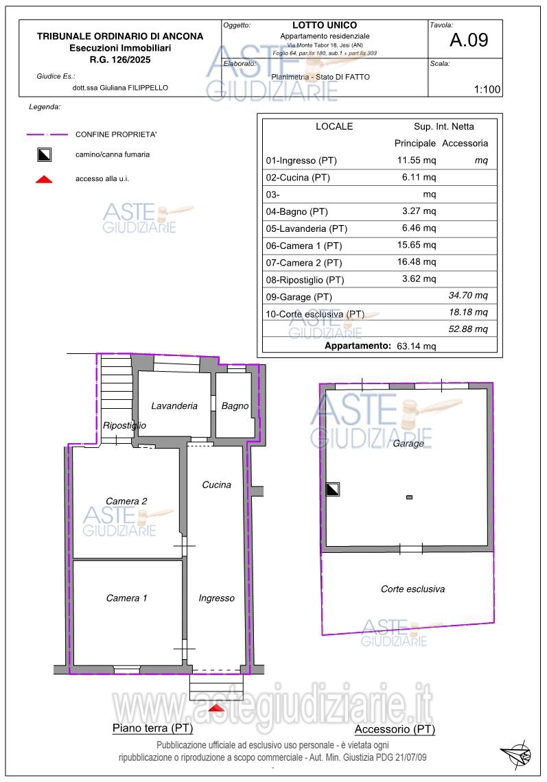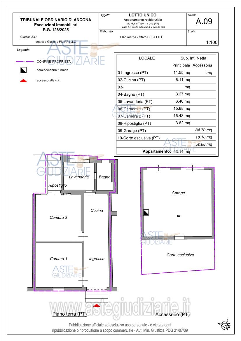 Vendita all'asta Senza incanto, con gara telematica asincrona - LOTTO UNICO: Appartamento al piano terra oltre garage. Prezzo base € 44.800,00 (offerta minima € 33.600,00). Data inizio operazioni di vendita: 23/04/2026 ore 12:45. Professionista delegato alla vendita Dott. Mirco Cerasa - Email "studiocerasa@gmail.com"; Tel. 0717323240. Custode Giudiziario Dott. Mirco Cerasa - Email "studiocerasa@gmail.com"; Tel. 0717323240. Rif. Tribunale di Ancona - Espropriazione immobiliare (cartabia) n. 126/2025