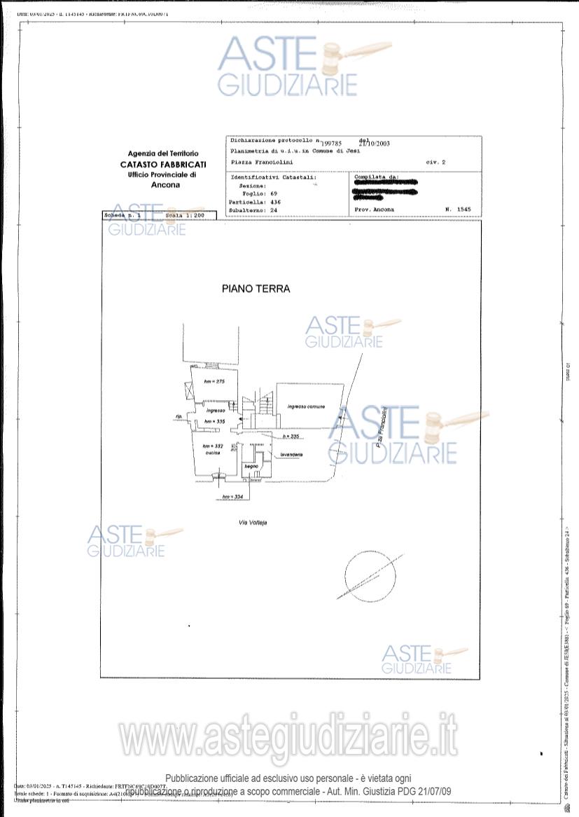 Vendita all'asta Senza incanto, con gara telematica asincrona - LOTTO UNICO: Appartamento ad uso residenziale al piano terra. Prezzo base € 70.768,01 (offerta minima € 53.076,00). Data inizio operazioni di vendita: 28/05/2026 ore 12:00. Professionista delegato alla vendita Avv. Vanessa Marini. Custode Giudiziario Avv. Vanessa Marini - Email "v.marini@rpcstudiolegale.it". Rif. Tribunale di Ancona - Espropriazione immobiliare (cartabia) n. 264/2024