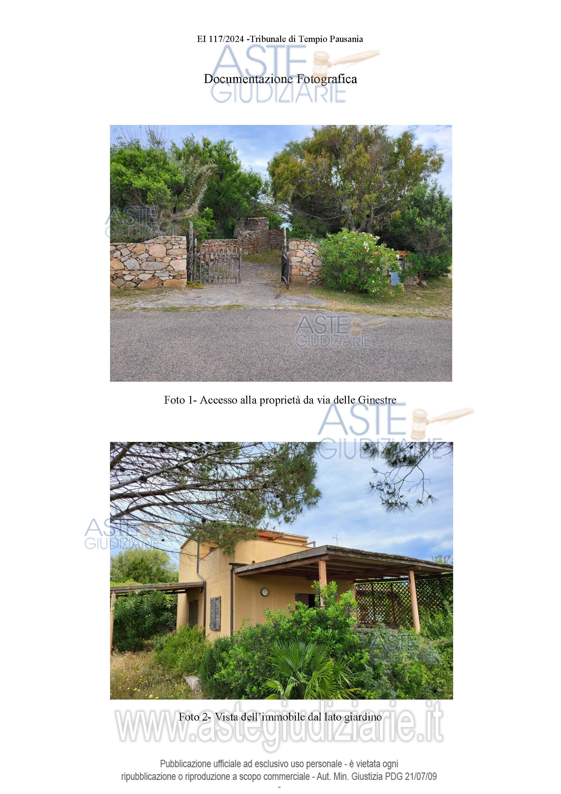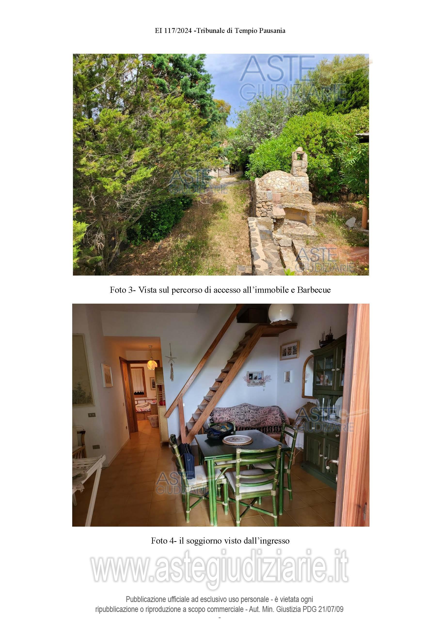 Vendita all'asta Senza incanto, con gara telematica asincrona - LOTTO UNICO: Immobile residenziale A2 costituito da piano terra, primo piano e giardino composto da soggiorno, cucina, bagno, due piccole camere al piano terra, e con camera, bagno e terrazza al primo piano. Prezzo base € 367.500,00 (offerta minima € 275.625,00). Data inizio operazioni di vendita: 30/06/2026 ore 16:30. Giudice Dott. Antonia Palombella. Professionista delegato alla vendita Avv. Viviana Bruno - Email "vivianabruno1978@tiscali.it"; Cell. 3476448769; Tel. 0789621758. Custode Giudiziario Ivg Tempio Pausania - Email "visite.ivgtempio@gmail.com"; Tel. 079630505. Rif. Tribunale di Tempio Pausania - Espropriazione immobiliare (cartabia) n. 117/2024
