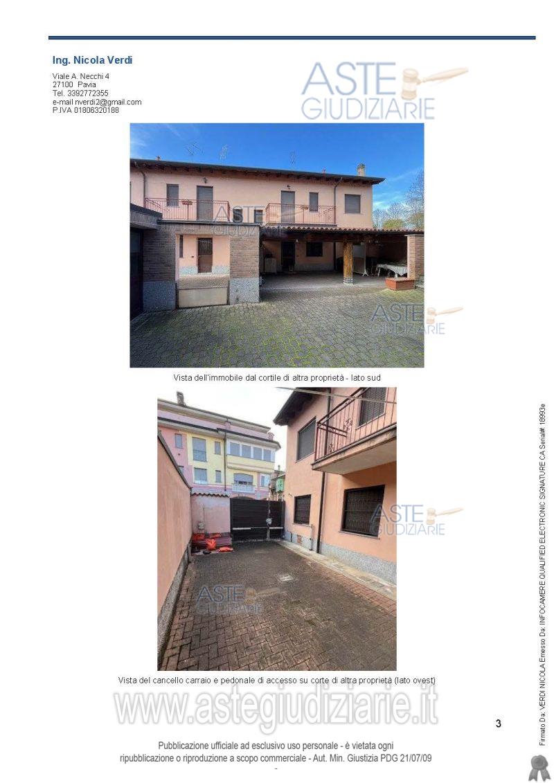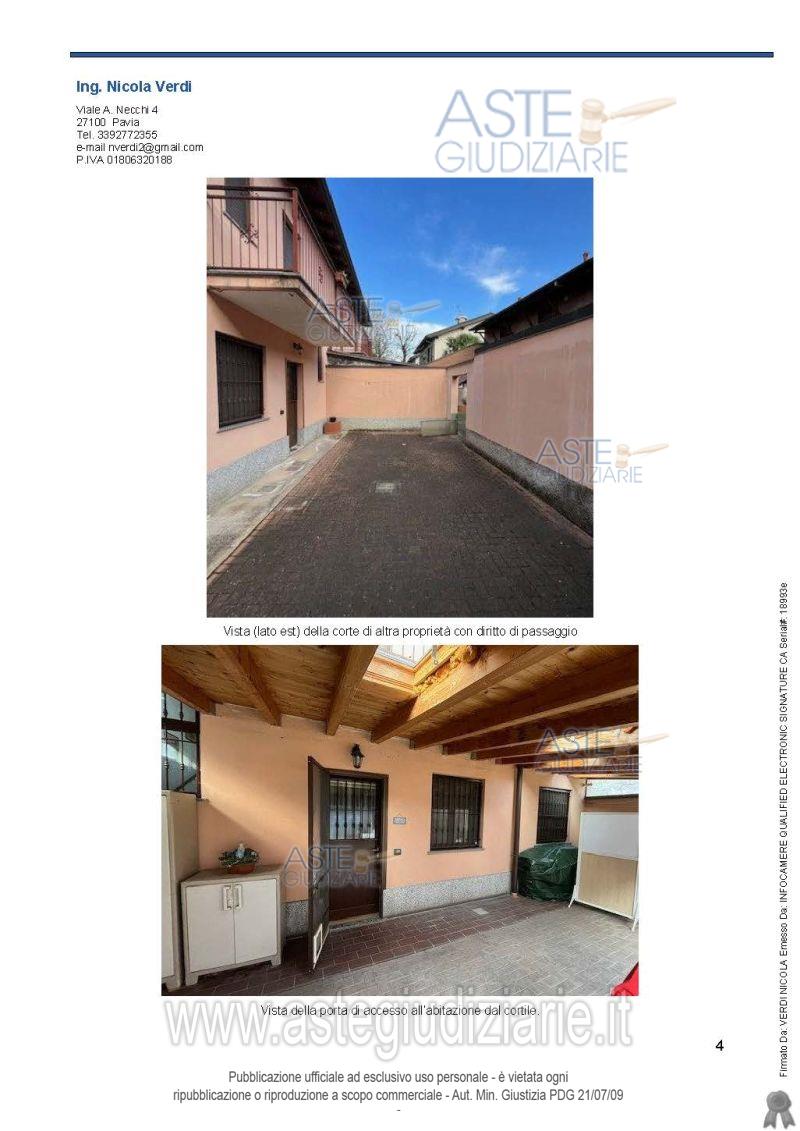 Vendita all'asta Senza incanto, con gara telematica asincrona - LOTTO 1: Porzione di fabbricato destinata ad abitazione disposta su due piani, tra loro collegati a mezzo di scala interna. Prezzo base € 105.049,00 (offerta minima € 78.786,75). Data inizio operazioni di vendita: 20/05/2026 ore 16:00. Giudice Antonio Codega. Professionista delegato alla vendita Avv. Andrea Diani - Email "avv.diani@studiolegalebosticco.com". Custode Giudiziario Istituto Vendite Giudiziarie Pavia - Email "immobiliare@ivgpavialodi.it"; Tel. 0382539013. Rif. Tribunale di Pavia - Espropriazione immobiliare (cartabia) n. 467/2024