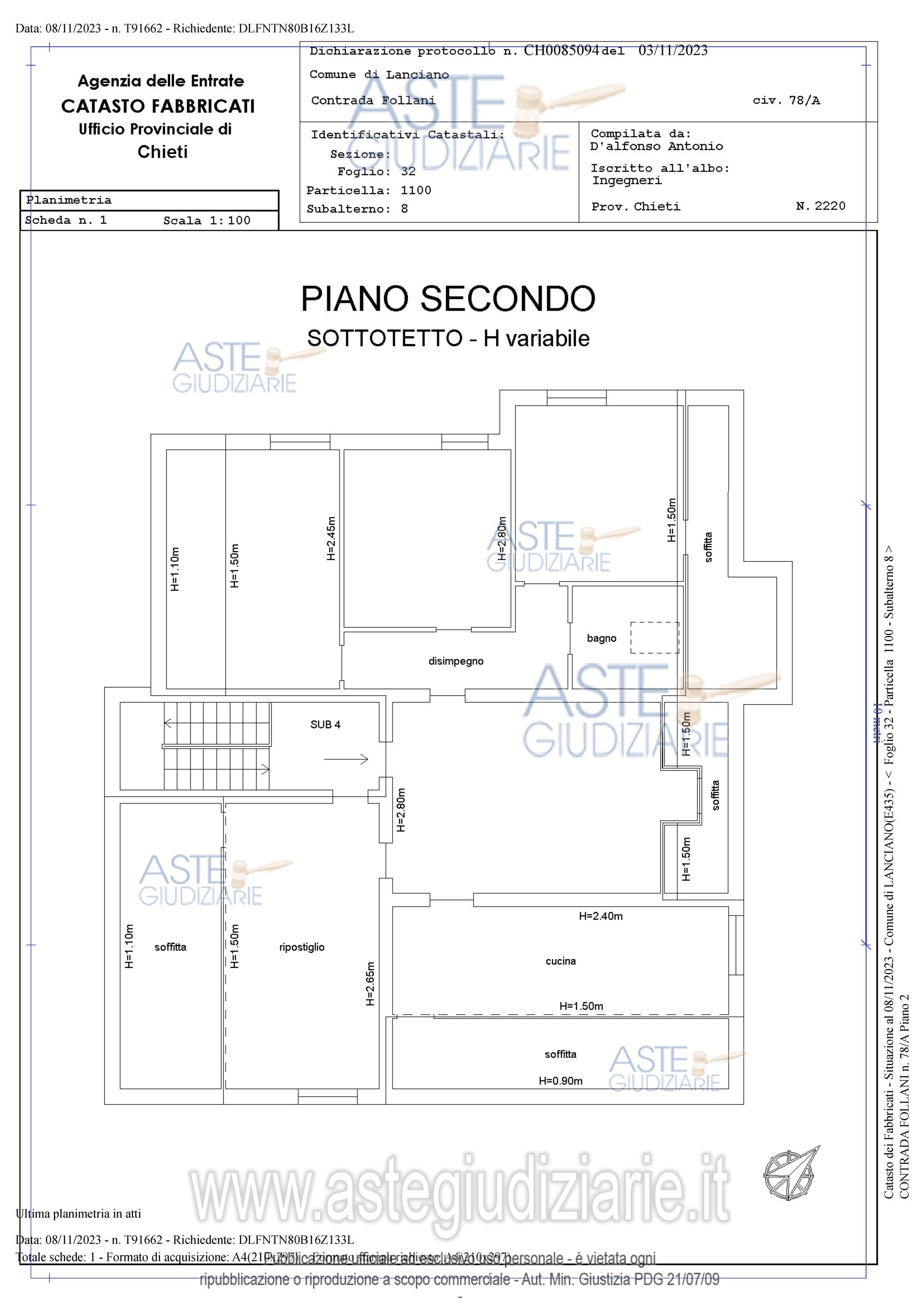 Vendita all'asta Senza incanto, con gara telematica asincrona - LOTTO UNICO: Piena proprietà di una unità immobiliare destinata ad abitazione, su unico livello situato al piano secondo (sottotetto). L’unità negoziale è costituita da un soggiorno-pranzo, una cucina, un disimpegno, tre camere, un bagno, un ripostiglio e quattro soffitte. Prezzo base € 30.000,00 (offerta minima € 22.500,00). Data inizio operazioni di vendita: 25/11/2025 ore 10:00. Giudice Chiara D'alfonso. Professionista delegato alla vendita Avv. Dina Capuzzi - Email "avv.dinacapuzzi67@gmail.com"; Cell. 3384476897. Custode Giudiziario Antonello Ferroni - Email "ivglanciano@gmail.com"; Tel. 0872715361. Rif. Tribunale di Lanciano - Espropriazione immobiliare (cartabia) n. 46/2023