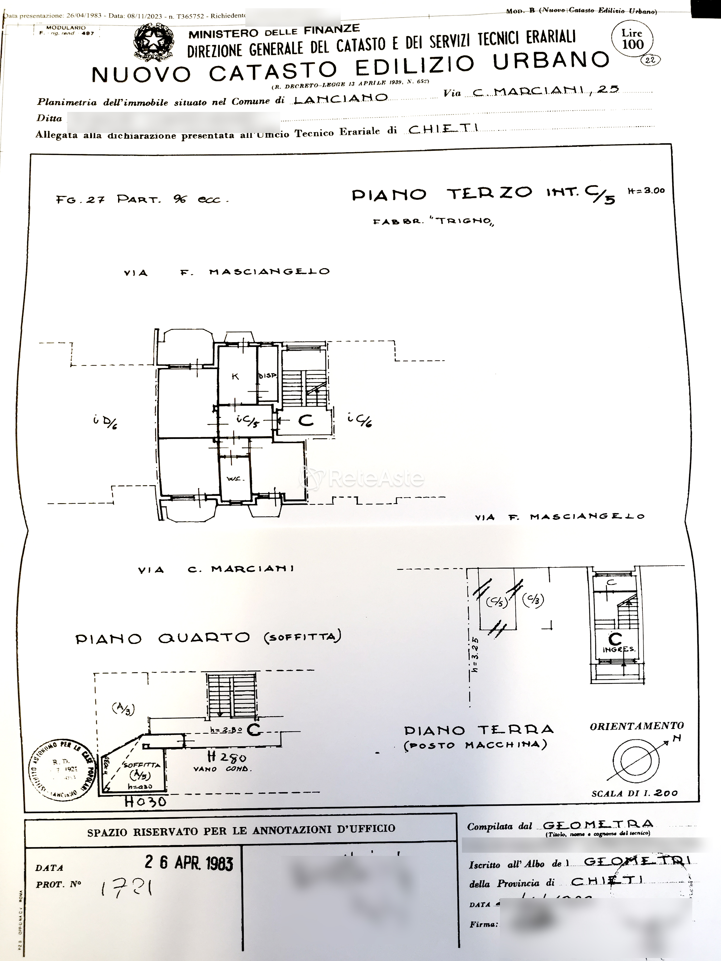 Surface property of an apartment located in the municipality of Lanciano, on Via Marciani, on the third floor of a social housing building.