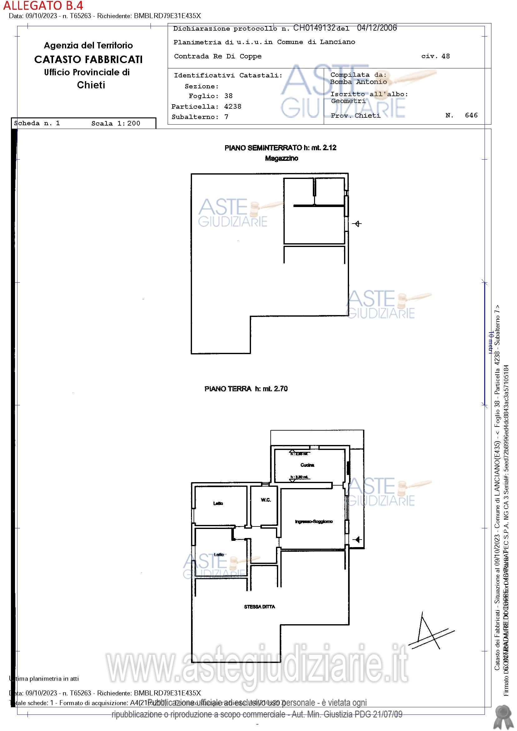 Vendita all'asta Senza incanto, con gara telematica asincrona - LOTTO UNICO: Diritto di piena proprietà appartamento sito al piano terra di un fabbricato con più abitazioni, con annessa corte esclusiva ed un magazzino (piccolo ripostiglio) al piano seminterrato a servizio dell’abitazione, appartamento composto da ingresso direttamente sul soggiorno, cucina e zona notte con due camere da letto, spazio esterno un bagno ed un piccolo wc, collegati al soggiorno da un disimpegno. Prezzo base € 96.000,00 (offerta minima € 72.000,00). Data inizio operazioni di vendita: 26/05/2026 ore 11:30. Giudice Chiara D'alfonso. Professionista delegato alla vendita Avv. Giuseppe Natarella - Email "natarellagiuseppe@gmail.com"; Cell. 3386957842. Custode Giudiziario Ivg - Email "ivglanciano@gmail.com"; Cell. 0872715361. Rif. Tribunale di Lanciano - Espropriazione immobiliare (cartabia) n. 42/2023