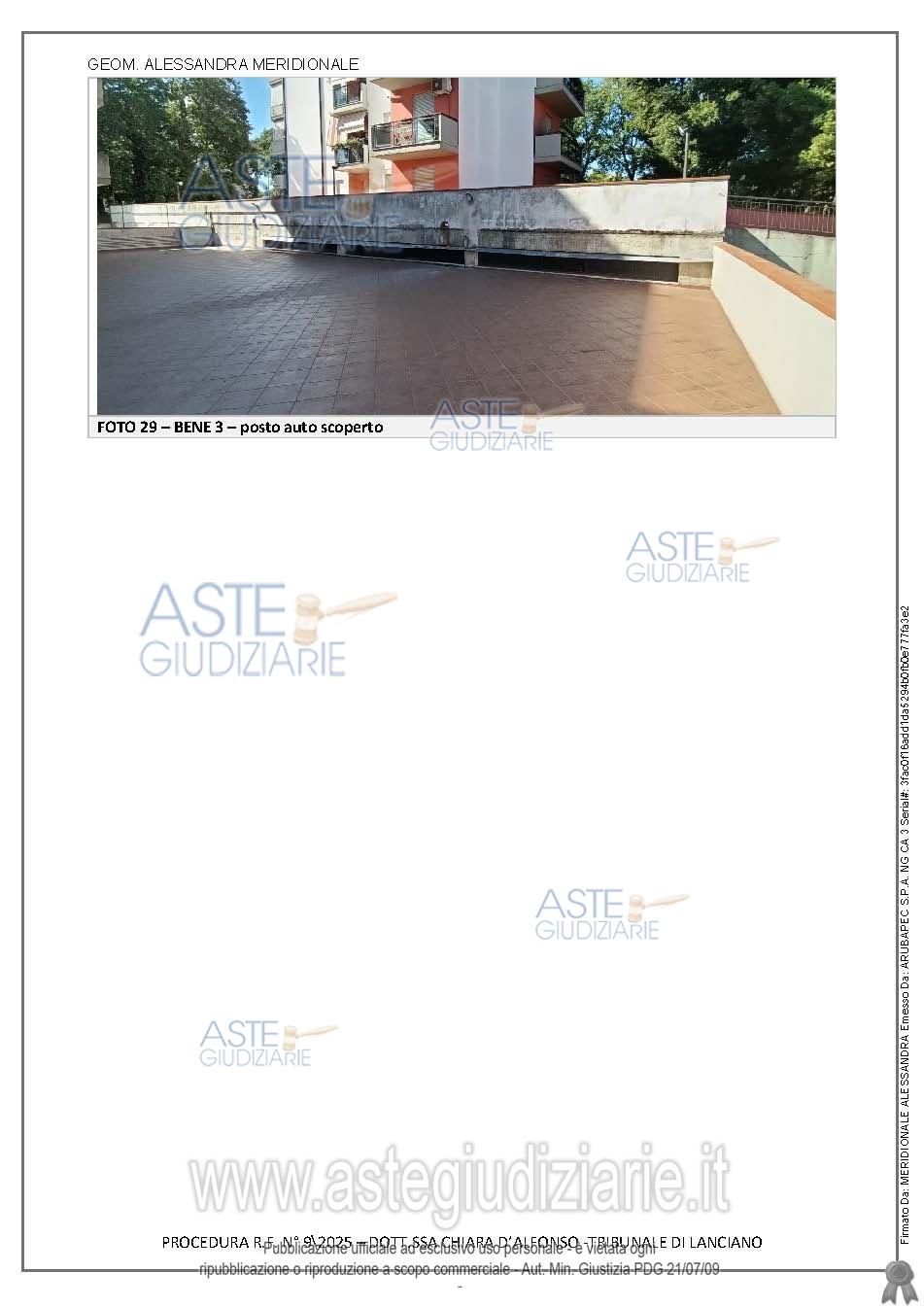 Vendita all'asta Senza incanto, con gara telematica asincrona - LOTTO UNICO: Apartment with garage and uncovered parking space, namely: - apartment for residential use, located on the second floor, internal number 10, consisting of: a living room, a kitchen, a hallway, two bedrooms, and two bathrooms, as well as four balconies; - garage located in the basement, with an area of approximately 19.70 square meters; - unmarked parking space located on the ground floor, with an area of approximately 12 square meters. . Prezzo base € 164.000,00 (offerta minima € 164.000,00). Data inizio operazioni di vendita: 19/05/2026 ore 10:00. Giudice Dott. Chiara D'alfonso. Professionista delegato alla vendita Dott. Antonino Ianieri - Tel. 360 935798. Custode Giudiziario Aste Giudiziarie Inlinea S.P.A. - Email "vendite@astegiudiziarie.it"; Tel. 0586 201480. Rif. Tribunale di Lanciano - Liquidazione controllata(cci) n. 9/2025