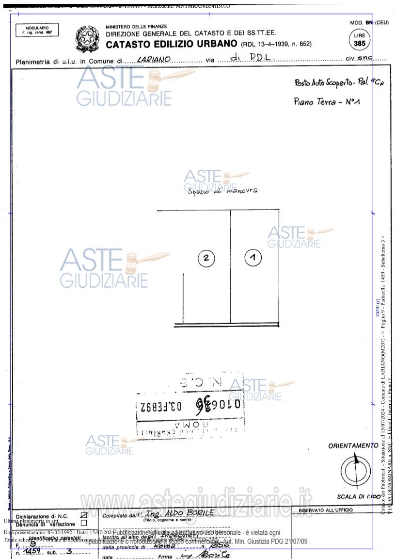 Vendita all'asta Senza incanto, con gara telematica asincrona - LOTTO UNICO: abitazione di tipo civile, sita in Comune di Lariano (RM), piazza dell’Anfiteatro snc – Edificio C, interno 13, censito al NCEU di detto Comune, al foglio 9, part. 1459, sub. 21, categoria A2, piano 3, vani 5,5 R. € 468,68;-Stalle, scuderie, rimesse, autorimesse site nel Comune di Lariano, piazza dell’Anfiteatro snc- Edificio C, interno 1, censite al NCEU di detto Comune, al foglio 9, part. 1459, sub.3, Categoria C/6, piano T, 15 mq. R. € 28,66. Il tutto salvo errori e come meglio descritto nell’atto di pignoramento. Prezzo base € 95.000,00 (offerta minima € 71.250,00). Data inizio operazioni di vendita: 20/03/2026 ore 09:30. Professionista delegato alla vendita Avv. Domenico Ercolino - Tel. 069364947 - 39224328. Rif. Tribunale di Velletri - Esecuzione immobiliare post legge 80 n. 179/2024