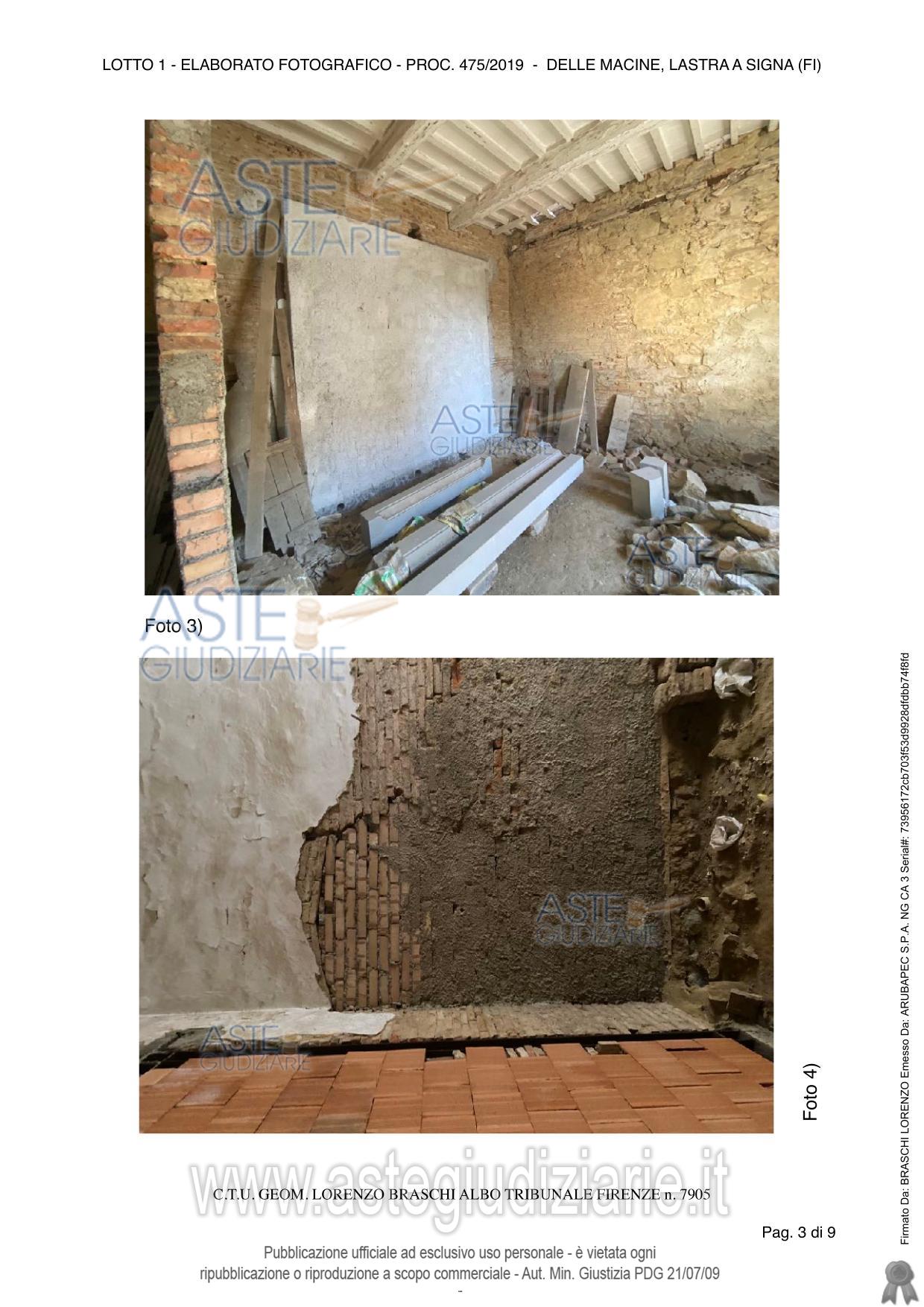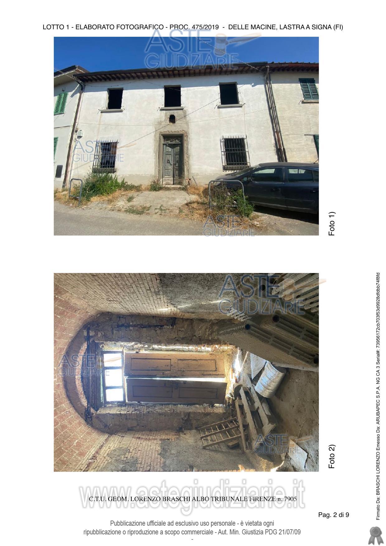 Vendita all'asta Senza incanto, con gara telematica sincrona - LOTTO 1: Fabbricato uso civile abitazione che si sviluppa del piano terreno, primo e sottotettodi un edificio unifamiliare posto nel comune di Lastra a Signa (FI) localitàMalmantile, via delle Macine s.n.c., sono pertinenze esclusiva dell’unitàimmobiliare una corte ed un locale lavanderia. Prezzo base € 120.000,00 (offerta minima € 90.000,00). Data vendita 15/07/2026 ore 09:00. Giudice Dott. Francesca Romana Bisegna. Professionista delegato alla vendita Avv. Maria Chiara Cerbioni - Email "m.cerbioni@virgilio.it". Custode Giudiziario Istituto Vendite Giudiziarie Di Firenze - Email "prenota.fi@isveg.it"; Tel. 0552340830. Rif. Tribunale di Firenze - Esecuzione immobiliare post legge 80 n. 475/2019