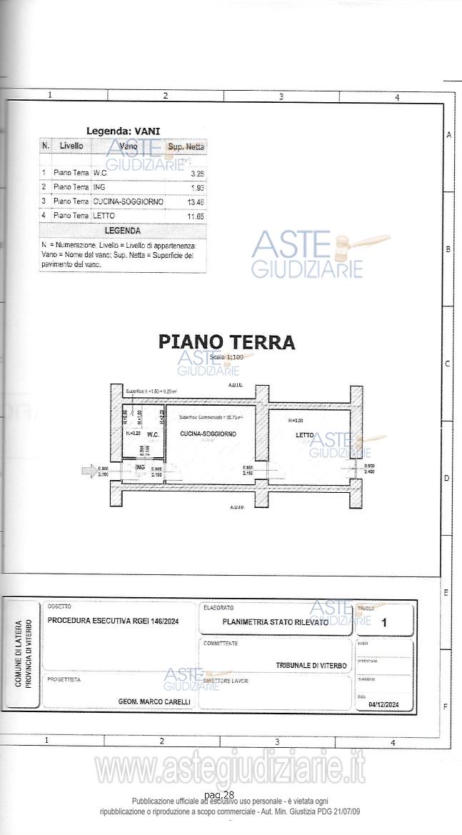 Vendita all'asta Senza incanto, con gara telematica asincrona - LOTTO UNICO: Unità abitativa sita a piano terra di superficie calpestabile di mq. 39,32, con accesso diretto da Corso Vittorio Emanuele III al n. 168, composta da ingresso, wc, cucina-soggiorno e camera da letto. Il compendio si presenta in discreto stato di manutenzione ed è dotato di impianto di riscaldamento alimentato a metano, con relativa caldaia e radiatori in ghisa. Impianto elettrico protetto con salvavita e infissi finestre in alluminio. Prezzo base € 9.507,00 (offerta minima € 7.131,00). Data inizio operazioni di vendita: 10/12/2025 ore 10:40. Professionista delegato alla vendita Avv. Marco Floresta - Email "marcofloresta@libero.it"; Cell. 3394675962; Tel. 0761342691. Custode Giudiziario Avv. Marco Floresta - Email "marcofloresta@libero.it"; Cell. 3394675962; Tel. 0761342691. Rif. Tribunale di Viterbo - Esecuzione immobiliare post legge 80 n. 146/2024