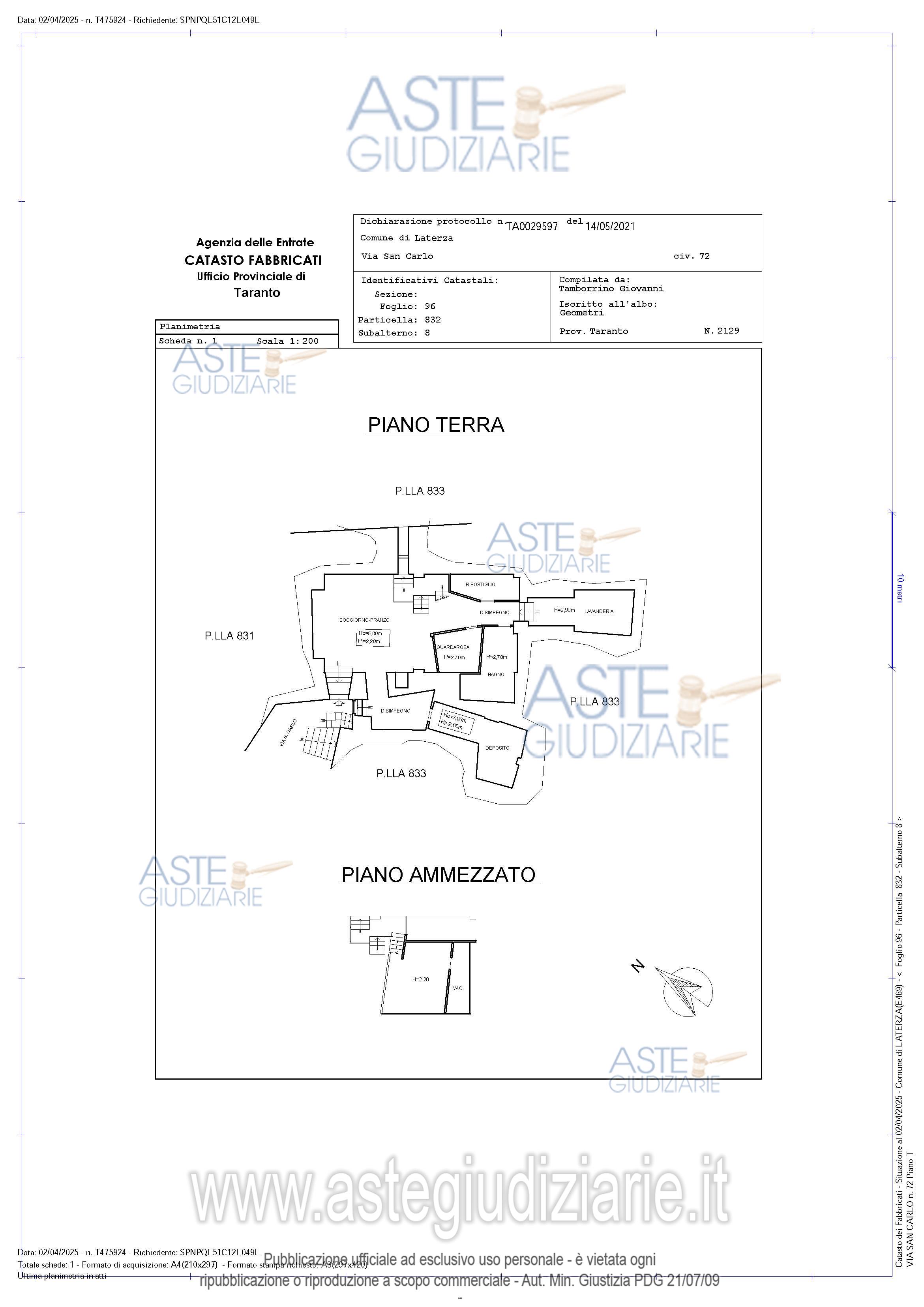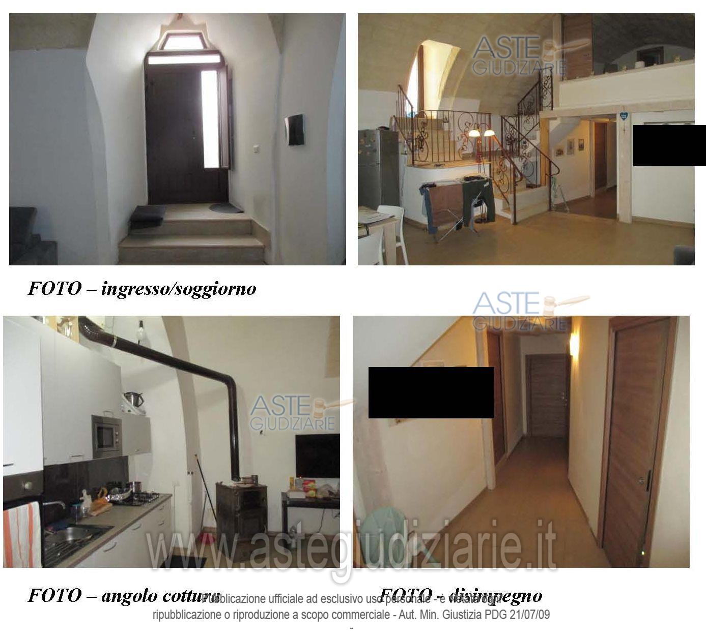 Vendita all'asta Senza incanto, con gara telematica asincrona - LOTTO UNICO: Alloggio al piano terra composto da ampio soggiorno - pranzo, disimpegno, ambienti di sgombero, deposito, due bagni e comprende alcuni antichi “ipogei”; si sviluppa su diversi piani raccordati da piccole rampe di scale ed è dotato di soppalco in legno con affaccio sulla zona giorno. Prezzo base € 96.412,50 (offerta minima € 72.309,38). Data inizio operazioni di vendita: 30/06/2026 ore 17:00. Giudice Dott. Andrea Paiano. Professionista delegato alla vendita Dott. Cosimo Valentini. Custode Giudiziario Dott. Cosimo Valentini - Email "c.valentini@cosimovalentini.it"; Tel. 0997362632. Rif. Tribunale di Taranto - Espropriazione immobiliare (cartabia) n. 219/2024