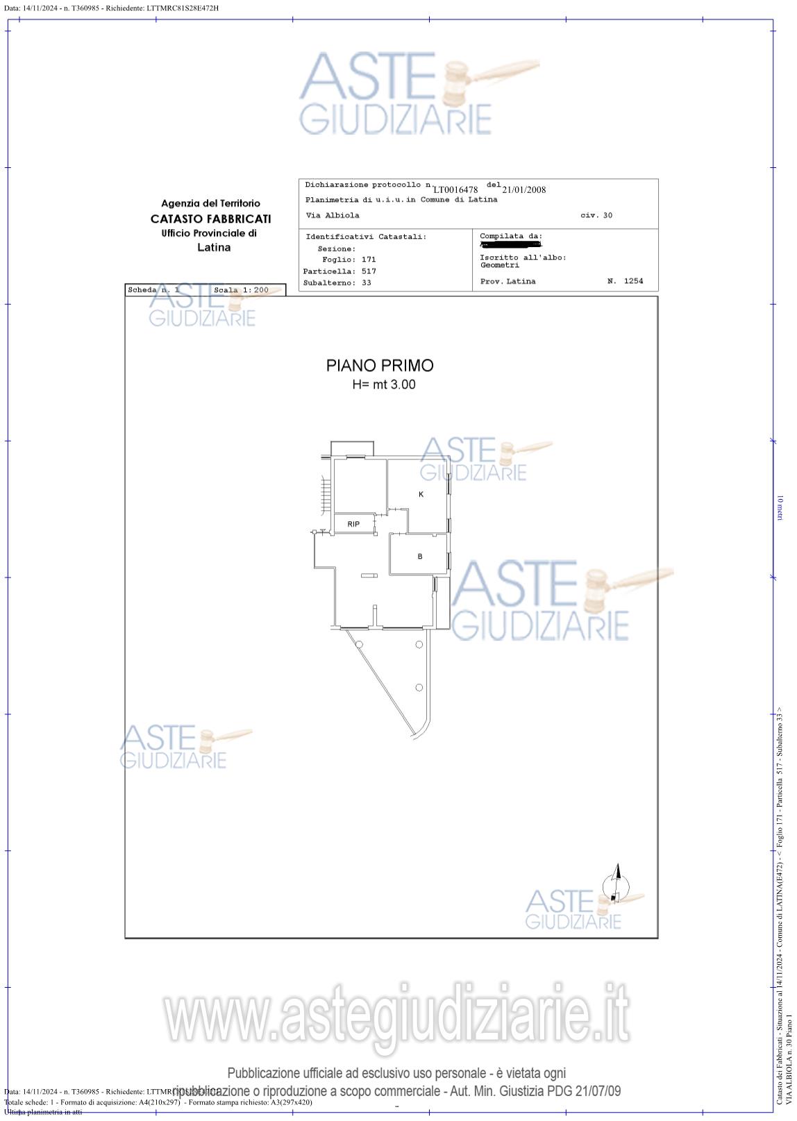 Vendita all'asta Senza incanto, con gara telematica asincrona - LOTTO UNICO: piena ed intera proprietà di abitazione sita in Latina (LT), Via Albiola n. 30 al piano primo di un fabbricato per civile abitazione e negozi. Prezzo base € 127.169,00 (offerta minima € 95.377,00). Data inizio operazioni di vendita: 20/01/2026 ore 11:00. Giudice Dott. Elena Saviano. Professionista delegato alla vendita Avv. Patrizio Panini - Email "patrizio.panini@libero.it"; Cell. 3934232385. Custode Giudiziario Avv. Patrizio Panini - Email "patrizio.panini@libero.it"; Cell. 3934232385. Rif. Tribunale di Latina - Espropriazione immobiliare (cartabia) n. 248/2023