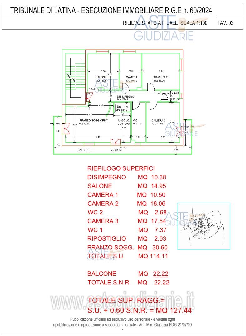 Vendita all'asta Senza incanto, con gara telematica asincrona - LOTTO UNICO: Appartamento ubicato a Latina (LT) - Via G. Caetani 34.Appartamento al piano primo in via G. Caetani n 34, in un fabbricato di 4 piani fuori terra con destinazione piano terra garage e residenza, piano primo, secondo e terzo residenza, con un appartamento a piano. L'appartamento in oggetto è composto da salone, angolo cucina con pranzo, ripostiglio, 2 servizi igienici e tre camere, balcone. Prezzo base € 99.561,00 (offerta minima € 74.670,75). Data inizio operazioni di vendita: 14/04/2026 ore 15:00. Professionista delegato alla vendita Avv. Vincenzo Coluccio - Email "colucciovincenzo@tiscali.it"; Cell. 3394755613; Tel. 0773486467. Custode Giudiziario Avv. Vincenzo Coluccio - Email "colucciovincenzo@tiscali.it"; Cell. 3394755613; Tel. 0773486467. Rif. Tribunale di Latina - Espropriazione immobiliare (cartabia) n. 60/2024