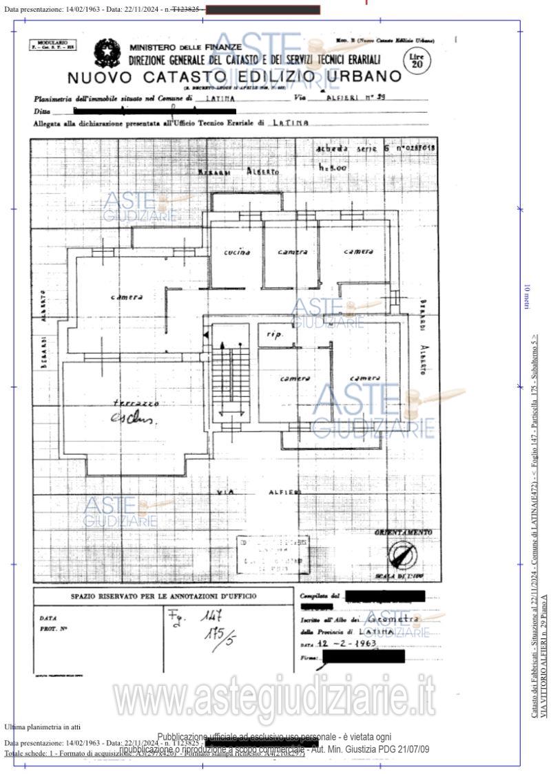 Vendita all'asta Senza incanto, con gara telematica asincrona - LOTTO UNICO: Bene 1): Appartamento ubicato a Latina (LT) - Via Vittorio Alfieri 35, piano 2,Identificato al catasto Fabbricati - Fg. 147, Part. 175, Sub. 5, Zc. 1, Cat. A3Bene 2): Garage ubicato a Latina (LT) - Via Vittorio Alfieri 35, piano T,Identificato al catasto Fabbricati - Fg. 147, Part. 313, Zc.1, Cat. C6 L'immobile viene posto in vendita per il diritto di Proprietà (1/1). Prezzo base € 258.843,78 (offerta minima € 194.133,00). Data inizio operazioni di vendita: 14/04/2026 ore 12:00. Giudice Elena Saviano. Professionista delegato alla vendita Dott. Marco Paris. Custode Giudiziario Dott. Marco Paris - Email "paris_1_@hotmail.com". Rif. Tribunale di Latina - Espropriazione immobiliare (cartabia) n. 202/2023