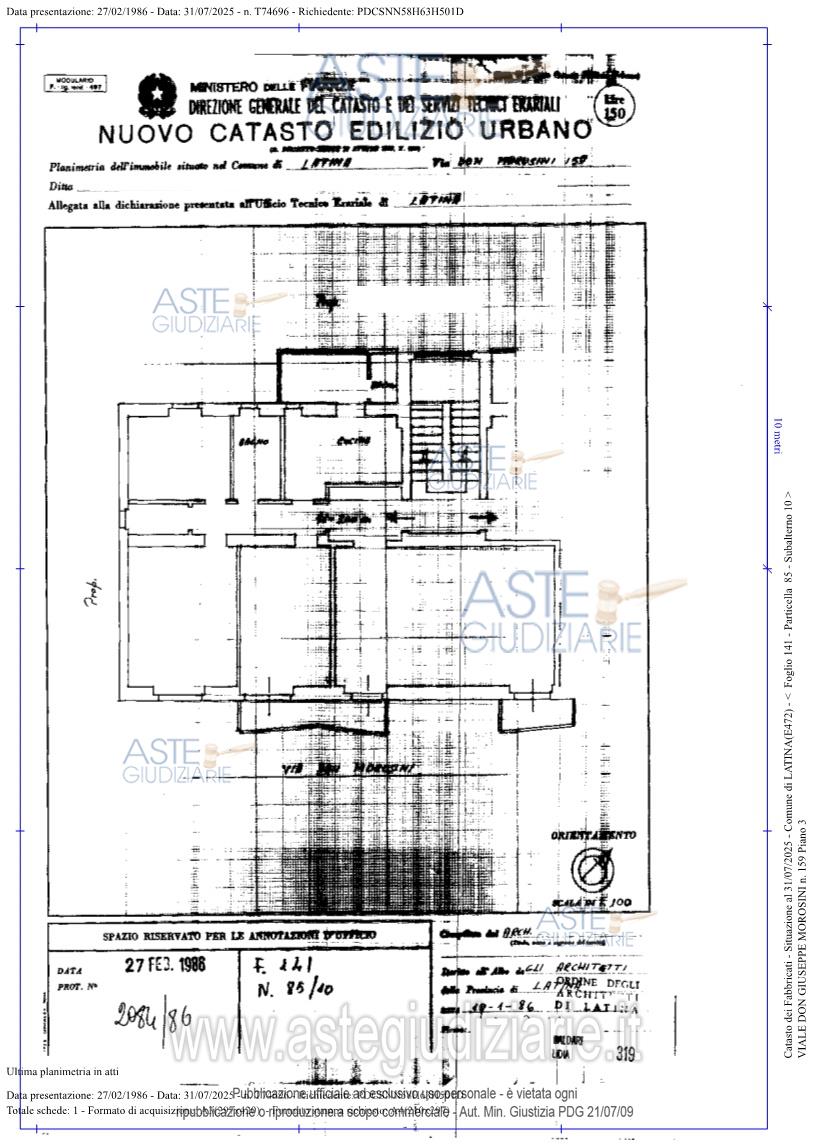 Vendita all'asta Senza incanto, con gara telematica asincrona - LOTTO UNICO: Piena proprietà (1/1) dell’appartamento ubicato a Latina (LT) - Viale Don Giuseppe Morosini n. 159, posto al piano 3 ubicato in zona centrale e composto da un ingresso disimpegno, una cucina, un bagno, un wc, una veranda, 4 camere, ed un soggiorno e dotato di due balconi con affaccio sulla strada. Identificato al C.F. - Foglio 141, Particella 85, Sub. 10. Prezzo base € 203.008,00 (offerta minima € 152.256,00). Data inizio operazioni di vendita: 16/06/2026 ore 11:00. Giudice Alessandra Lulli. Professionista delegato alla vendita Avv. Tiziana De Simone - Email "desimonetiziana@hotmail.it"; Cell. 3477082744; Tel. 3477082744. Custode Giudiziario Avv. Tiziana De Simone - Email "desimonetiziana@hotmail.it"; Cell. 3477082744; Tel. 3477082744. Rif. Tribunale di Latina - Espropriazione immobiliare (cartabia) n. 247/2024