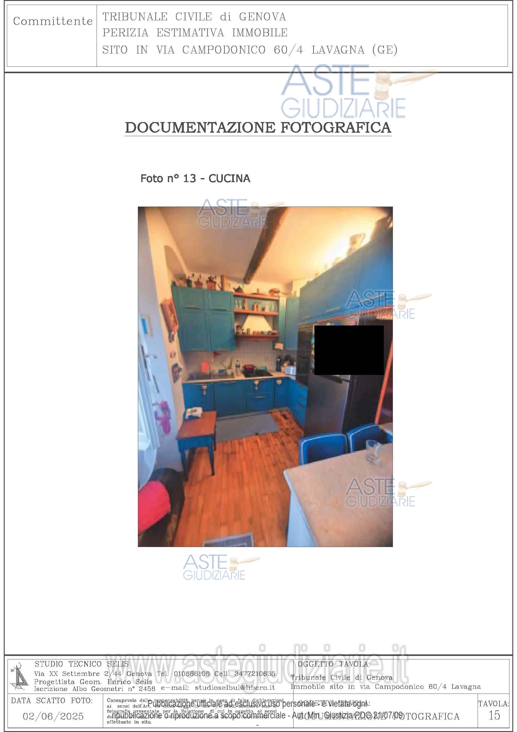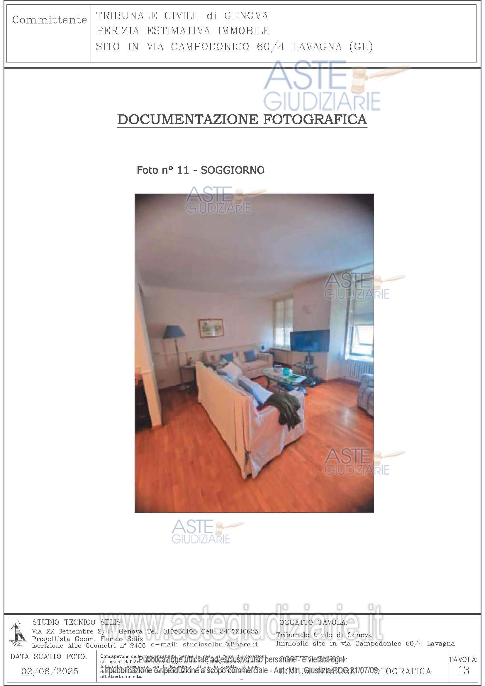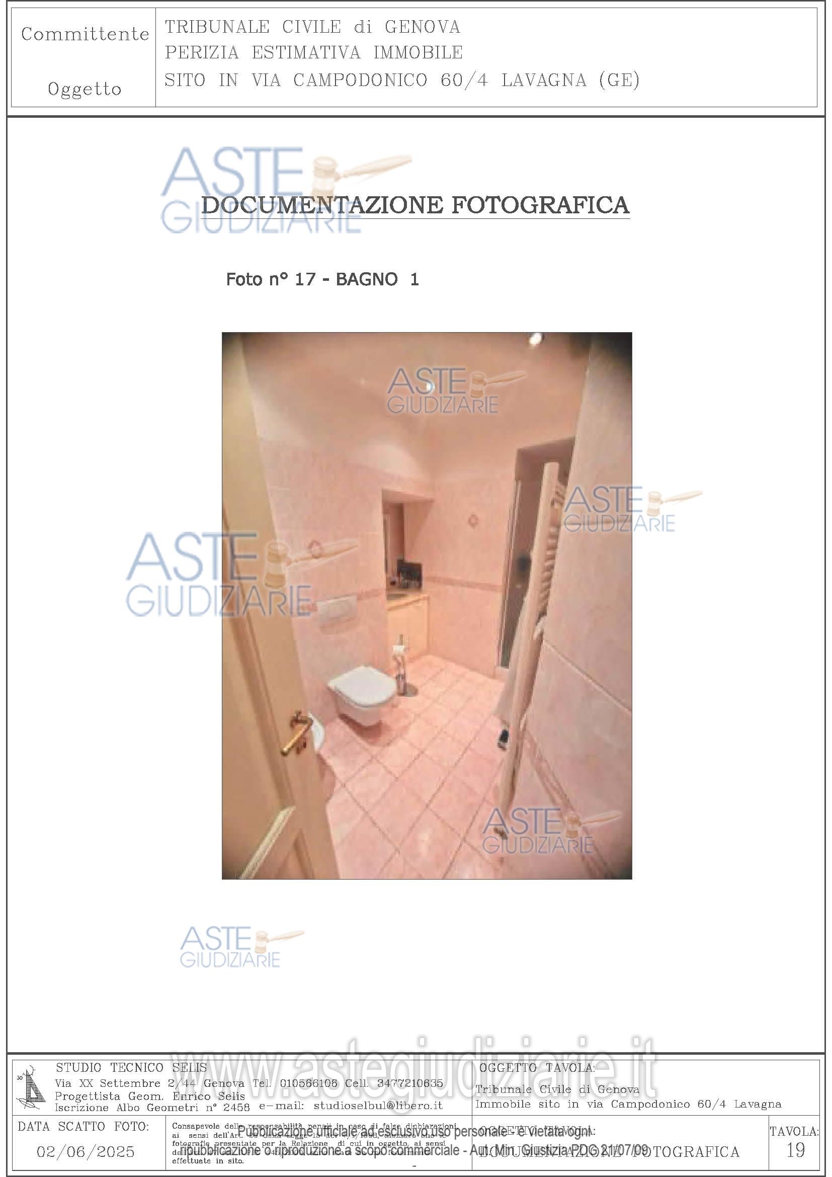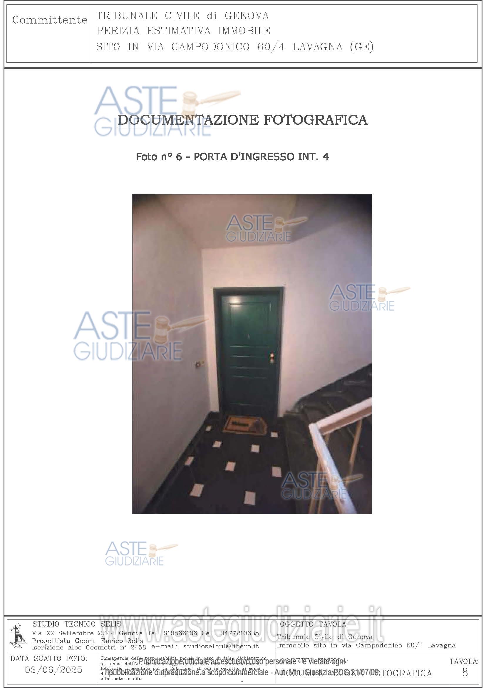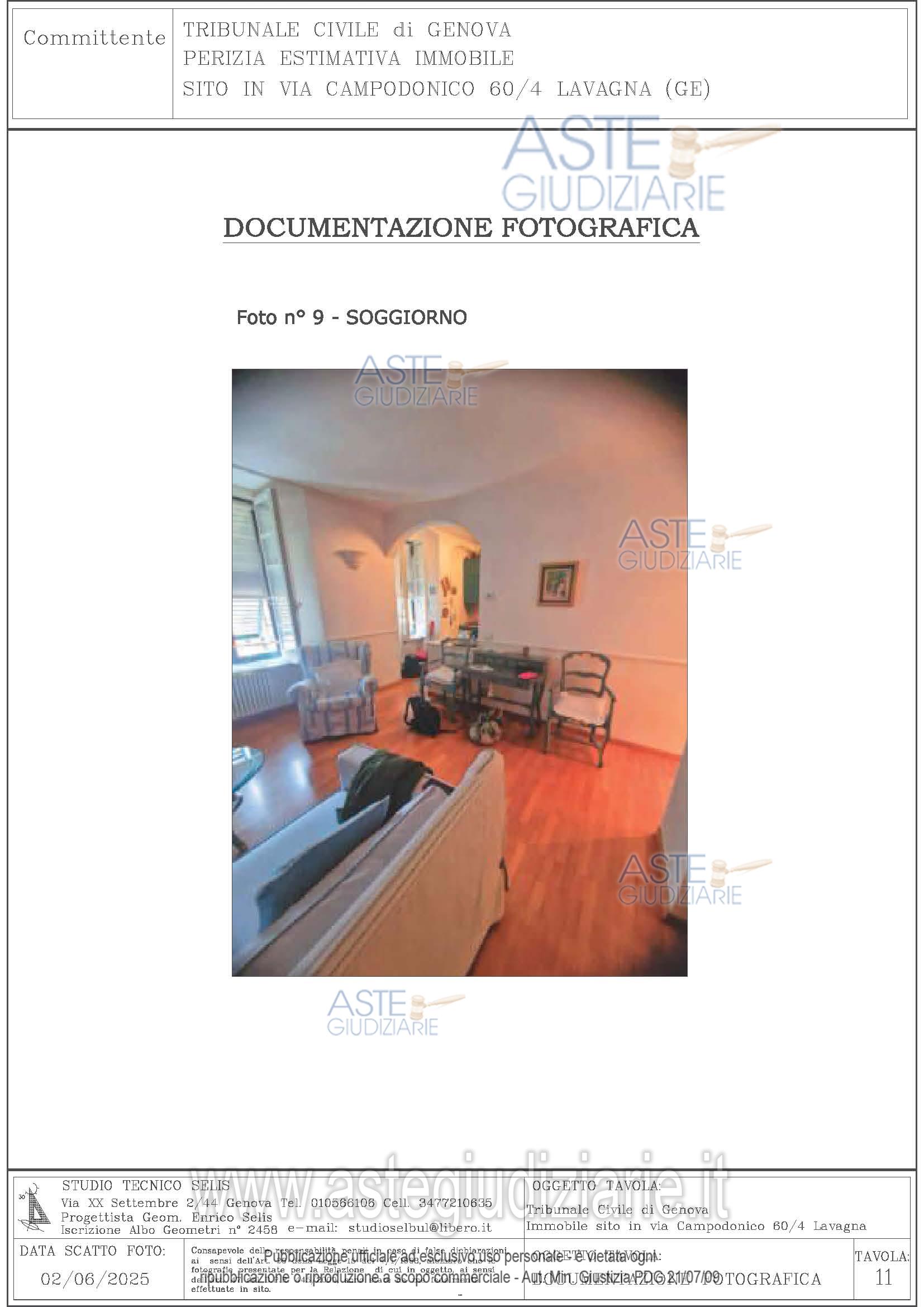 Vendita all'asta Senza incanto, con gara telematica sincrona mista - LOTTO UNICO: 100% BENE immobile gravato dal diritto di abitazione. Appartamento ubicato al civ. 60 int. 4 di Via Giovanni Battista Campodonico in Lavagna (GE) posto al secondo piano (senza ascensore) composto da ingresso, corridoio, ampia sala dotata di due finestre con esposizione a nord-ovest, soggiorno, una camera da letto matrimoniale anch’essa esposta a nord-ovest, due bagni, cucina con esposizione a nord-ovest e locale ripostiglio. Prezzo base € 204.000,00 (offerta minima € 183.600,00). Data vendita 29/04/2026 ore 15:00. Rif. Tribunale di Genova - Liquidazione giudiziale(cci) n. 125/2024