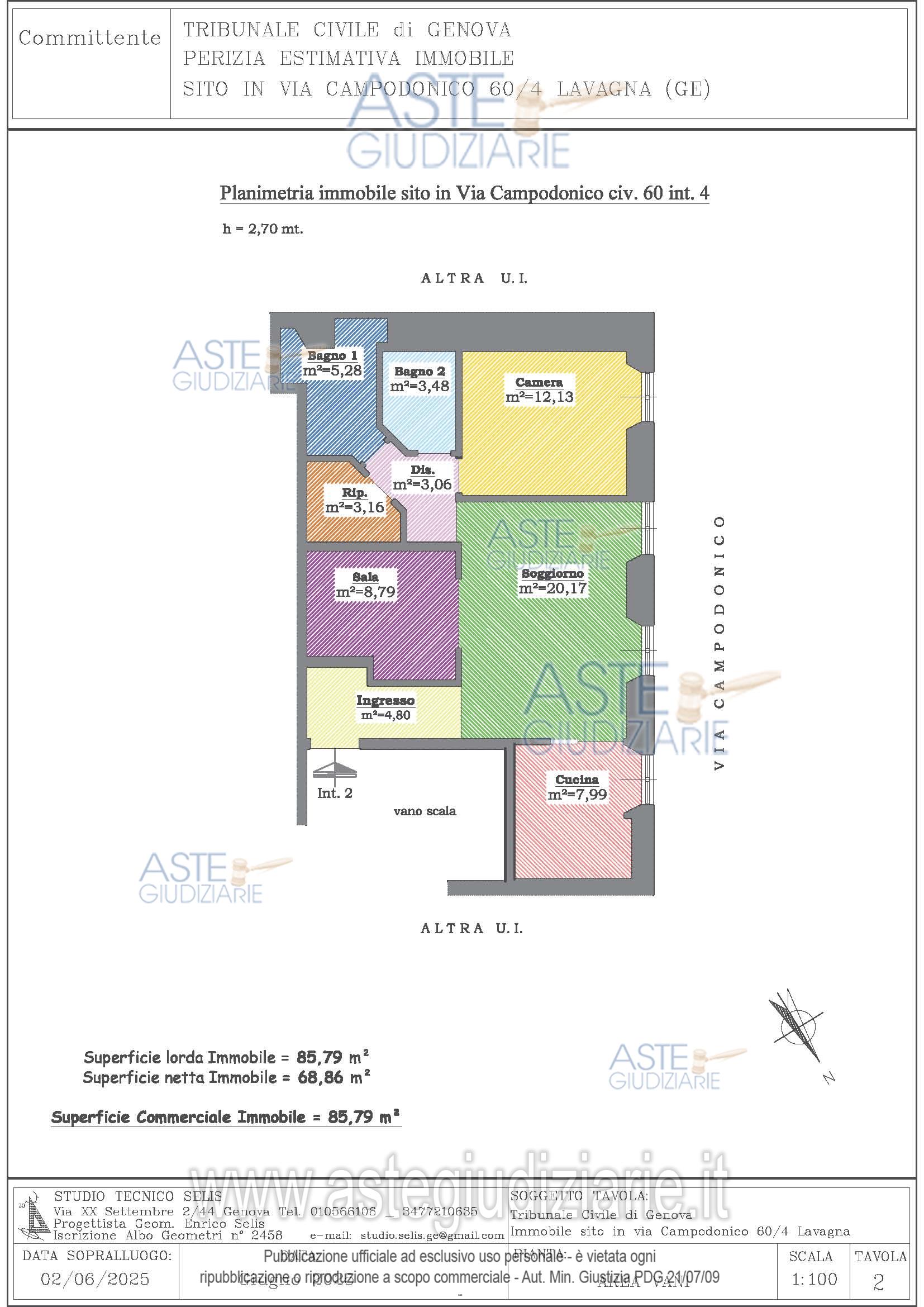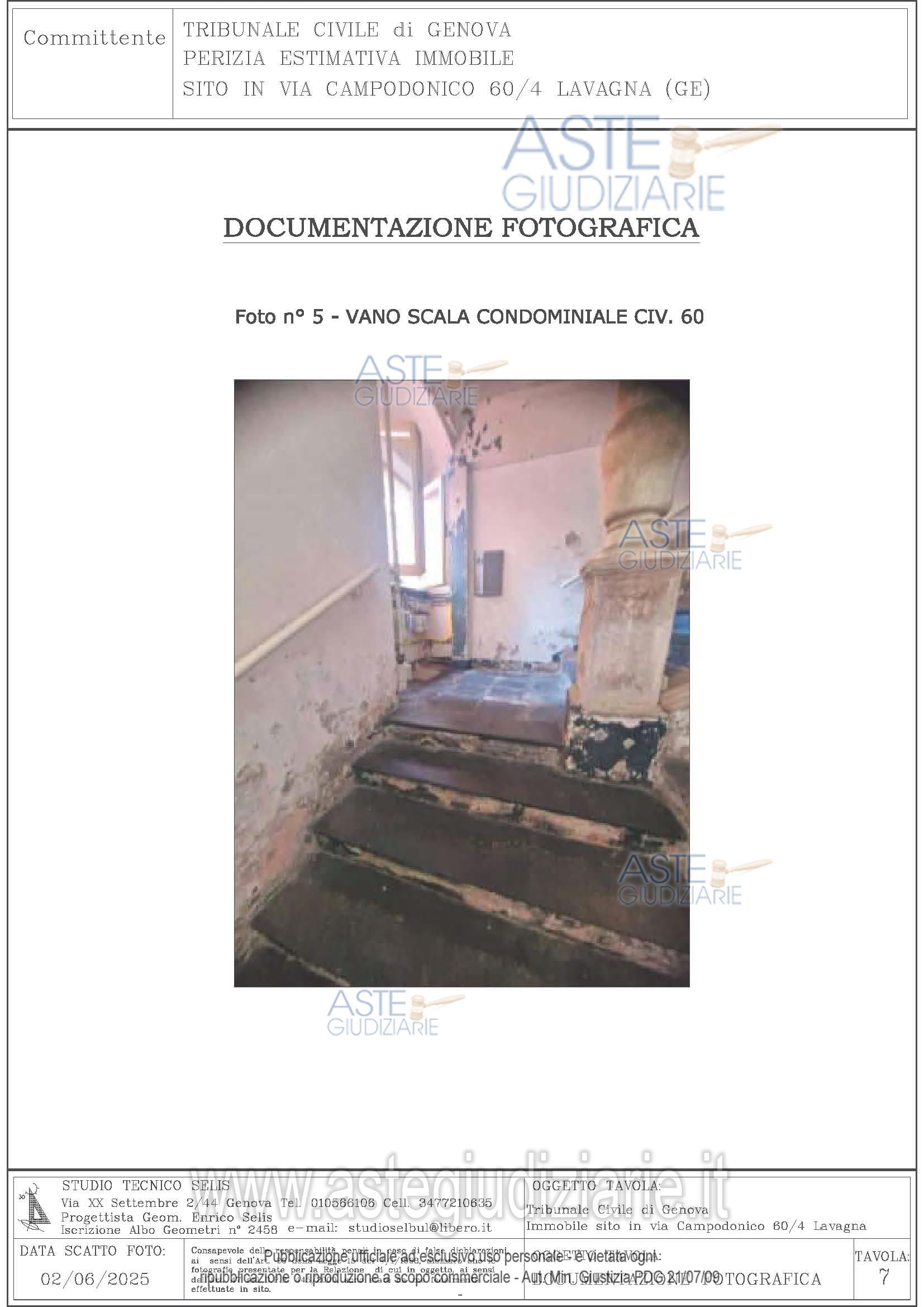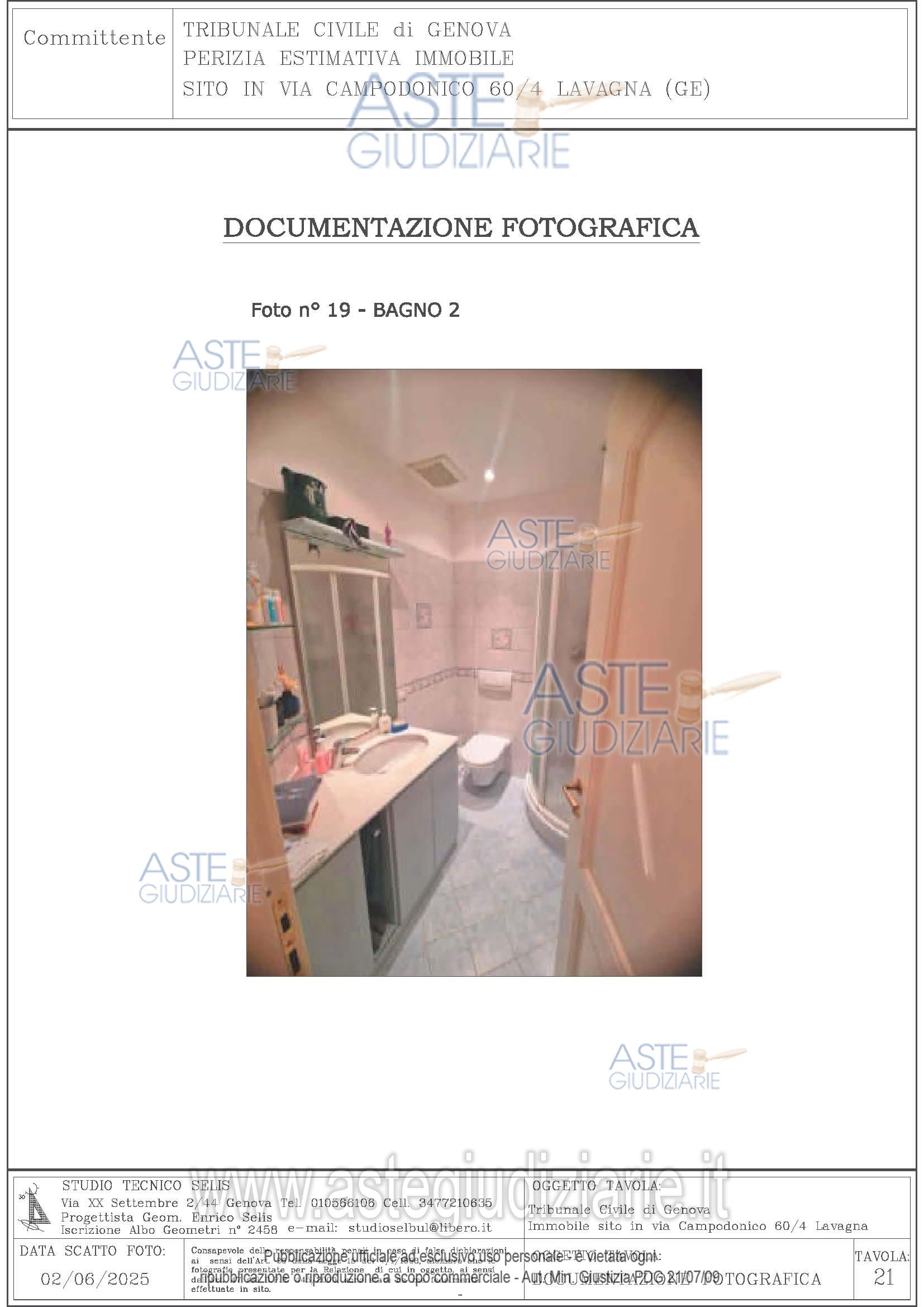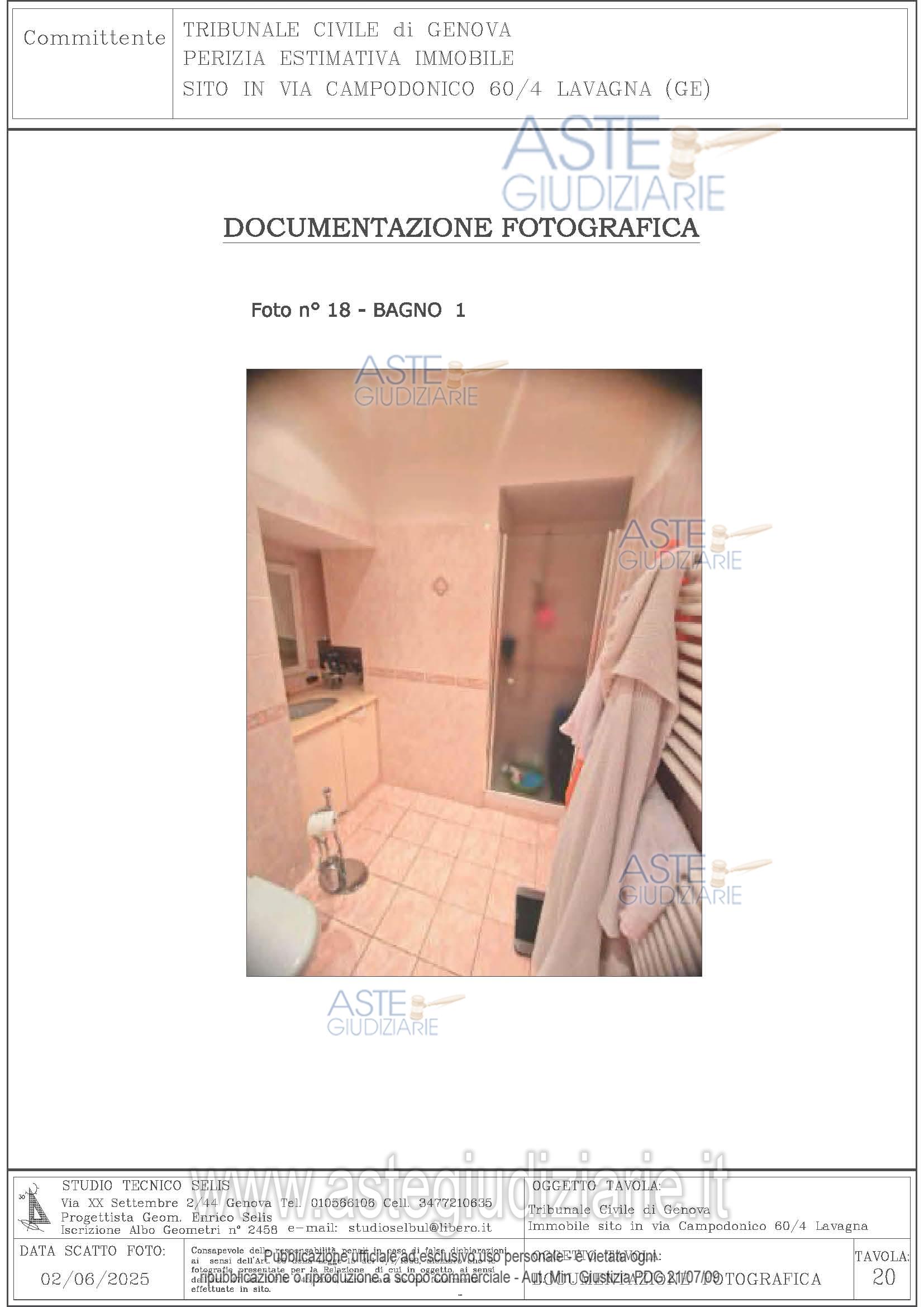 Vendita all'asta Senza incanto, con gara telematica sincrona mista - LOTTO UNICO: 100% BENE immobile gravato dal diritto di abitazione. Appartamento ubicato al civ. 60 int. 4 di Via Giovanni Battista Campodonico in Lavagna (GE) posto al secondo piano (senza ascensore) composto da ingresso, corridoio, ampia sala dotata di due finestre con esposizione a nord-ovest, soggiorno, una camera da letto matrimoniale anch’essa esposta a nord-ovest, due bagni, cucina con esposizione a nord-ovest e locale ripostiglio. Prezzo base € 204.000,00 (offerta minima € 183.600,00). Data vendita 29/04/2026 ore 15:00. Rif. Tribunale di Genova - Liquidazione giudiziale(cci) n. 125/2024