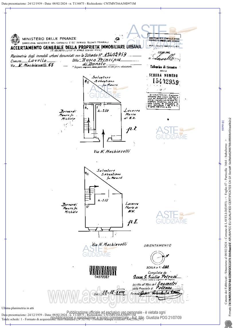 Vendita all'asta Senza incanto, con gara telematica asincrona - LOTTO UNICO: diritto di proprietà per la quota di 1/1 abitazione unifamiliare, sita in Via Niccolò Machiavelli n. 65 del Comune di Lavello (PZ). Si sviluppa su tre piani: piano terra, primo piano e secondo piano (soffitta) con unico acceso da Via Niccolò Machiavelli n. 65. Prezzo base € 43.000,00 (offerta minima € 32.250,00). Data inizio operazioni di vendita: 08/01/2026 ore 10:00. Professionista delegato alla vendita Avv. Francesco Missanelli - Email "francescomissanelli@gmail.com"; Tel. 0971443116. Custode Giudiziario Avv. Francesco Missanelli - Email "francescomissanelli@gmail.com"; Tel. 0971443116. Rif. Tribunale di Potenza - Esecuzione immobiliare post legge 80 n. 76/2022