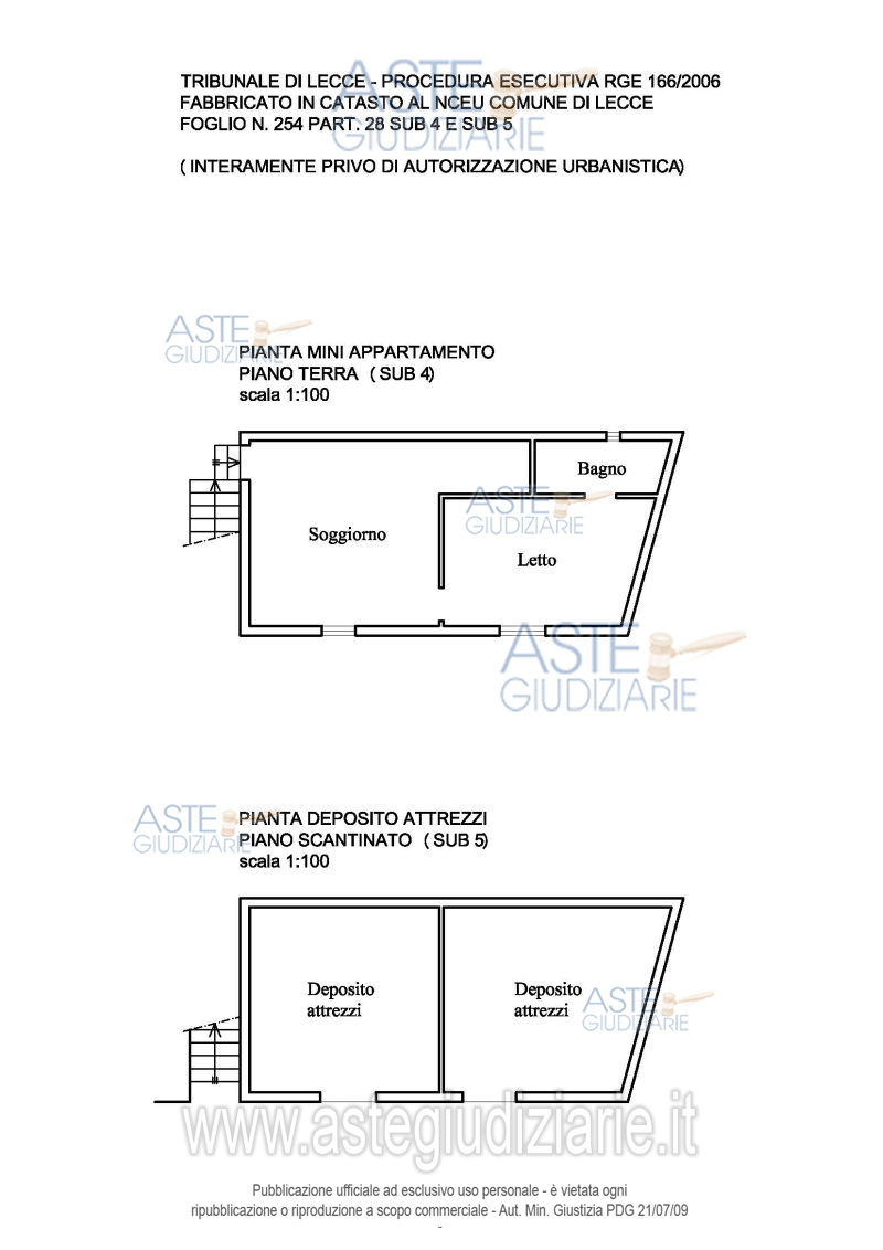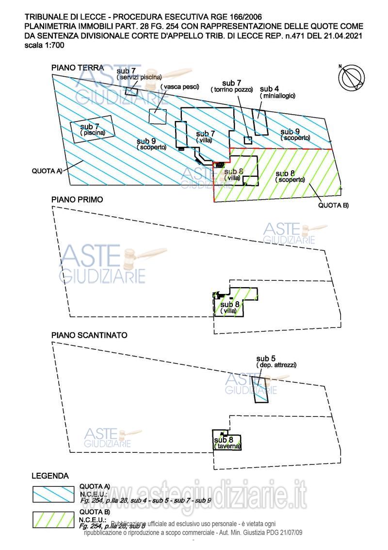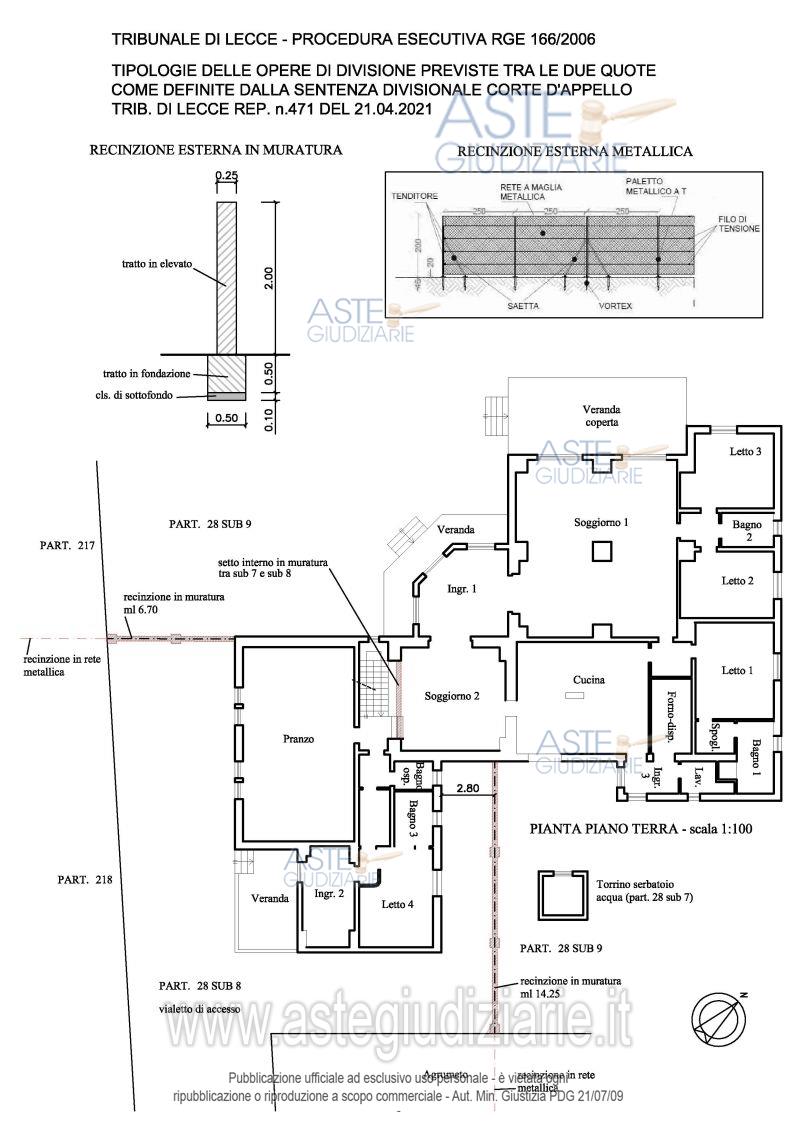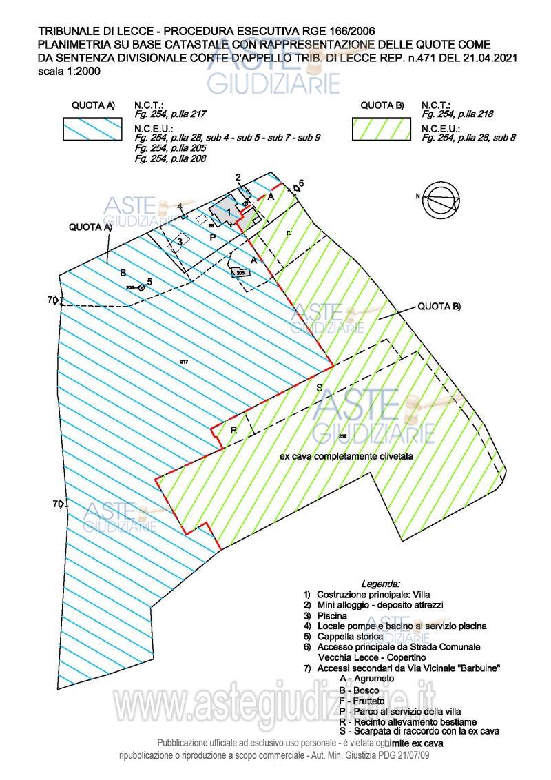 Vendita all'asta Senza incanto, con gara telematica asincrona - LOTTO UNICO: Immobili con diritto di piena proprietà per la quota di 1/1 siti in Lecce alla Via Comunale vecchia Lecce-Copertino, costituenti la quota “B” del progetto di divisione in atti. Prezzo base € 252.000,00 (offerta minima € 189.000,00). Data inizio operazioni di vendita: 28/04/2026 ore 10:00. Professionista delegato alla vendita Dott. Francesco Leone - Email "studio.francesco.leone@gmail.com"; Cell. 3358180873; Tel. 0832364614. Custode Giudiziario Dott. Francesco Leone - Email "studio.francesco.leone@gmail.com"; Cell. 3358180873; Tel. 0832364614. Rif. Tribunale di Lecce - Esecuzione immobiliare post legge 80 n. 166/2006