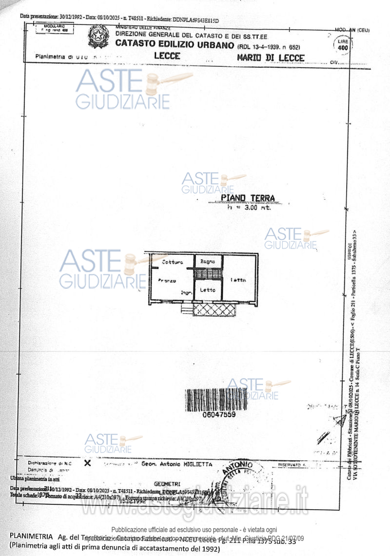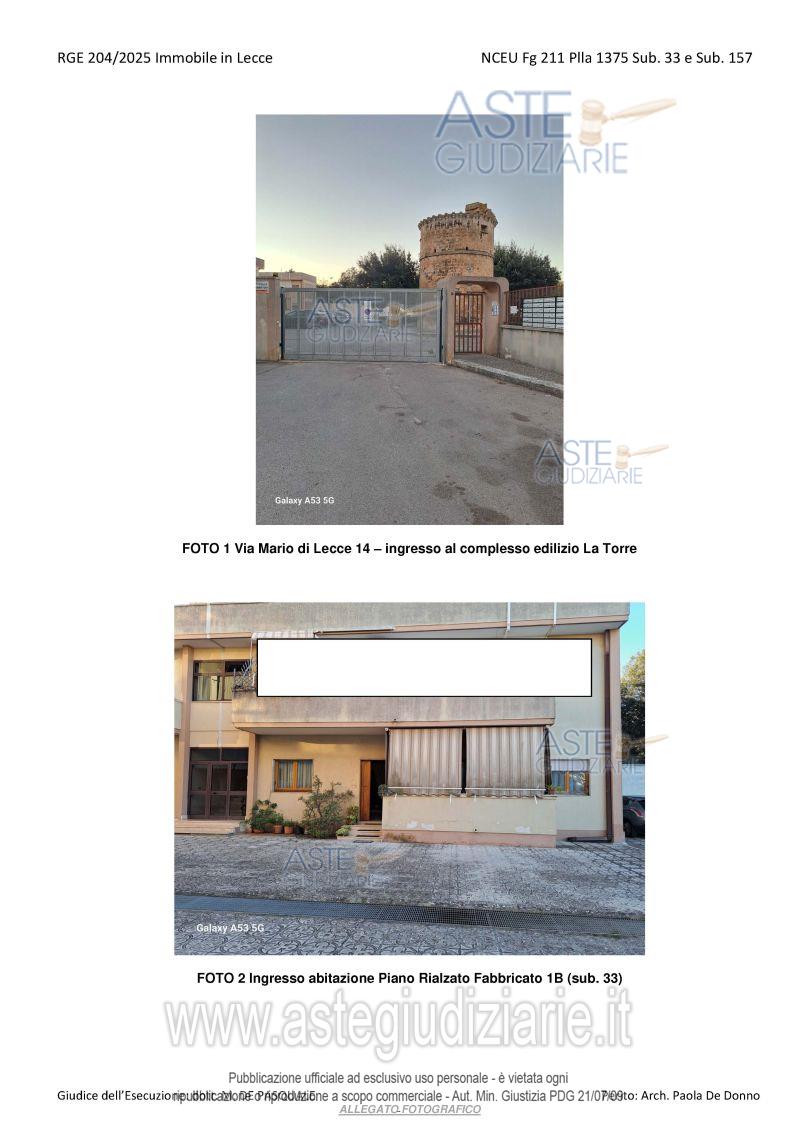 Vendita all'asta Senza incanto, con gara telematica asincrona - LOTTO UNICO: L’immobile è costituito da una abitazione civile in fabbricato condominiale (categ. Catastale A3) posta al piano rialzato e sito in Lecce alla Via Sott. Mario di Lecce n. 14. L’immobile è posto al piano terra di un fabbricato a due piani fuori terra con accesso autonomo raggiungibile dall’ingresso-cancello principale attraverso un ampio spazio condominiale pavimentato che ospita anche i posti auto scoperti, composta da un vano ingresso soggiorno, un cucinotto, due camere da letto, bagno e balcone. Prezzo base € 64.000,00 (offerta minima € 48.000,00). Data inizio operazioni di vendita: 18/05/2026 ore 11:00. Professionista delegato alla vendita Avv. Simonetta Aramini - Email "simonettaaramini@virgilio.it"; Cell. 3382821585; Tel. 0832279920. Custode Giudiziario Avv. Simonetta Aramini - Email "simonettaaramini@virgilio.it"; Cell. 3382821585; Tel. 0832279920. Rif. Tribunale di Lecce - Espropriazione immobiliare (cartabia) n. 204/2025
