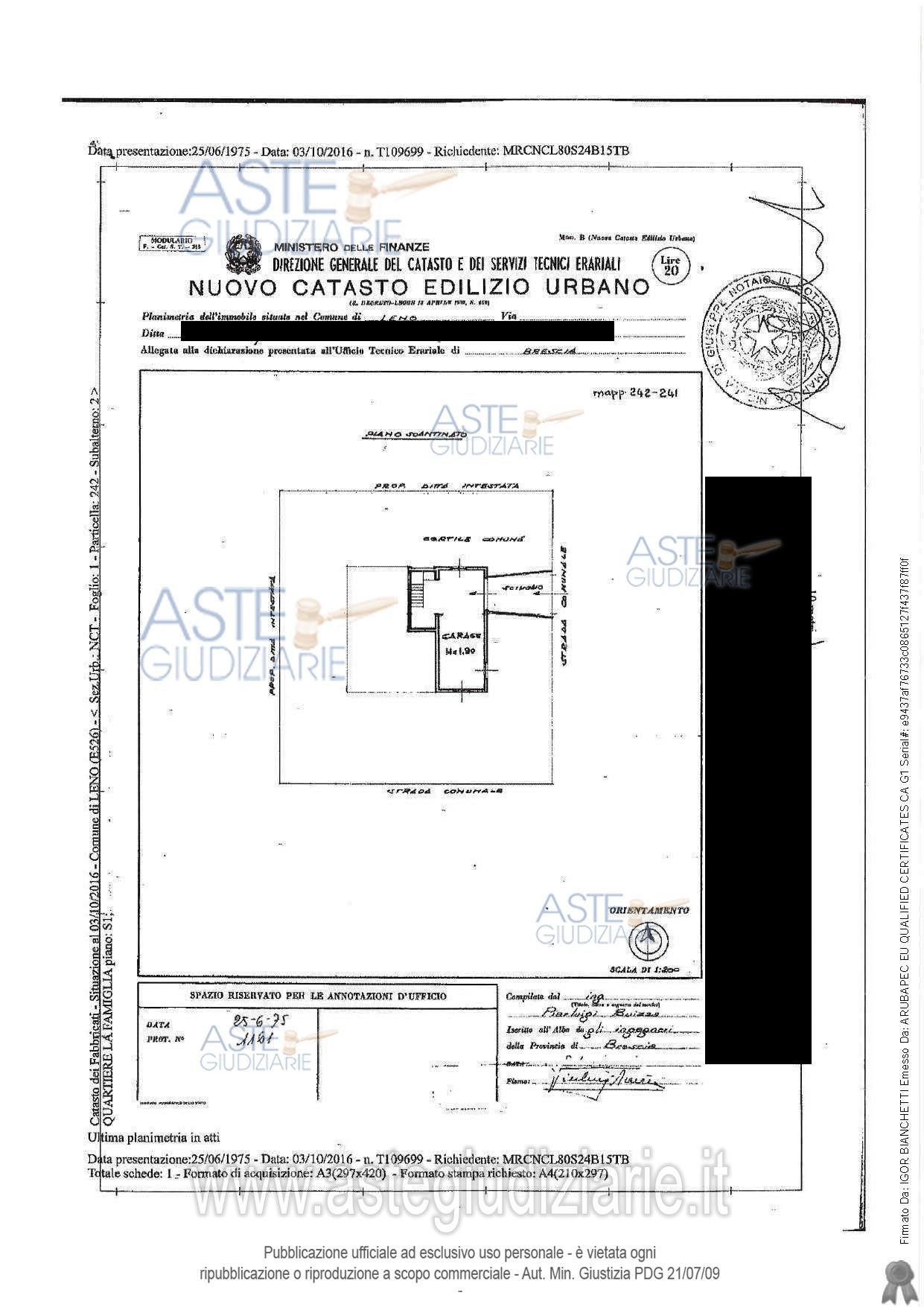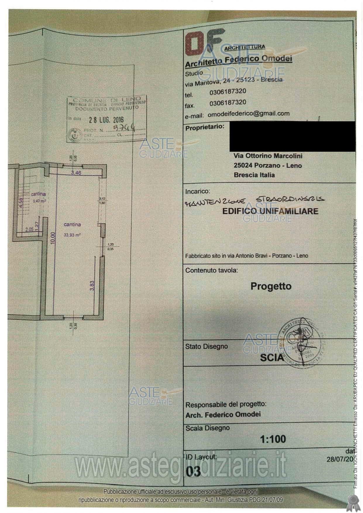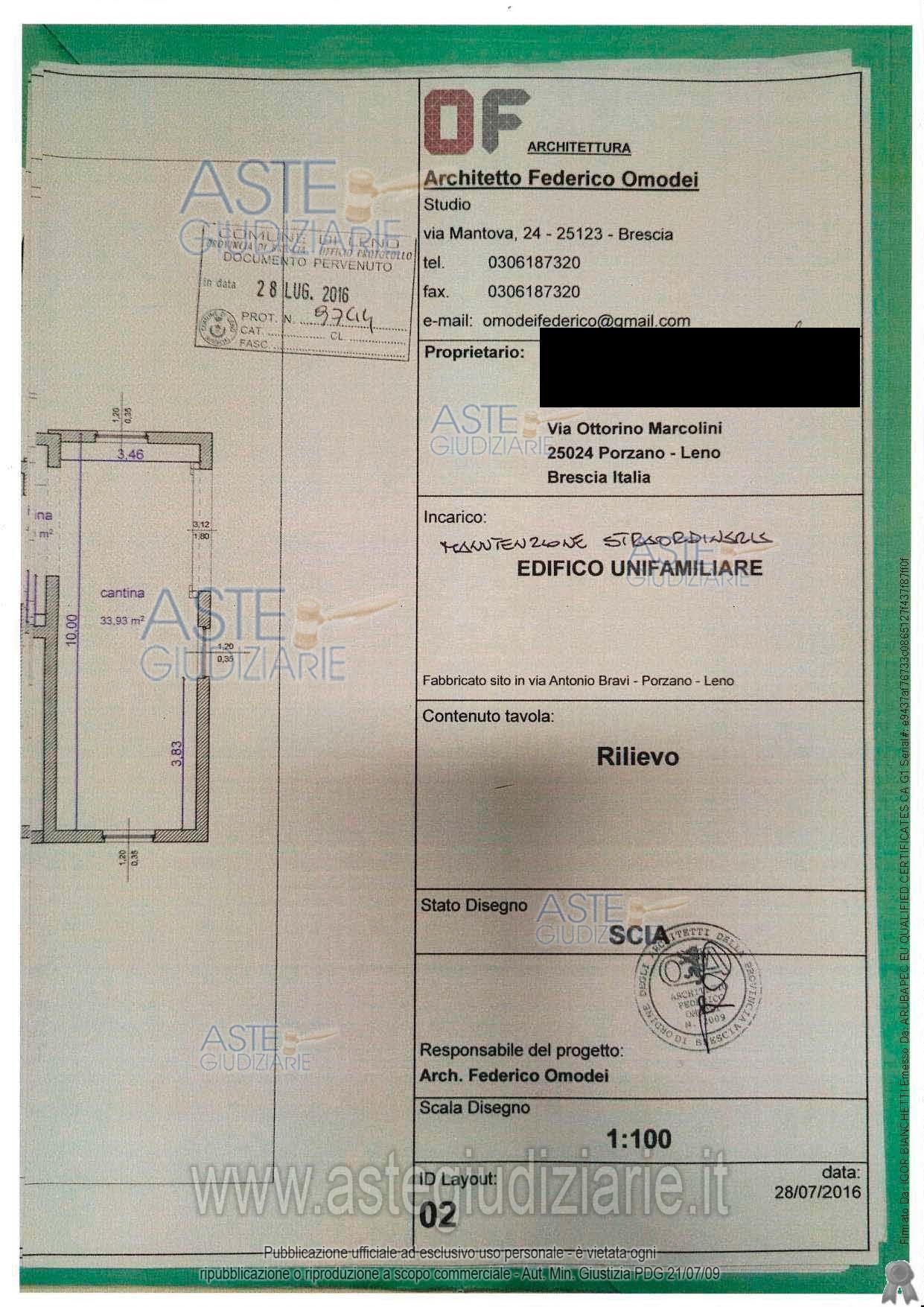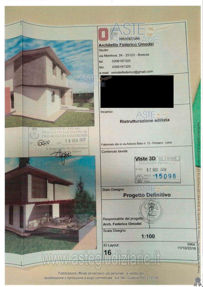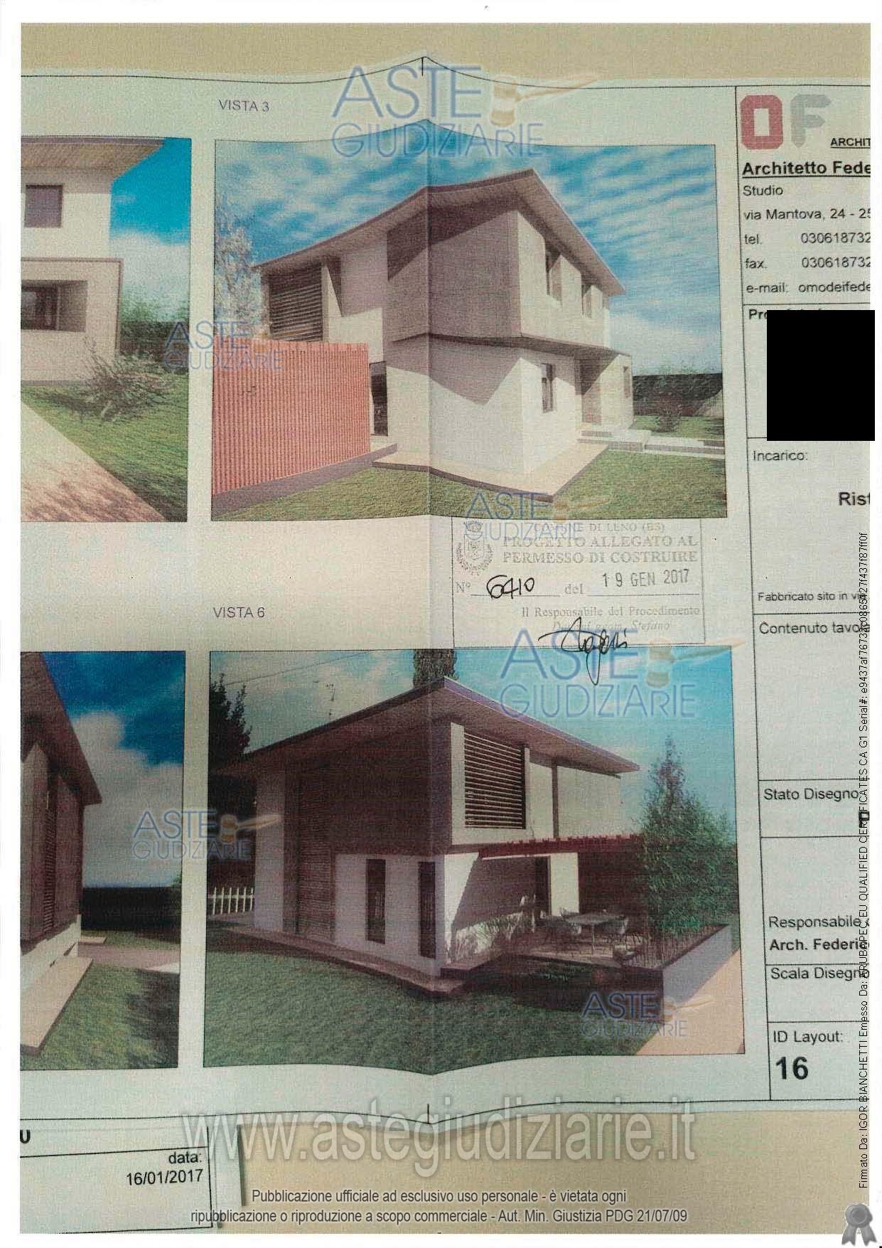 Vendita all'asta Senza incanto, con gara telematica asincrona - LOTTO UNICO: Piena proprietà. Trattasi, ex perizia, di villetta unifamiliare sviluppata al piano terra, primo ed interrato, il tutto censito al Catasto Fabbricati - Sez. NCT - Fg. 1 mapp. 242 sub 1 P. T-1, cat. A3 - cl. 3 - vani 8 - R.C.Euro 301,61 mapp. 242 sub 2 P. S1, cat. C6 - cl. 2 - mq. 39 - R.C.Euro 44,31con le proporzionali quote delle parti comuni ai sensi di legge. Prezzo base € 255.000,00 (offerta minima € 191.250,00). Data inizio operazioni di vendita: 27/01/2026 ore 12:30. Giudice Dellesecuzione Giudice. Professionista delegato alla vendita Not. Roberto Forino. Custode Giudiziario Not. Roberto Forino - Email "visiteimmobili@anpebrescia.it". Rif. Tribunale di Brescia - Espropriazione immobiliare (cartabia) n. 403/2024