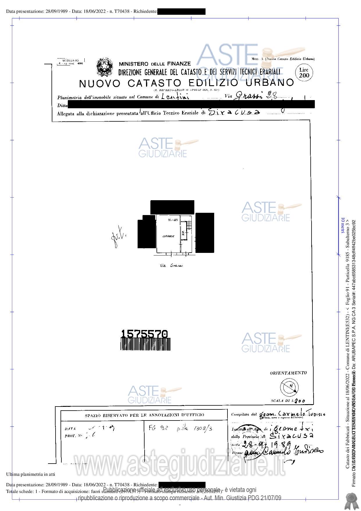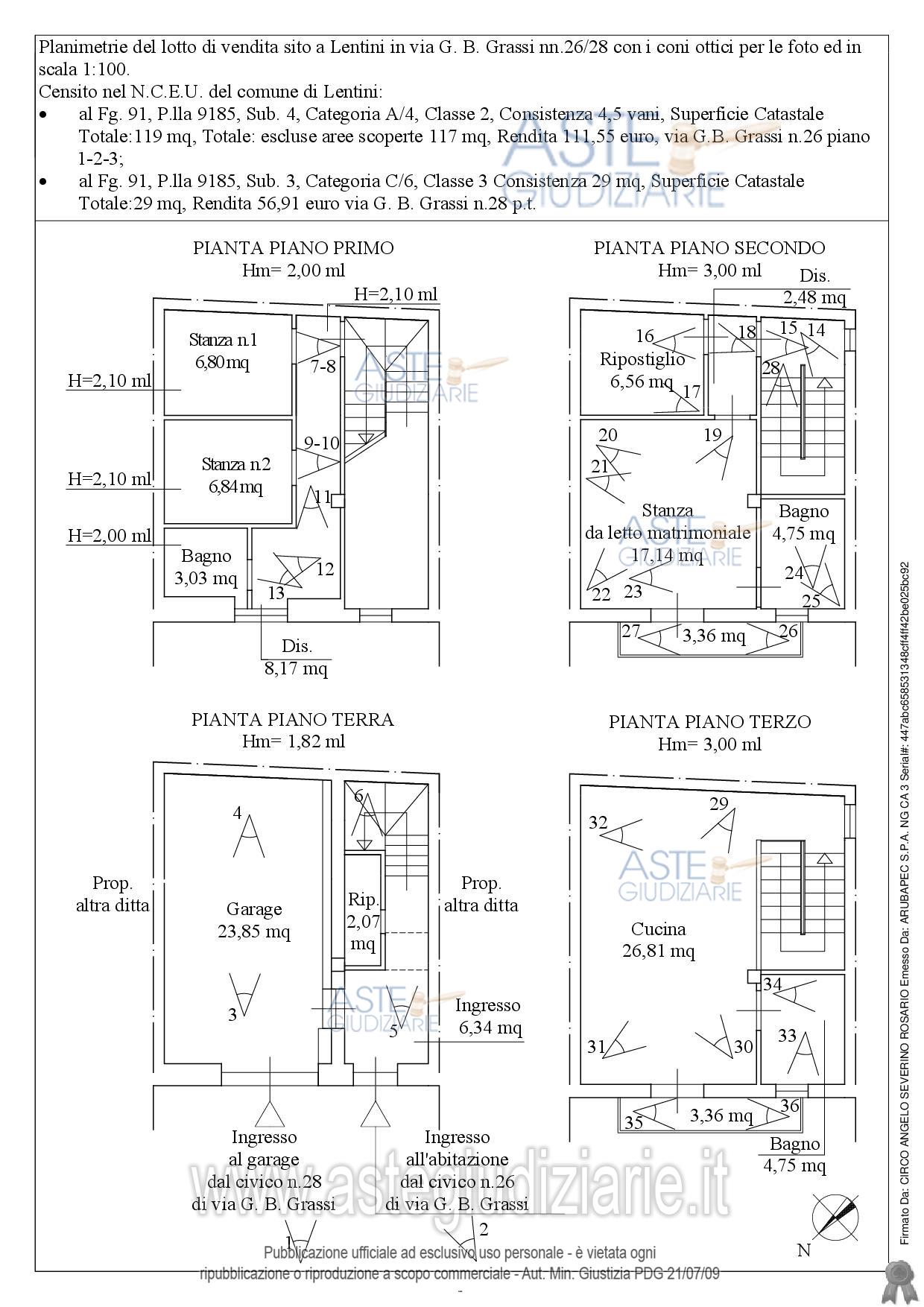 Vendita all'asta Senza incanto, con gara telematica sincrona mista - LOTTO UNICO: Appartamento in Lentini (SR), Via G.B. Grassi n. 26/28, che si sviluppa verticalmente tra i piani terra, 1° (ammezzato), 2° e 3° collegati tramite scala interna, superficie commerciale di mq. 125,00 c.ca, oltre garage di superficie commerciale mq. 32, comunicante con il piano terra dell’appartamento; al C.F al Foglio 91, Part 9185, Sub. 3, Cat. A/4, Cl 2, vani 4,5, Superf. Cat. mq. 119, r.c. € 111,55 e Sub. 4, Cat. C/6, Cl 3, cons. 29 mq., Superf. Cat. mq. 29, r.c. € 56,91. Prezzo base € 36.000,00 (offerta minima € 27.000,00). Data vendita 26/03/2026 ore 10:00. Professionista delegato alla vendita Avv. Orazio Torrisi - Email "avv.oraziotorrisi.ct@gmail.com"; Tel. 095416547. Custode Giudiziario Avv. Orazio Torrisi - Email "avv.oraziotorrisi.ct@gmail.com"; Tel. 095416547. Rif. Tribunale di Siracusa - Esecuzione immobiliare post legge 80 n. 50/2022