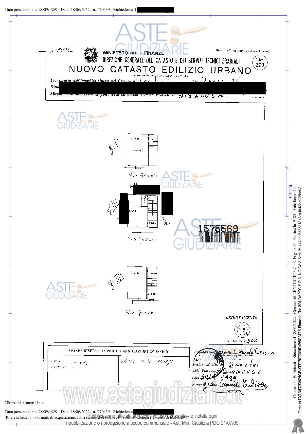Vendita all'asta Senza incanto, con gara telematica sincrona mista - LOTTO UNICO: Appartamento in Lentini (SR), Via G.B. Grassi n. 26/28, piani terra, 1° (ammezzato), 2° e 3° collegati tramite scala interna, superficie commerciale complessiva di mq. 125,00 c.ca, oltre garage superficie commerciale mq. 32, comunicante con il piano terra dell’appartamento sopra descritto; censito al C.F. al Foglio 91, Part 9185, Sub. 3, Cat. A/4, Cl 2, vani 4,5, Superf.Cat. mq. 119, r.c. € 111,55 e Sub. 4, Cat. C/6, Cl 3, consistenza 29 mq., Superf. Cat. mq. 29, r.c. € 56,91. Prezzo base € 48.000,00 (offerta minima € 36.000,00). Data vendita 06/11/2025 ore 10:00. Professionista delegato alla vendita Avv. Orazio Torrisi - Email "orazio-torrisi@virgilio.it"; Tel. 095416547. Custode Giudiziario Avv. Orazio Torrisi - Email "orazio-torrisi@virgilio.it"; Tel. 095416547. Rif. Tribunale di Siracusa - Esecuzione immobiliare post legge 80 n. 50/2022