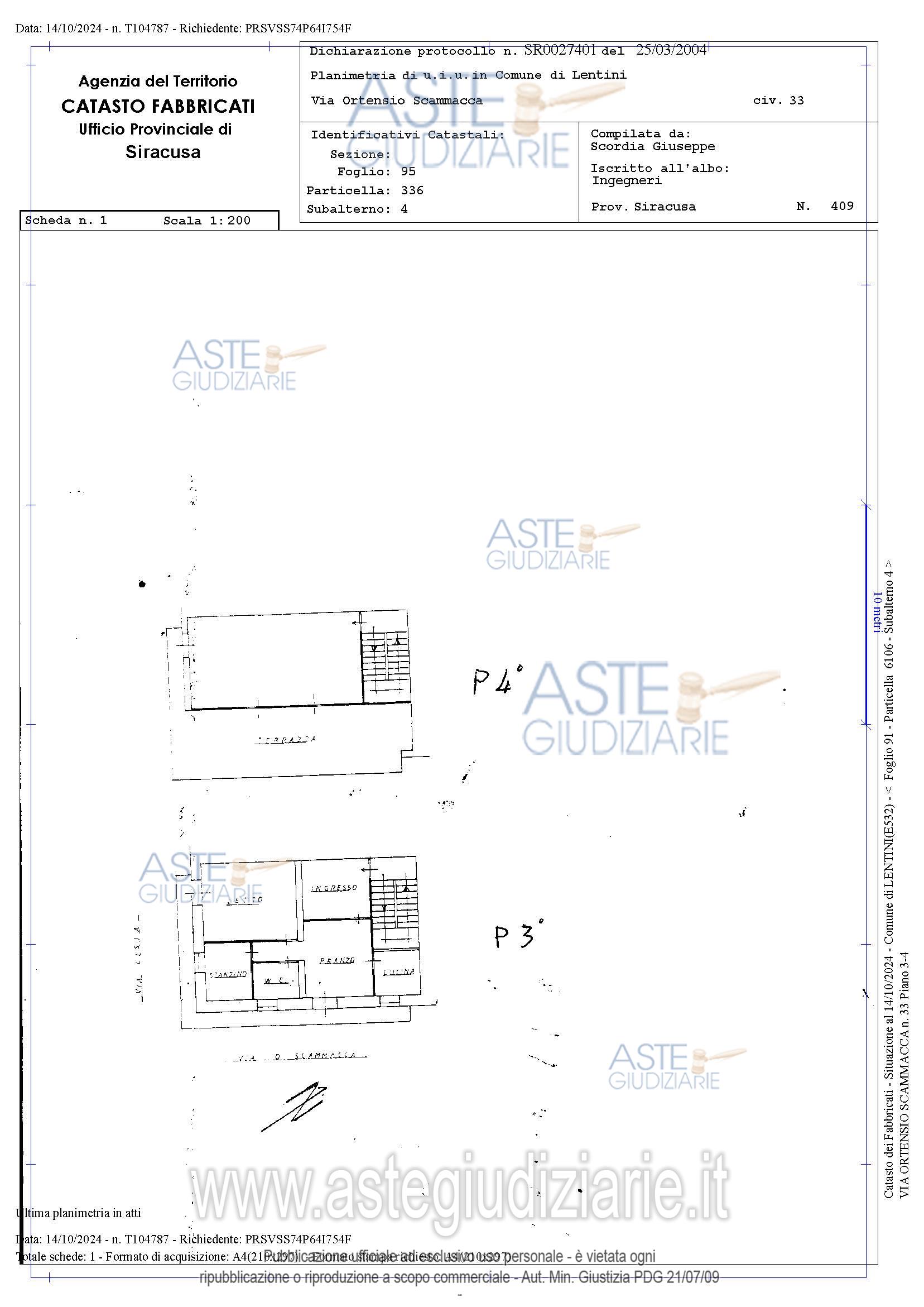 Vendita all'asta Senza incanto, con gara telematica sincrona mista - LOTTO UNICO: Appartamento per civile abitazione sito in Lentini con ingresso da via Scammacca n.33 composto da due vani e accessori al piano terzo e da un unico vano con annessa terrazza a livello al quarto piano, censito al catasto fabbricati del Comune di Lentini al foglio 91 particella 6106 sub4, ex foglio 95 particella 336 sub 4, via Ortensio Scammacca n.33, piano 3-4, categoria A/4, classe 3, vani 5, rendita catastale euro 154,94. Prezzo base € 49.376,25 (offerta minima € 37.032,18). Data vendita 29/10/2025 ore 10:00. Giudice Concita Cultrera. Professionista delegato alla vendita Avv. Carmelo Fazio - Email "c.fazio@studiolegalefazio.it"; Tel. 3285358211. Custode Giudiziario Avv. Carmelo Fazio - Email "c.fazio@studiolegalefazio.it"; Cell. 3285358211. Rif. Tribunale di Siracusa - Espropriazione immobiliare (cartabia) n. 53/2024