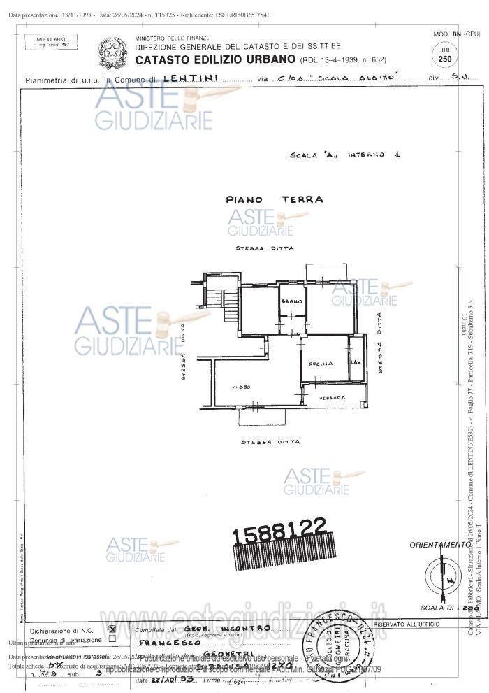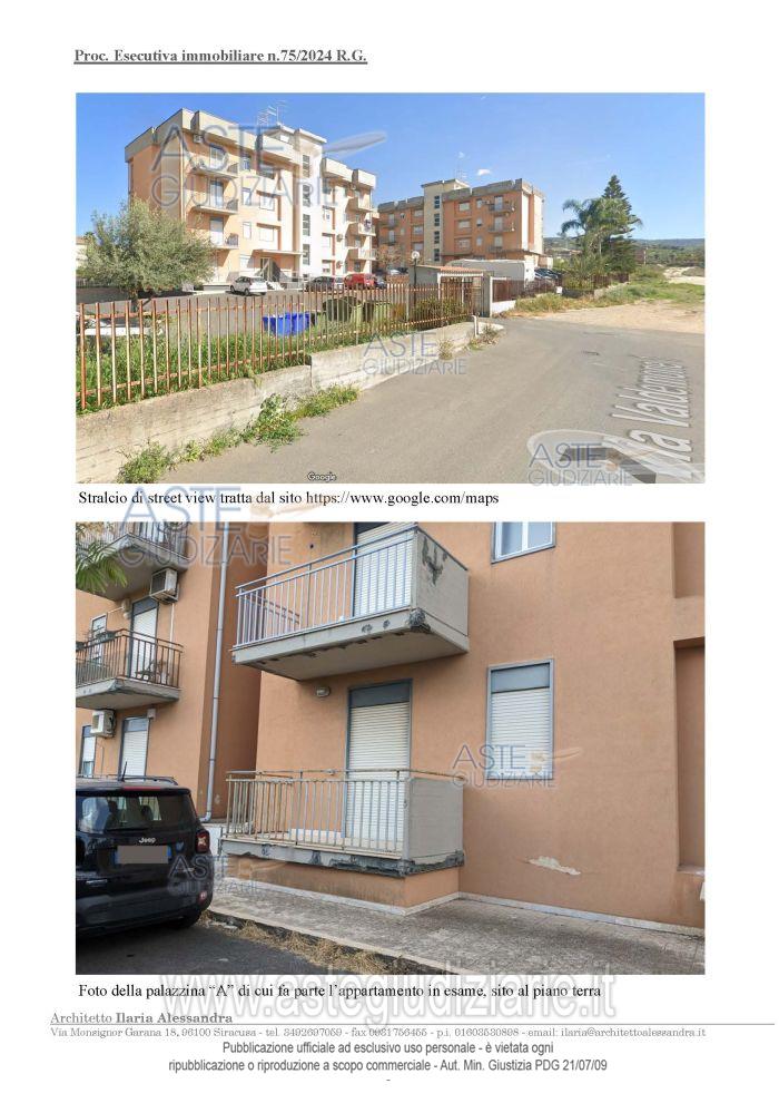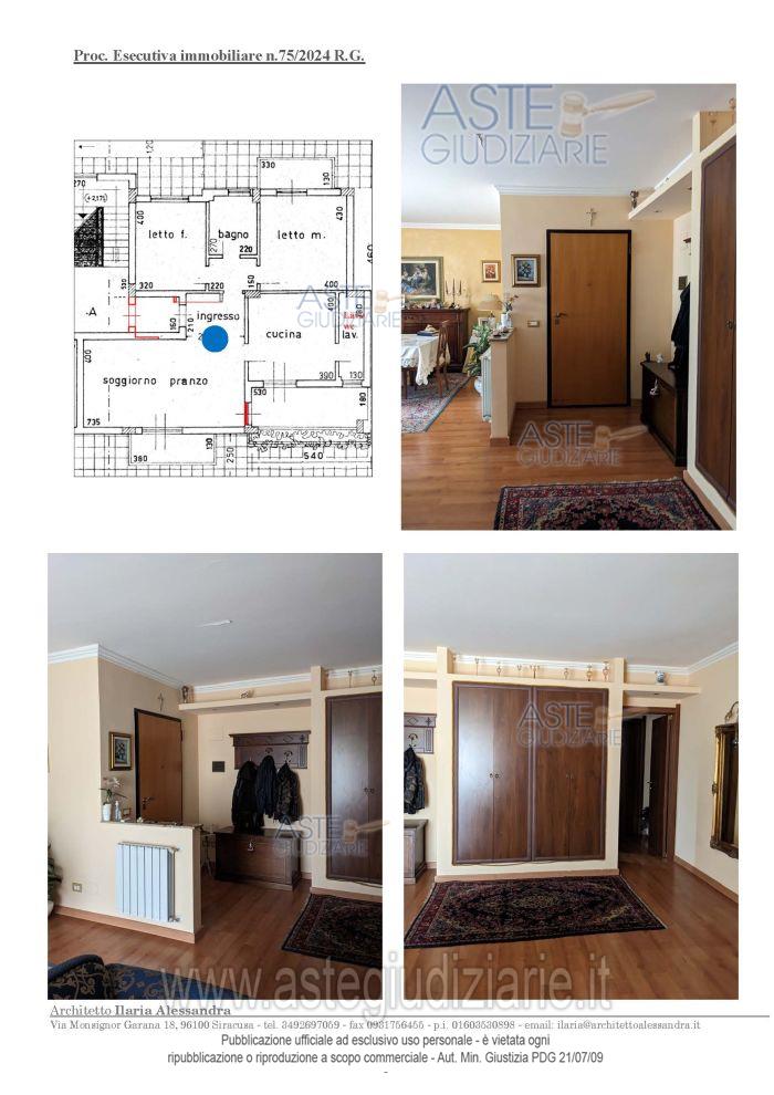 Vendita all'asta Senza incanto, con gara telematica sincrona mista - LOTTO UNICO: diritto di proprietà superficiaria di appartamento a piano terra e del garage al piano seminterrato. Prezzo base € 59.006,25 (offerta minima € 44.254,69). Data vendita 22/04/2026 ore 09:00. Giudice Giuseppe Solarino. Professionista delegato alla vendita Avv. Maria Genovese - Email "avv.mgenovese@gmail.com"; Cell. 3332084822. Custode Giudiziario Avv. Maria Genovese - Email "avv.mgenovese@gmail.com"; Cell. 3332084822. Rif. Tribunale di Siracusa - Espropriazione immobiliare (cartabia) n. 75/2024