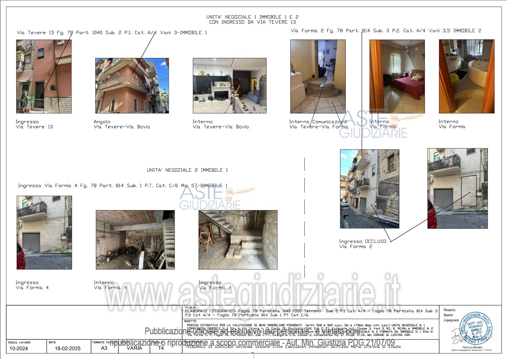 Vendita all'asta Senza incanto, con gara telematica sincrona mista - LOTTO UNICO: Casa per civile abitazione sita nel Comune di Lentini (Sr) con ingresso da Via Tevere n. 13 e da Via Formia 2, costituita da due appartamenti contigui destinati a costituire un’unica unità abitativa, composta da due vani e servizi al primo piano e da due vani, cucina e servizi al piano secondo, censita al NCEU del Comune di Lentini al Fg. 78 particella 1040 sub 2, P.1., ctg. a/4, classe 3, vani 3, R.C. Euro 92,96 ed al Fg. 78 particella 814 sub 3, P.2., ctg. A/4, classe 2, vani 3,5, R.C. €. Euro 86,76 . Prezzo base € 63.600,00 (offerta minima € 47.700,00). Data vendita 22/04/2026 ore 12:00. Giudice Maria Cristina Di Stazio. Professionista delegato alla vendita Avv. Sergio Spinoso - Email "info@studiolegalespinoso.it"; Cell. 3715716444; Tel. 0931754382. Custode Giudiziario Avv. Sergio Spinoso - Email "info@studiolegalespinoso.it"; Cell. 3715716444; Tel. 0931754382. Rif. Tribunale di Siracusa - Espropriazione immobiliare (cartabia) n. 113/2024