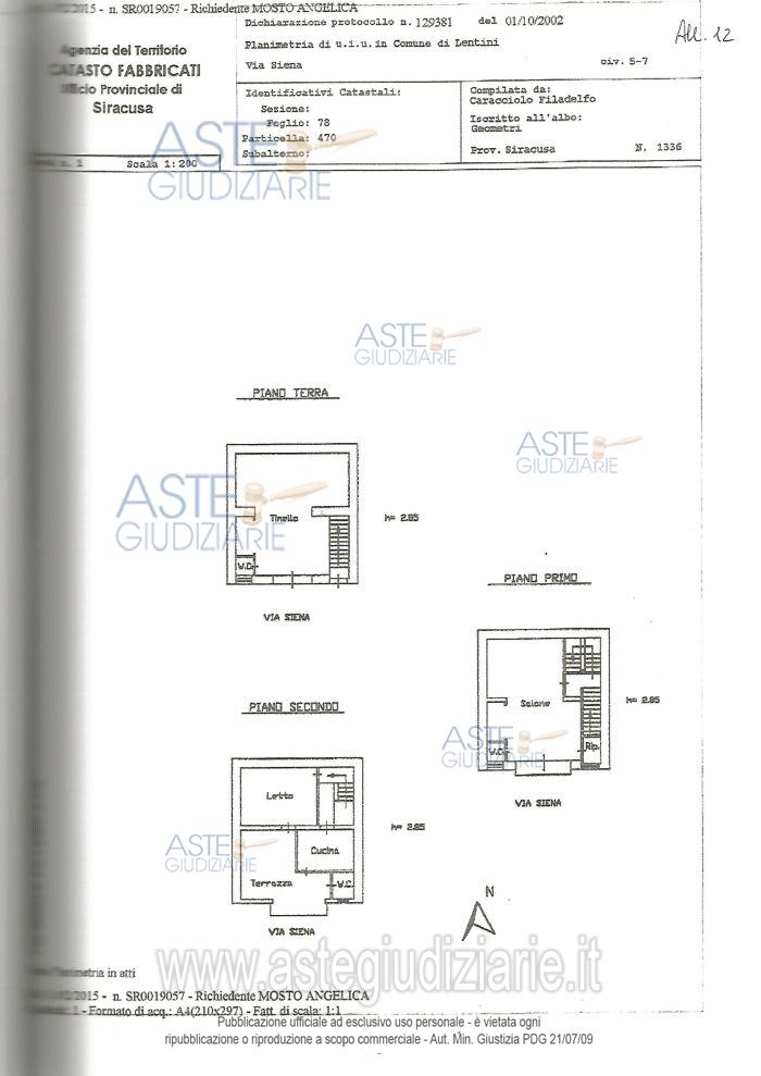 Vendita all'asta Senza incanto - LOTTO UNICO: Piena proprietà dell'unità immobiliare su più livelli, sita nel Comune di Lentini (SR), con ingresso da via Siena n. 5. L'immobile risulta così distribuito: al piano terra: un'autorimessa, un soggiorno, una cucina e un bagno; al piano primo: una camera da letto con bagno, una piccola stanza cieca e un disimpegno centrale; al secondo piano: due stanze cieche divise da una parete di cartongesso, un disimpegno centrale e un bagno con anti-bagno; sulla terrazza di copertura: un vano cucina lavanderia. Prezzo base € 22.725,87 (offerta minima € 17.044,40). Data vendita 30/12/2025 ore 11:00. Professionista delegato alla vendita Avv. Stefano Nobile - Email "nobilestefano@gmail.com"; Cell. 3319394242; Tel. 095416547. Custode Giudiziario Avv. Stefano Nobile - Email "nobilestefano@gmail.com"; Cell. 3319394242; Tel. 095416547. Rif. Tribunale di Siracusa - Esecuzione immobiliare post legge 80 n. 271/2014