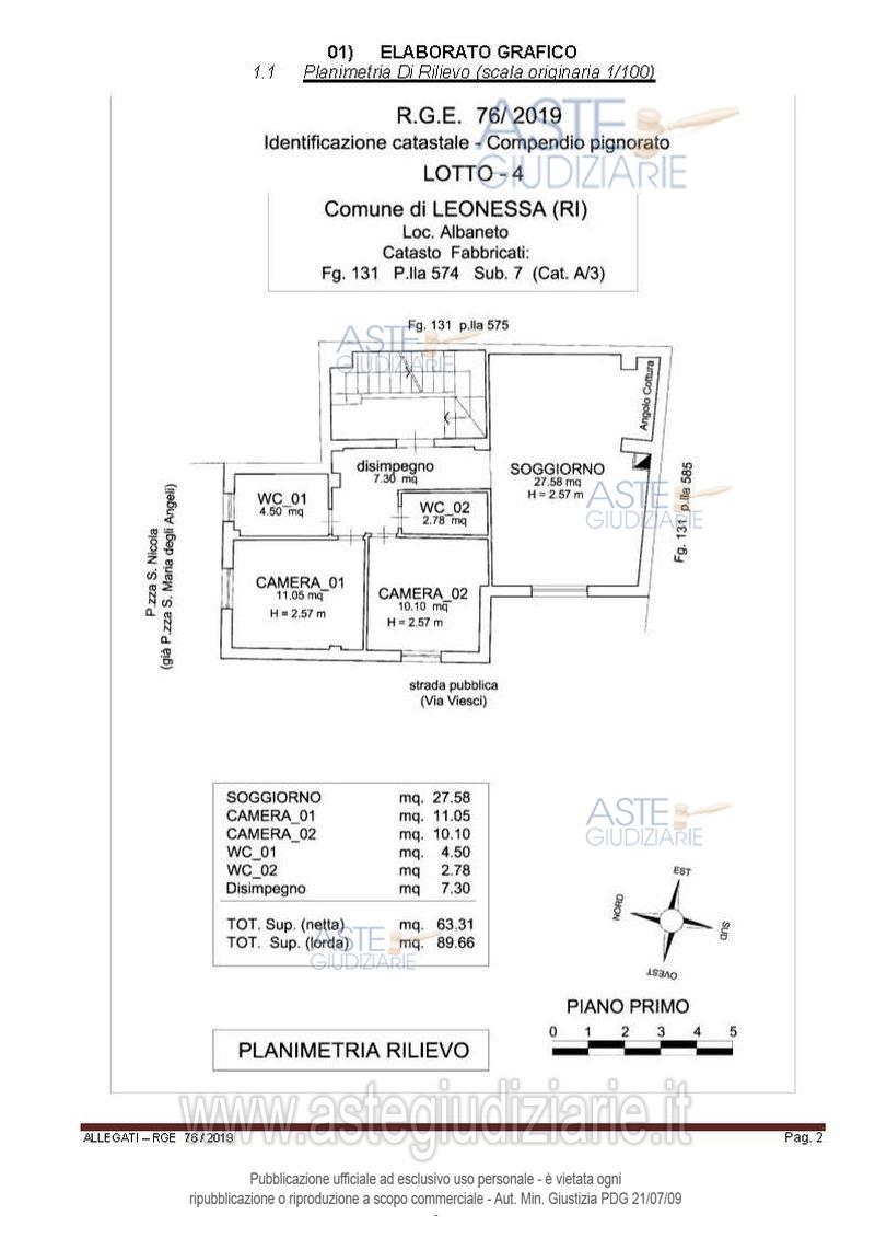 Vendita all'asta Senza incanto, con gara telematica asincrona - LOTTO 4: Appartamento al piano primo composto da soggiorno con angolo cottura, camino e stufa a pellet, n. 2 bagni, disimpegno e n. 2 camere da letto, per una superficie utile netta calpestabile complessiva di mq. 63.31, corrispondente ad una superficie lorda di mq 89.66. Prezzo base € 38.000,00 (offerta minima € 28.500,00). Data inizio operazioni di vendita: 27/04/2026 ore 10:00. Giudice Marilina Guglielmi. Professionista delegato alla vendita Avv. Francesca Blasi - Email "francesca@avvocatoblasi.it"; Tel. 0746204591. Custode Giudiziario Avv. Francesca Blasi - Email "francesca@avvocatoblasi.it"; Tel. 0746204591. Rif. Tribunale di Rieti - Esecuzione immobiliare post legge 80 n. 76/2019