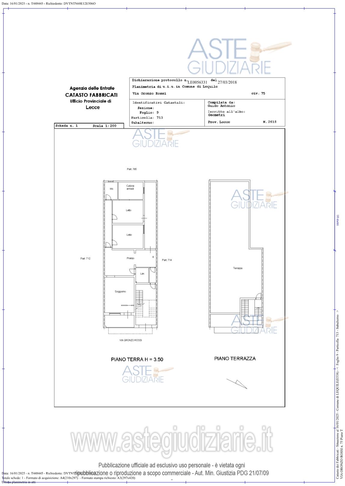 Vendita in attesa dell'emissione del nuovo bando d'asta. LOTTO UNICO: piena proprietà per la quota di 1/1 della civile abitazione al piano terra sita in Lequile (Le) alla Via Oronzo Rossi n°75/77. Ultimo prezzo base € 62.000,00 (offerta minima € 46.500,00). Professionista delegato alla vendita Avv. Gaetano Stefano Viva - Email "avvocatostefanoviva@gmail.com"; Cell. 360832771. Custode Giudiziario Avv. Gaetano Stefano Viva - Email "avvocatostefanoviva@gmail.com"; Cell. 360832771. Rif. Tribunale di Lecce - Espropriazione immobiliare (cartabia) n. 302/2024