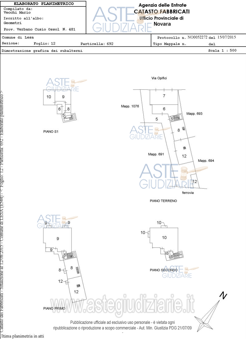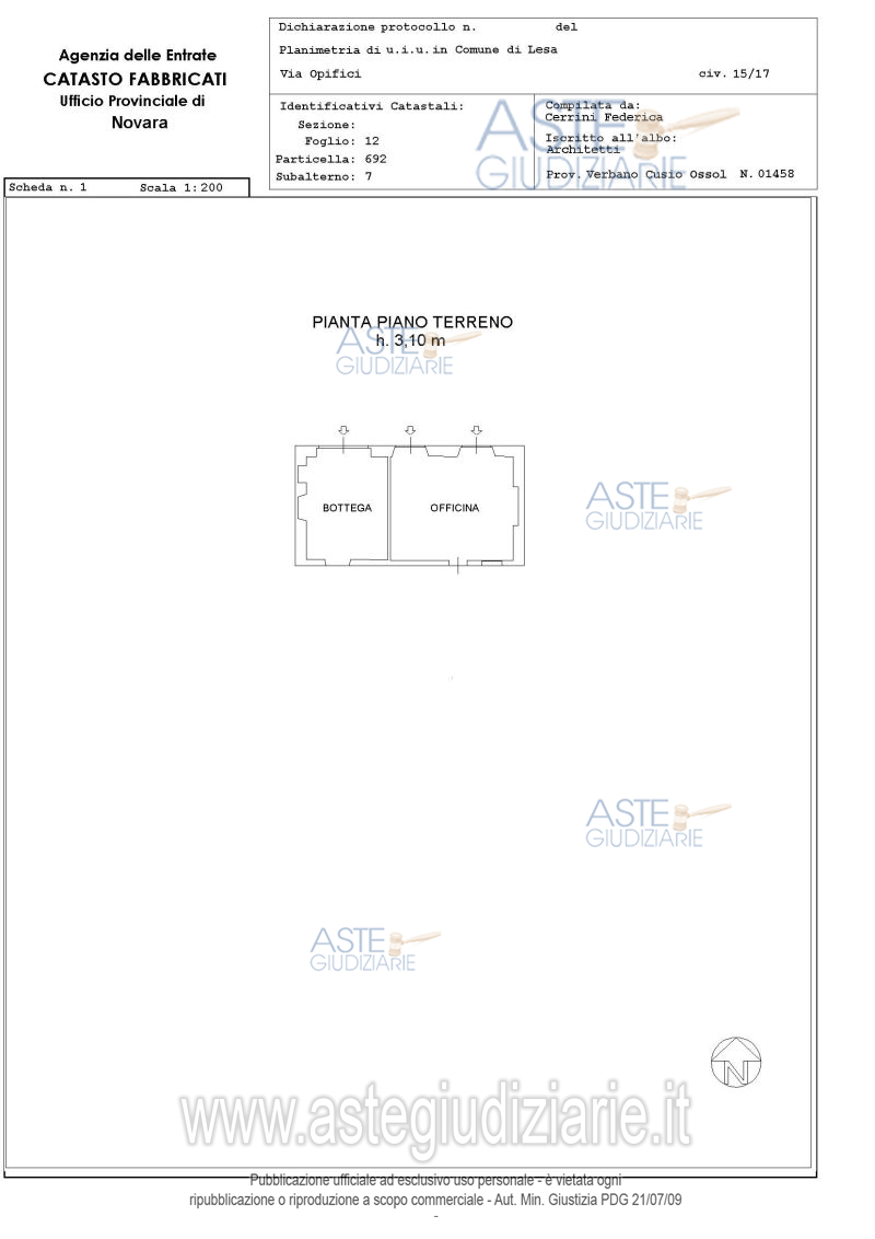 Vendita all'asta Senza incanto, con gara telematica asincrona - LOTTO 1: Diritto di piena proprietà su: Bene N.1 - Officina ubicata a Lesa (NO) - via Opifici n.15/17; Bene N. 2 - Appartamento ubicato a Lesa (NO) - via Opifici n.19. Prezzo base € 20.800,00 (offerta minima € 15.600,00). Data inizio operazioni di vendita: 23/06/2026 ore 10:00. Giudice: Dott. Antonietta Sacco.