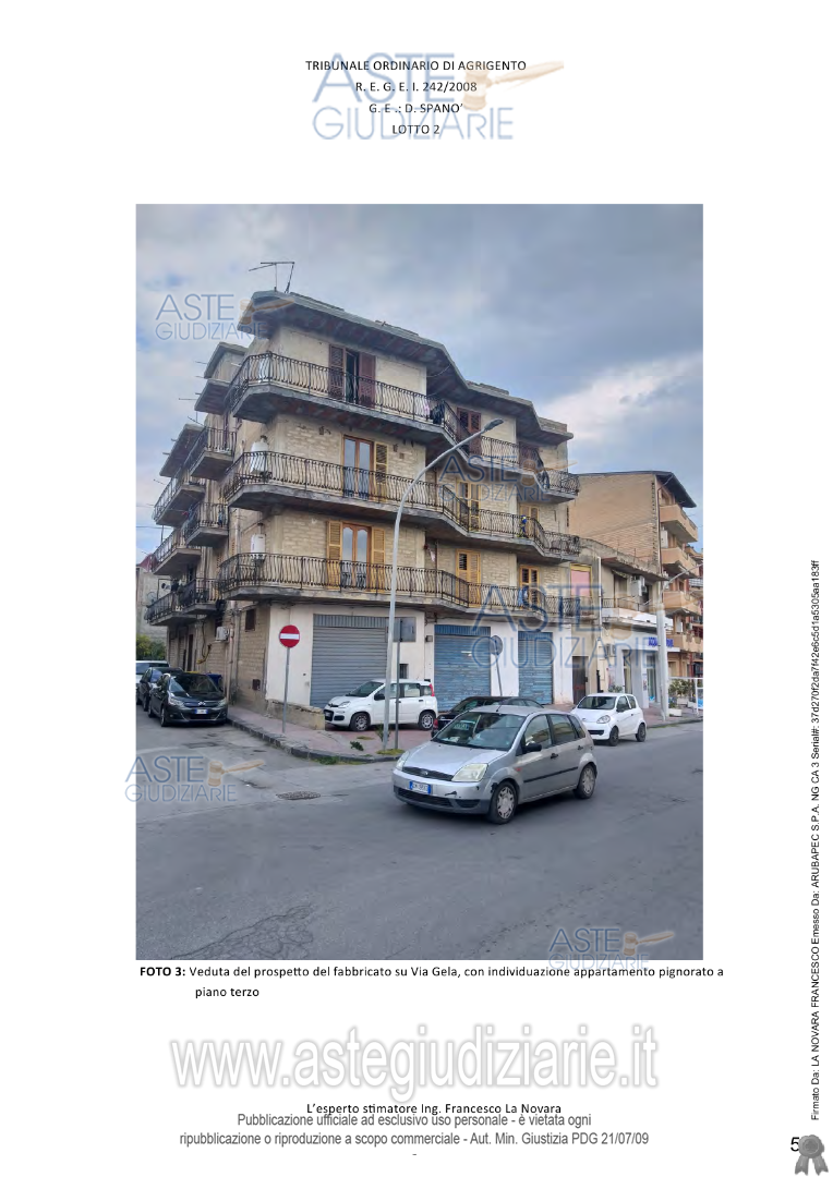 Vendita all'asta Senza incanto, con gara telematica sincrona mista - LOTTO 2: Piena proprietà per la quota di 1000/1000 di Appartamento sito nel comune di LICATA (AG), in via Sturzo n.2 al terzo piano, censito nel N.C.E.U. al: foglio 108, particella 717 sub. 9, categoria A/2, classe 4, vani 7, rendita catastale €650,74. Prezzo base € 19.365,75 (offerta minima € 14.524,31). Data vendita 14/11/2025 ore 11:00. Giudice Domenica Spano'. Professionista delegato alla vendita Avv. Chetty Nero - Email "chetty.nero@virgilio.it"; Cell. 3297186239. Custode Giudiziario Avv. Chetty Nero - Email "chetty.nero@virgilio.it"; Cell. 3297186239. Rif. Tribunale di Agrigento - Esecuzione immobiliare post legge 80 n. 242/2008